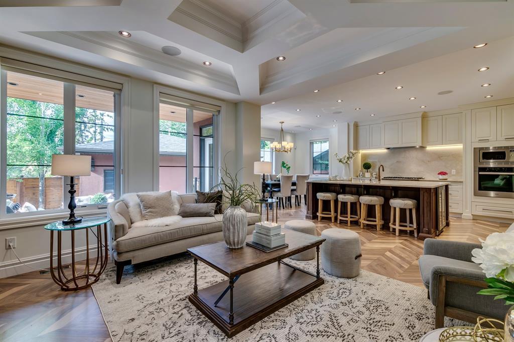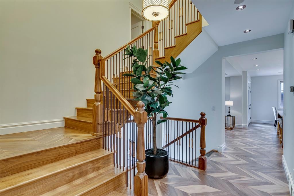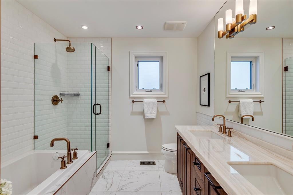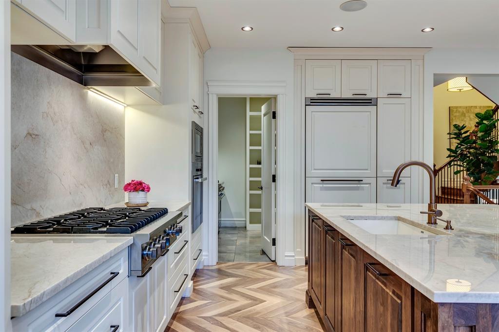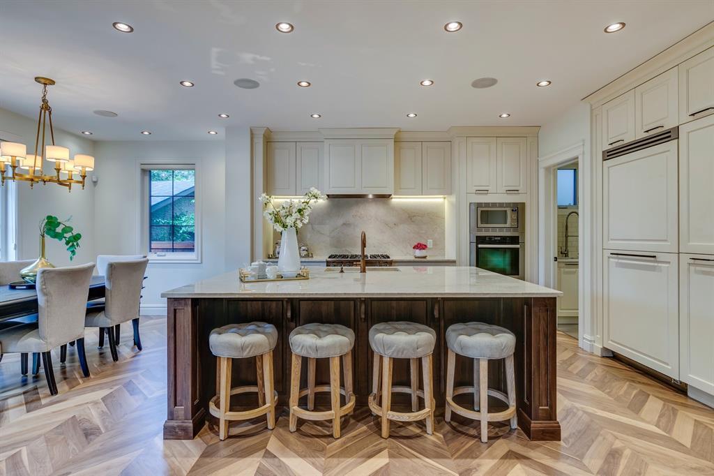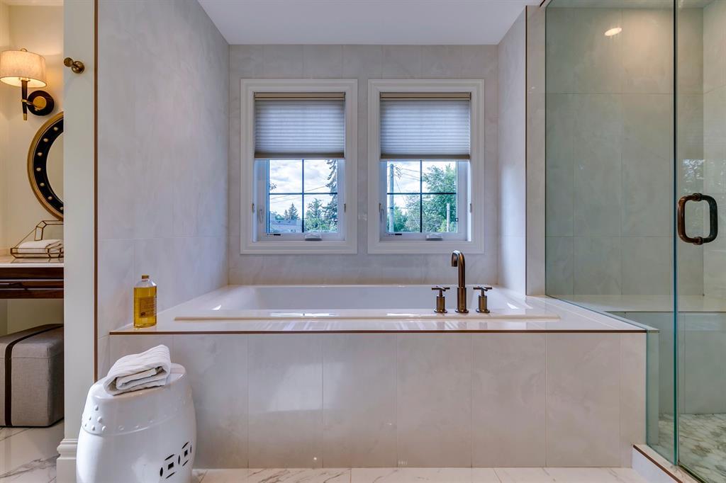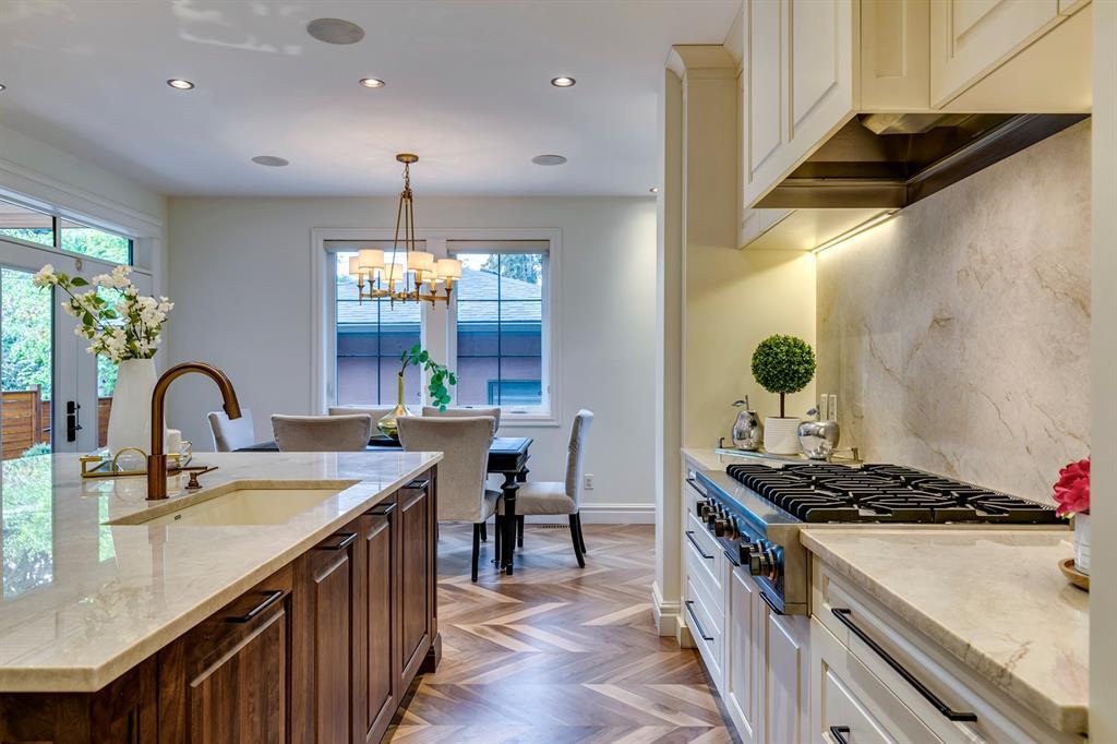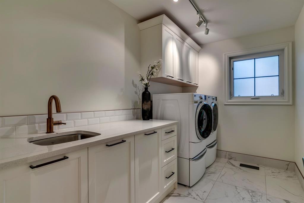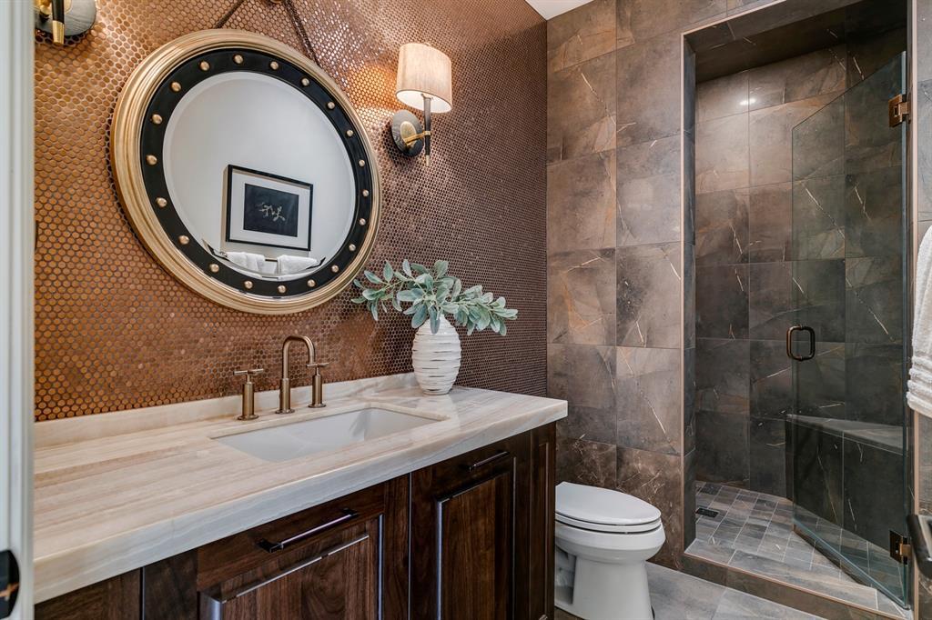INCREDIBLE VALUE! Welcome to this beautiful custom-built home in historic Upper Mount Royal developed with a keen eye for quality finishings, aesthetics, and functionality to create a modern and luxurious living space. Key elements include a classic brick, stone and stucco Arts and Crafts exterior, architectural ceiling details, stunning walnut hardwood flooring and cabinetry, Sonos sound system throughout, air conditioning, built-in vacuum, designer light fixtures, convenient mudroom with lockers, a heated double detached garage and so much more! This home is perched on the well-known and lovely tree-lined Joliet Avenue. Built in 2014, a solid wood door in a covered entryway welcomes you to a spacious foyer. Double doors lead to an impressive home office which is also set up to be a main floor bedroom with a full bathroom across the way. Intricate chevron Walnut flooring leads the way to the cozy living room with an oversized gas fireplace flanked with built-in walnut shelving, large windows and custom coiffured ceilings. The elegant kitchen features classic light cabinets with a grand center island built in Walnut and topped with gorgeous stone counters. Panelled appliances and plenty of cabinets complete the main kitchen not to mention a chef’s delight – the separate butlers pantry with an additional gas range, pantry storage and freezer. The south facing dining space can accommodate a table for 10 – perfect for entertaining and for large gatherings. The impressive walnut staircase leads the way to the upper level boasting 3 bedrooms all with walk-in closets and a notable walk-in closet on the way up to the 2nd floor. Your primary bedroom is the epitome of relaxation providing a peaceful and tranquil space including a private balcony, a gorgeous 5 pc ensuite, a custom-built walk-in closet with the finishing touch of a skylight, coiffured ceilings and millwork details. The bright & functional laundry room has a sink, storage and plenty of counter space. The lower level features a, massive recreation room with space to close in a bedroom and/or a private media room, a built-in wet bar with double drawer dishwasher and second beverage fridge, a flex room that can be used as a home gym/hobby room/home office/play room or more, an finally a large full bathroom. Enjoy the fenced, low maintenance backyard designed to be a private retreat for entertaining with a partially covered two-tiered deck, gas hook up, step lighting, stamped concrete pathway, mature trees and a 2-car detached garage with a separate furnace. This centrally located home is just minutes to the Glencoe Club, downtown, tennis courts, outdoor pool & rink, walking/bike paths, playgrounds, some of Calgary’s best restaurants and shopping, great schools and only a short drive to your favorite choice of Golf Course! Welcome Home to 1405 Joliet Avenue SW! (id:22211)