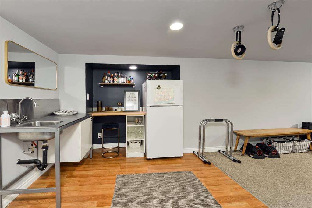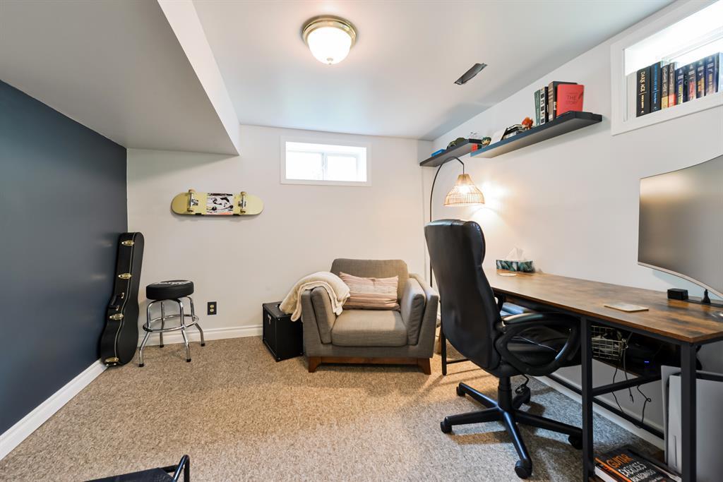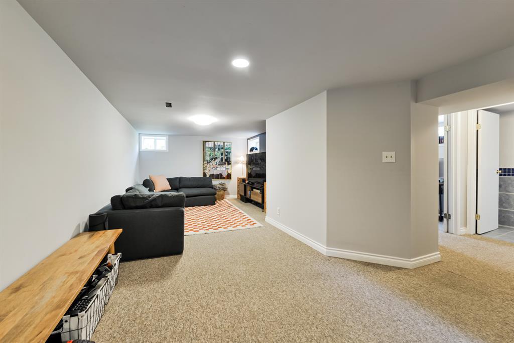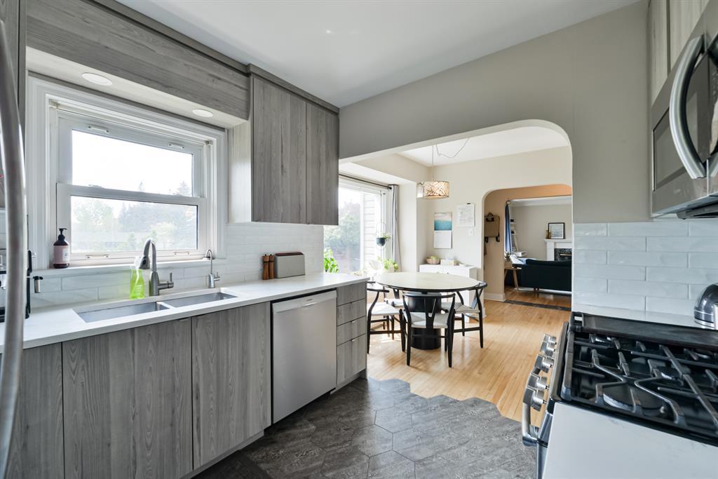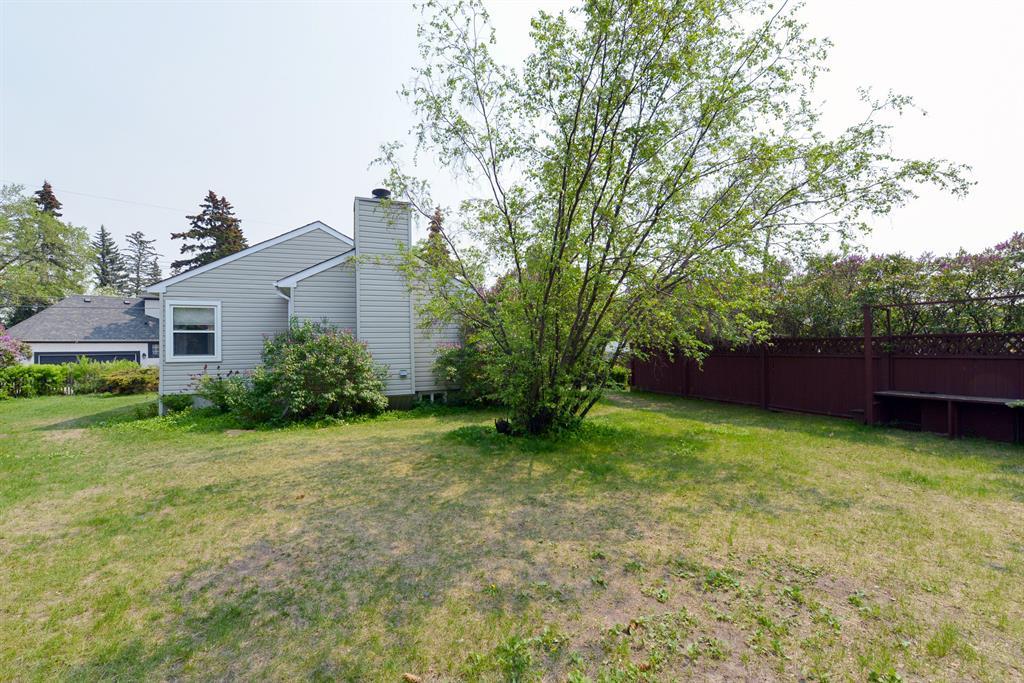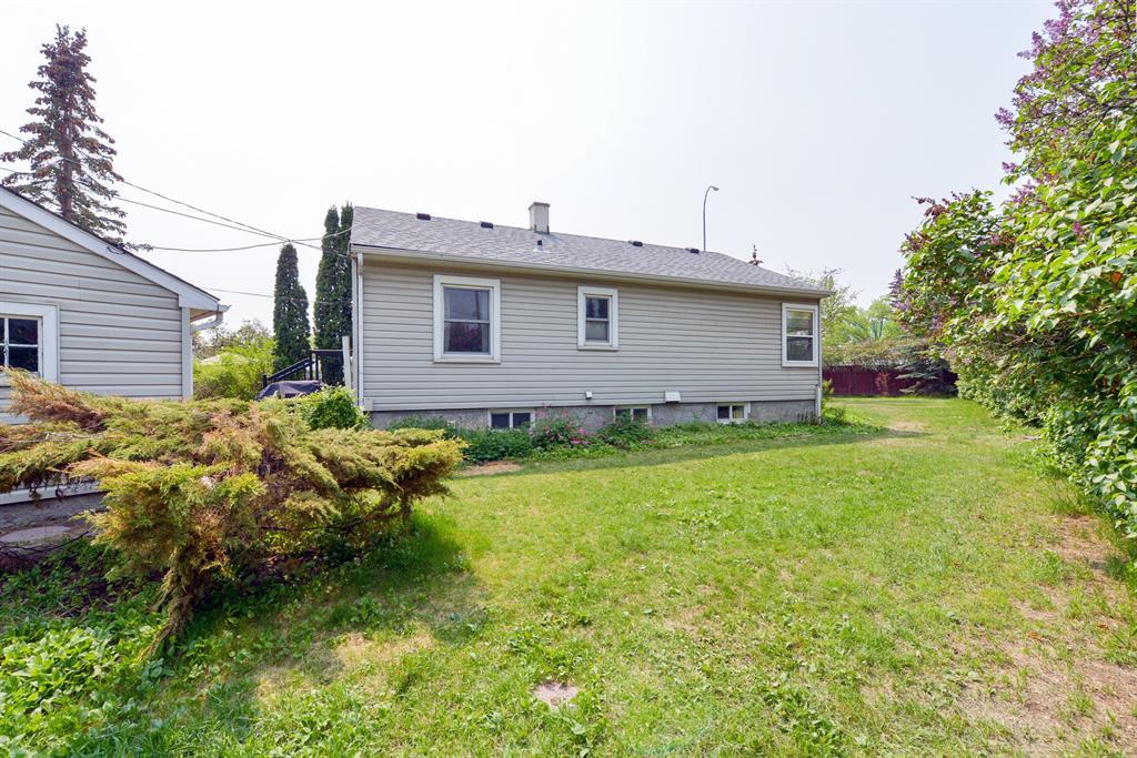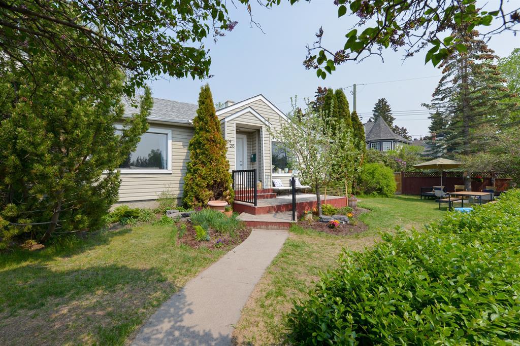 Located on a huge private treed corner lot in Upper Mount Royal, this very renovated well-maintained bungalow with huge windows is flooded with natural sunlight throughout the day. Renovations include fully renovated kitchen in 2018 including all new stainless-steel appliances, upstairs bathroom renovated with new flooring, vanity, and toilet, custom built in closets at entry and in the primary bedroom, original hardwood repaired sanded and stained, and interior repainted. Additional upgrades include new roof in 2017, new hot water tank in 2021, and new energy efficient windows in primary bedroom in 2021. The sun filled South facing family room with feature wood burning fireplace (with log lighter) greets you upon entry. The renovated kitchen with stainless steel appliances overlooks the huge yard. The primary bedroom has ample built in closets. Another good-sized bedroom and a beautifully renovated bathroom completes the main level. The lower level features a wet bar, large rec room, third bedroom, three piece bathroom, laundry room and good sized storage area. With numerous parks nearby, a quick commute to downtown and in bounds for highly acclaimed Earl Grey School, and Western Canada High School, this fabulous move in ready home located on a beautiful tree lined street in the highly desirable neighbourhood of Mount Royal is excellent value. (id:22211)