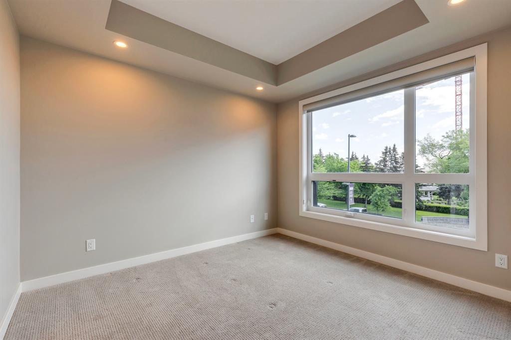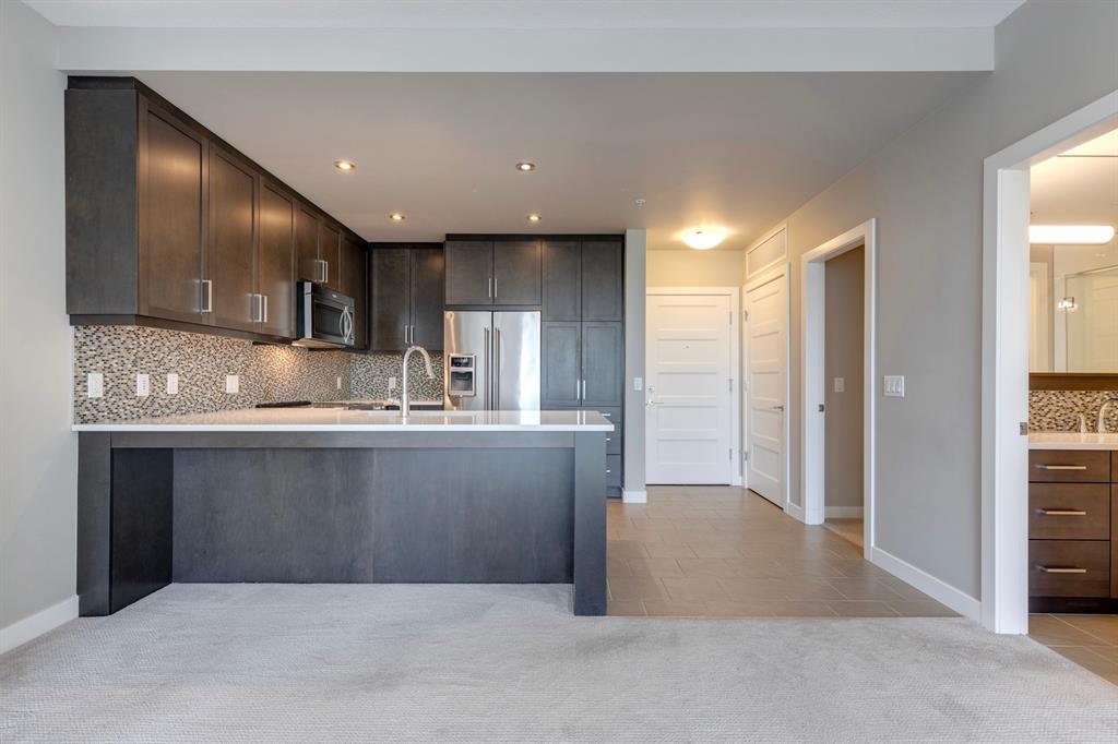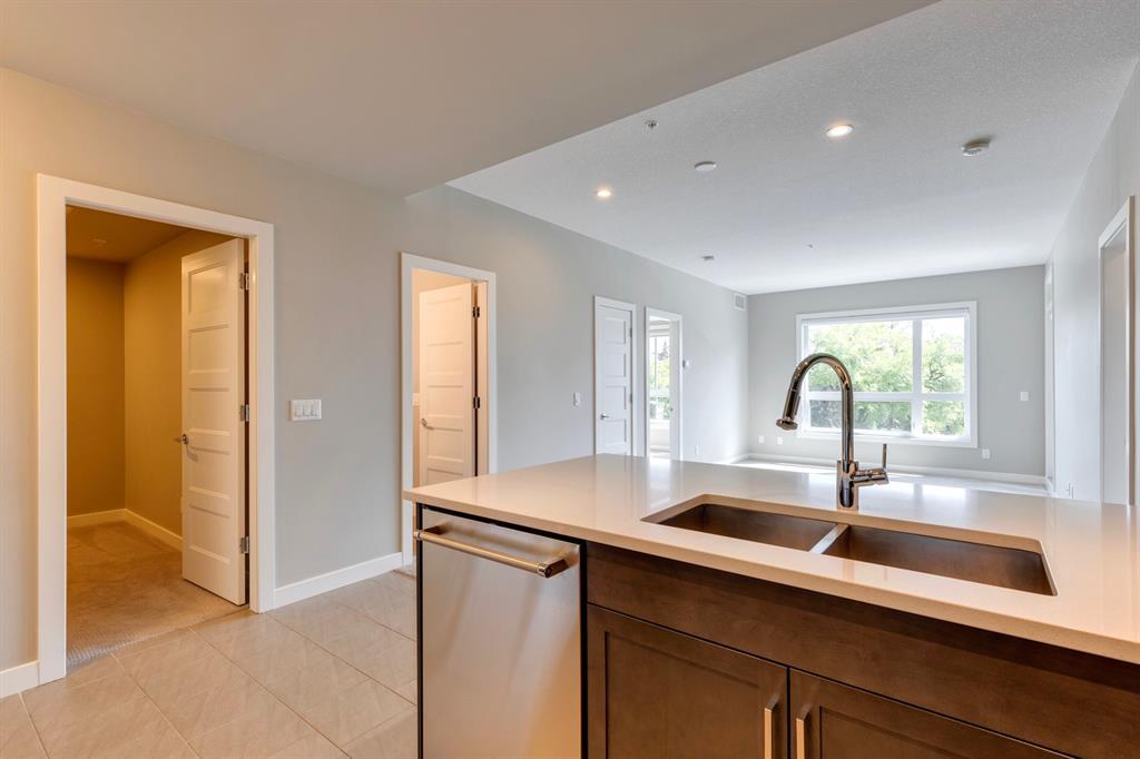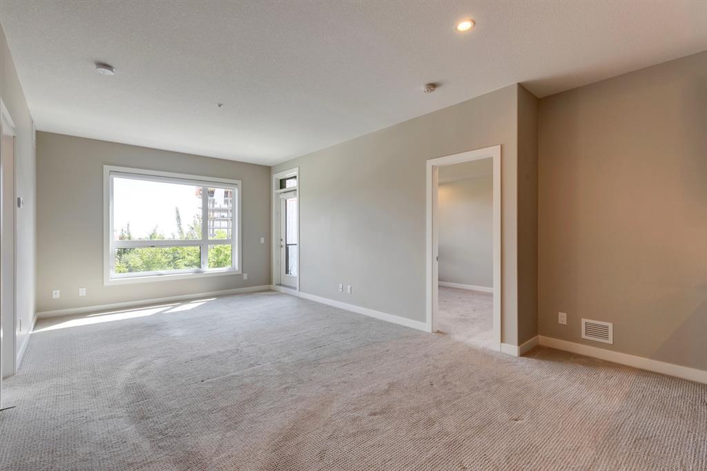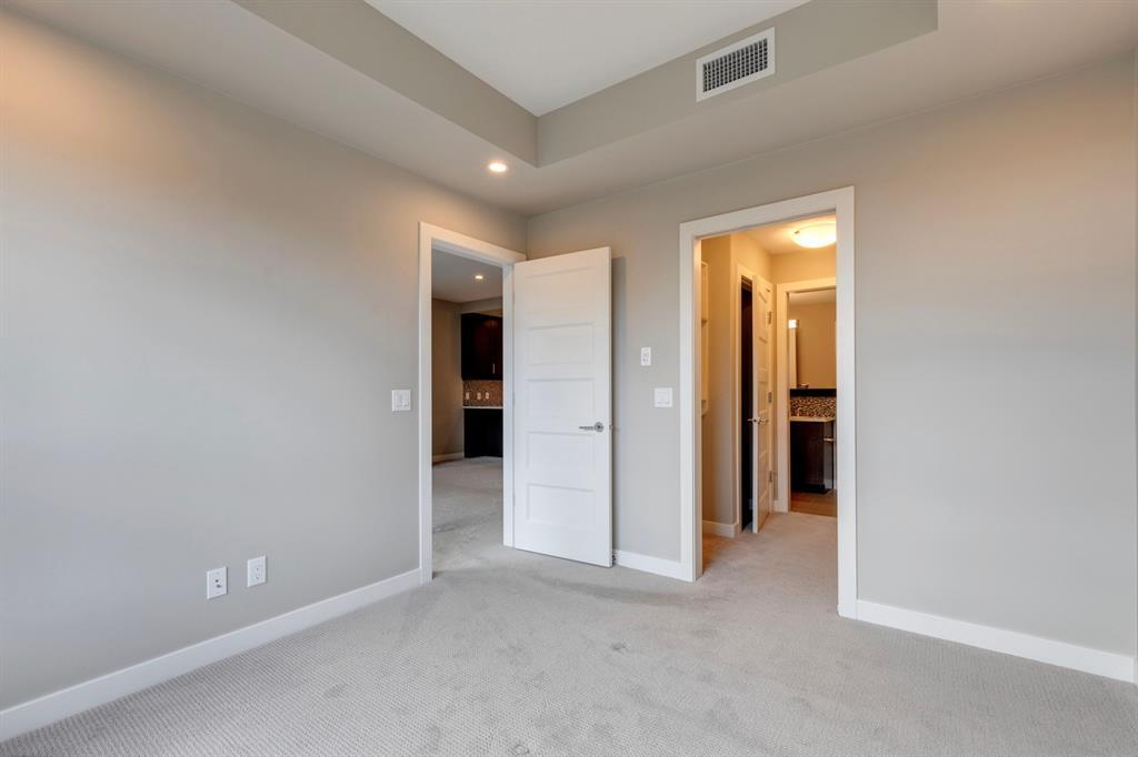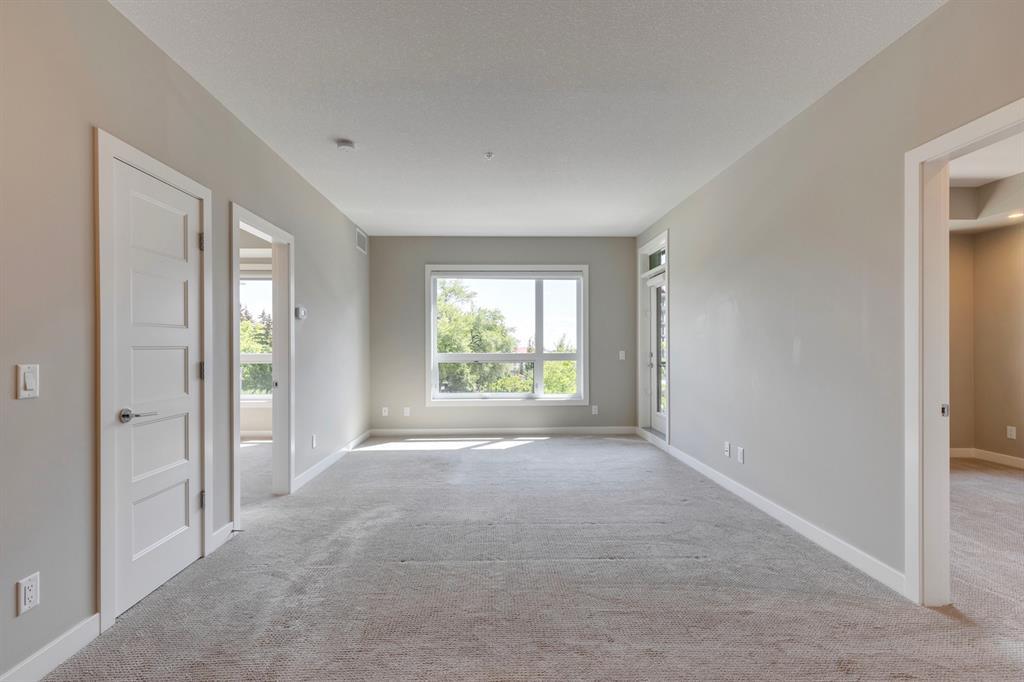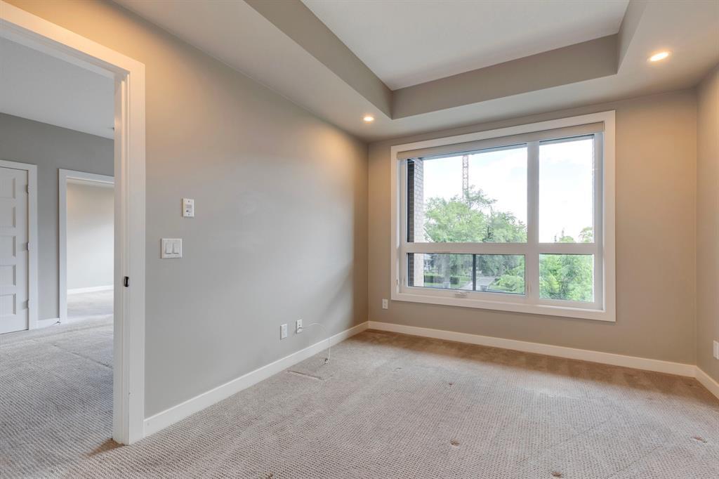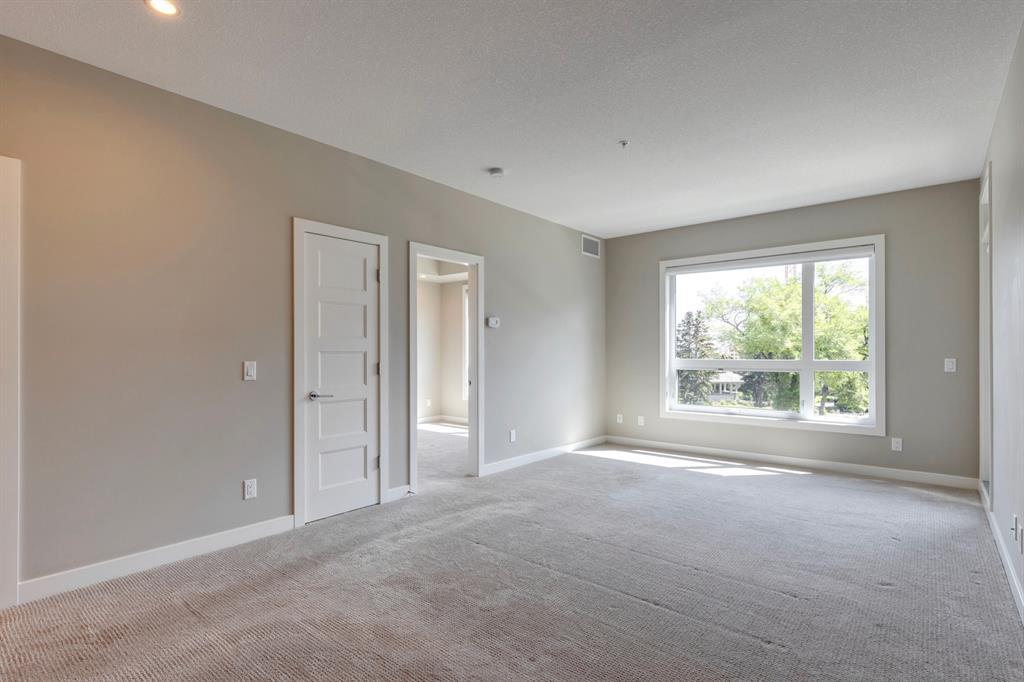 Welcome to The Armory in the vibrant, Historic community of Currie Barracks, home to many of Calgary's small businesses, restaurants and services, miles of bike and walking paths, acres of parks and green spaces and only a 7 minute commute to downtown. Beautiful and bright, this 2 bedroom plus den condo has the perfect view from the main living area and deck overlooking the Officers Mess Garden. 9 foot ceilings create an open feeling and the massive windows allow the light to pour in. Kitchen with upgraded appliance package is thoughtfully laid out and 2 large bedrooms situated on opposite sides of the living space each with their own bathroom and walk through closets. A quiet secluded den perfect for home office. Titled parking PLUS massive titled storage area built at the top of the parking spot (not just a wall cage). Only pay your electricity, cable. internet as all other utilities are included. Unit is fully air conditioned. (id:22211)