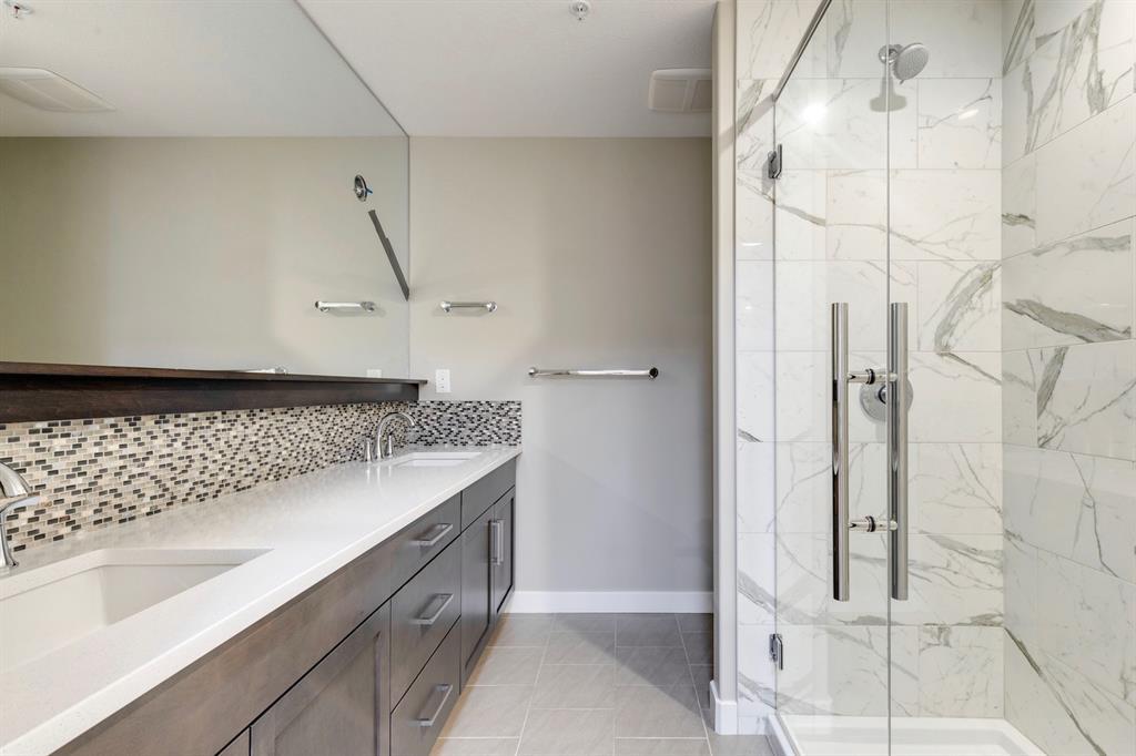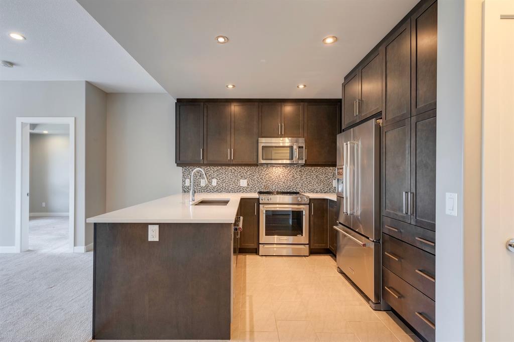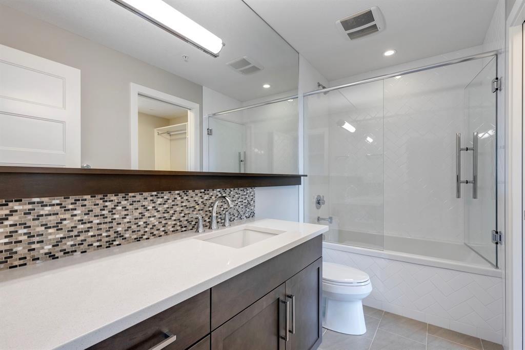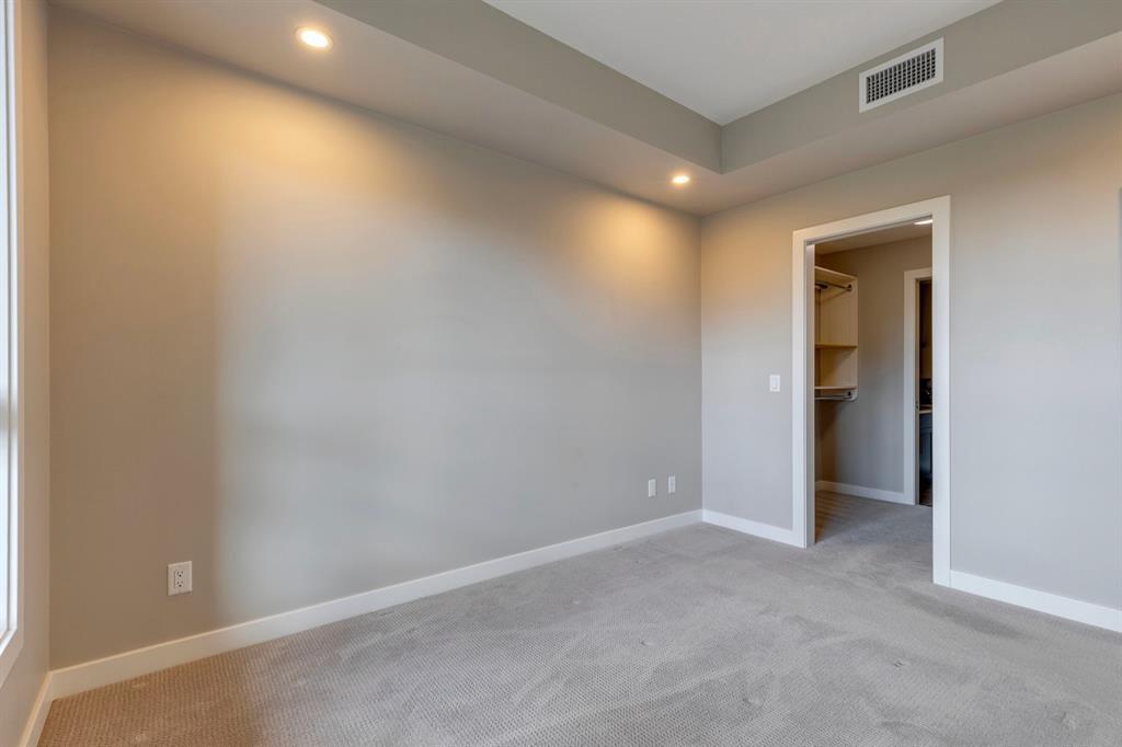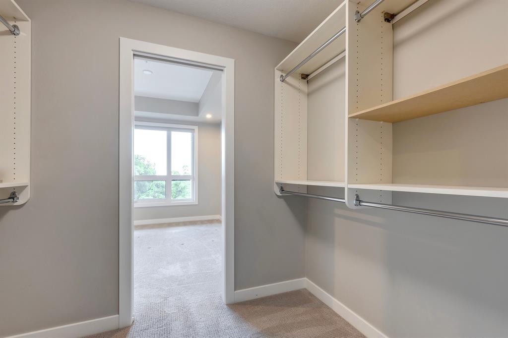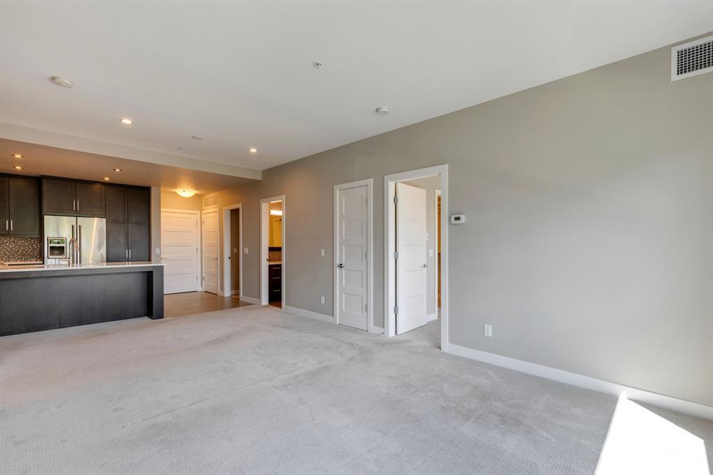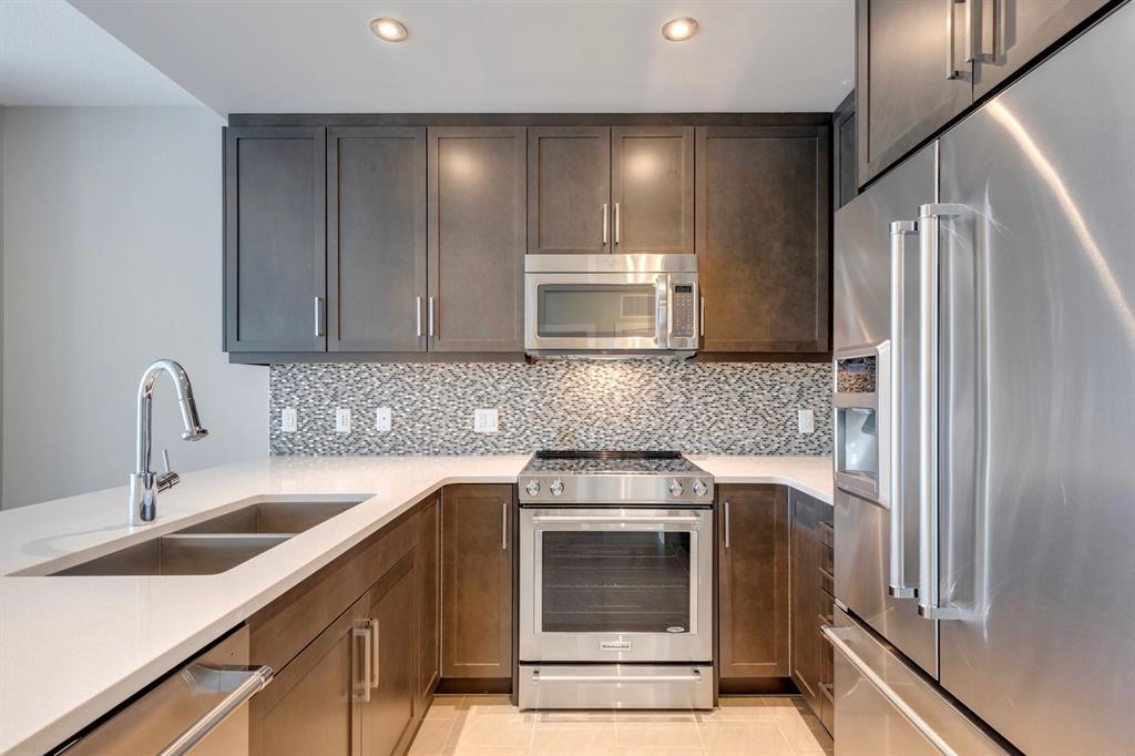 Welcome to The Armory in the vibrant, Historic community of Currie Barracks, home to many of Calgary's small businesses, restaurants and services, miles of bike and walking paths, acres of parks and green spaces and only a 7 minute commute to downtown. Beautiful and bright, this 2 bedroom plus den condo has the perfect view from the main living area and deck overlooking the Officers Mess Garden. 9 foot ceilings create an open feeling and the massive windows allow the light to pour in. Kitchen with upgraded appliance package is thoughtfully laid out and 2 large bedrooms situated on opposite sides of the living space each with their own bathroom and walk through closets. A quiet secluded den perfect for home office. Titled parking PLUS massive titled storage area built at the top of the parking spot (not just a wall cage). Only pay your electricity, cable. internet as all other utilities are included. Unit is fully air conditioned. (id:22211)
