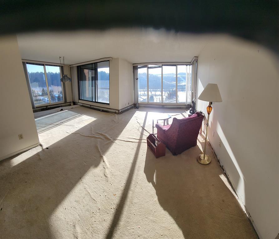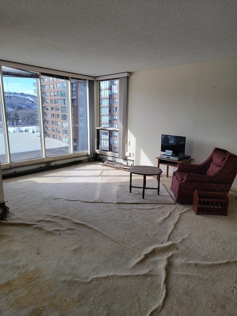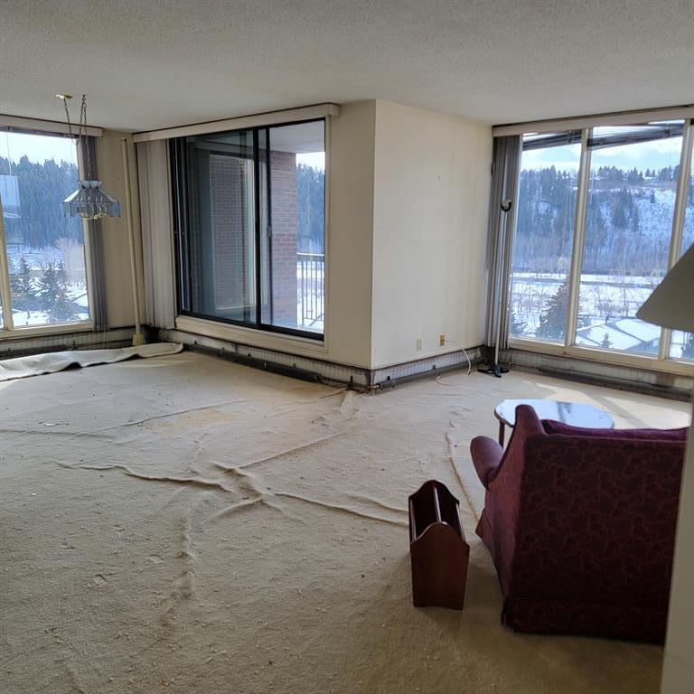 $7,000 flooring allowance from the seller. AMAZING VIEWS from this 2 BDRM, 1.5 BATH, LARGE BALCONY,, INSUITE LAUNDRY, INSUITE AND OUTSIDE STORAGE. IT'S NOT FACING THE TRAFFIC BUT FACING THE VALLEY. This unit is ready to be renovated to your own style and preferences. Priced as such, 40k below market value for a renovated unit facing the views on the 9th floor. Won't it be wonderful to put in the exact kitchen and baths that you want. The flooring paint colors, everything, you won't have to settle for someone else’s ideas and tastes. The living room is huge with plenty of room for your big furniture and the dining area is large enough for family dinners. See the view from every room. The balcony is a nice size and will fit a table and chairs and plant space. The primary bedroom is also very large with a convenient walk-in closet and 2-piece ensuite. All of this in a CONCRETE 18+ BUILDING THAT HAS HAD MANY UPDATES. THE LOBBY, HALLWAYS, PARKING, PARTYROOM ALL SHOW AS MODERN. ENJOY ALL THAT RIVERSIDE HAS TO OFFER. The GYM IS AMAZING, and it is similar to public gyms and offers a variety of exercise and stretching areas. INDOOR SALTWATER POOL AND HOTTUB, INDOOR TENNIS COURTS, A 20,000 sq. Ft. INDOOR GOLF CENTER ATTACHED TO THE COMPLEX, OVER 5000 SQ FT COMMUNAL OUTSIDE DECK AND PARTY ROOM. UNDERGROUND HEATED PARKING, CAR WASH BAY, 24 HOUR CONCIERGE SERVICE. Hair and Nail Salon, Dental & Vision and Sports Therapy. This is a community, a place to live where you meet your neighbors and enjoy a lifestyle. Heat, hot water and electricity all included in the maintenance fee. This building show 10 out of 10. don't miss this opportunity to own a forever home in Riverside. CLOSE TO ALL AMENITIES, TRAILS, PARK, AND SHOPPING. (id:22211)