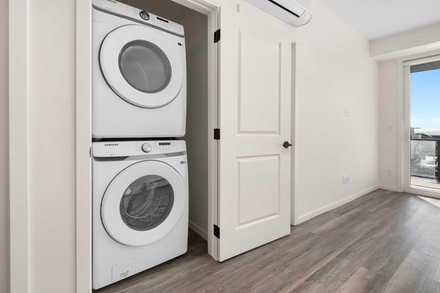 TOP FLOOR 3 BEDROOMS | 2 FULL WASHROOMS | AIR CONDITIONER| 2 TITLED PARKINGS | HUGE BALCONY | SOUTH FACING. Experience the perfect blend of comfort and style in this pristine top-floor south facing 3-bedroom, 2-bathroom condo in the sought-after community of Sage Hill! With 9-foot ceilings and luxury vinyl plank flooring throughout, this home offers a bright and modern living space. The sleek kitchen is designed for culinary enthusiasts, featuring a spacious granite island and high-end stainless steel appliances. Enjoy year-round comfort with a wall-mounted air conditioner and the convenience of in-suite laundry. Step outside to a generous south facing private balcony, ideal for relaxing or entertaining guests. Your vehicle will stay safe and warm in the heated underground titled parking and an additional surface titled parking stall directly below the balcony. Located just minutes from Creekside Shopping Centre, Stoney Trail, Co-Op, Walmart, T&T, and Costco, this home is surrounded by scenic walking trails and peaceful storm ponds, making it a perfect retreat. Don’t miss this incredible opportunity—book your showing today!