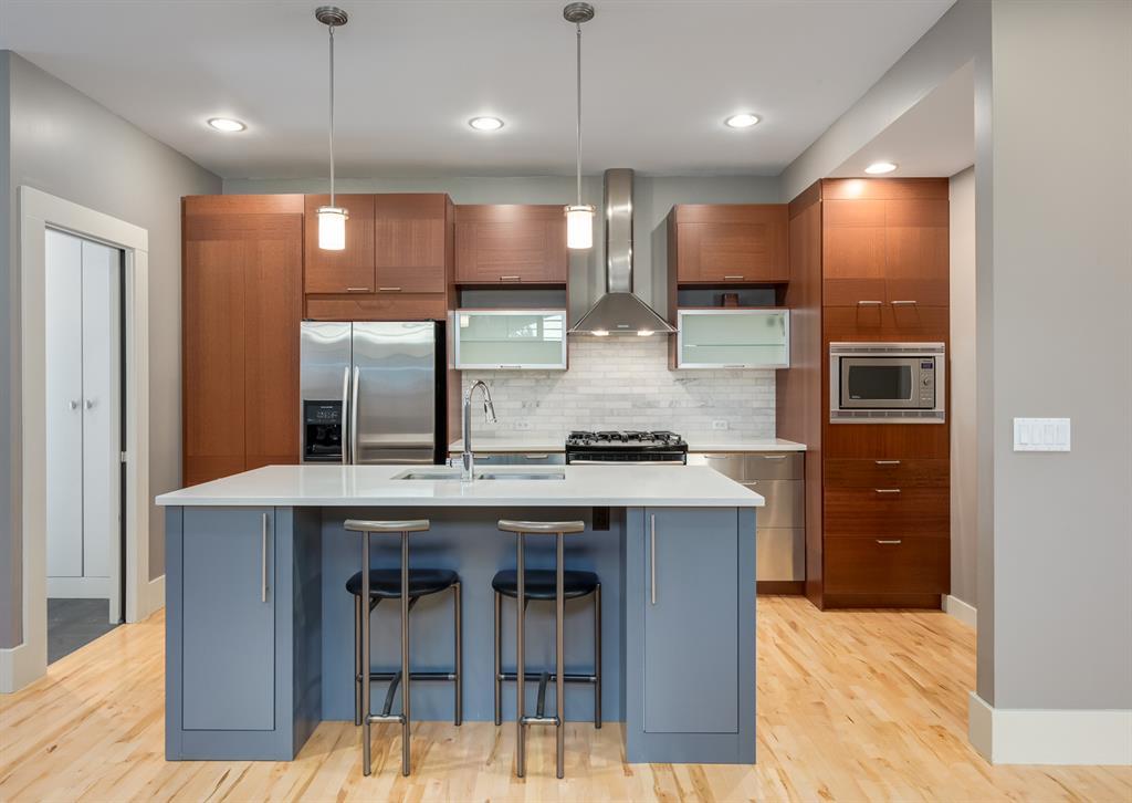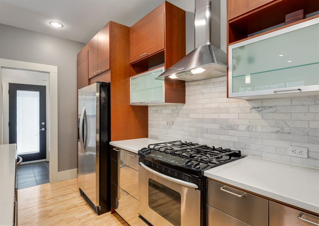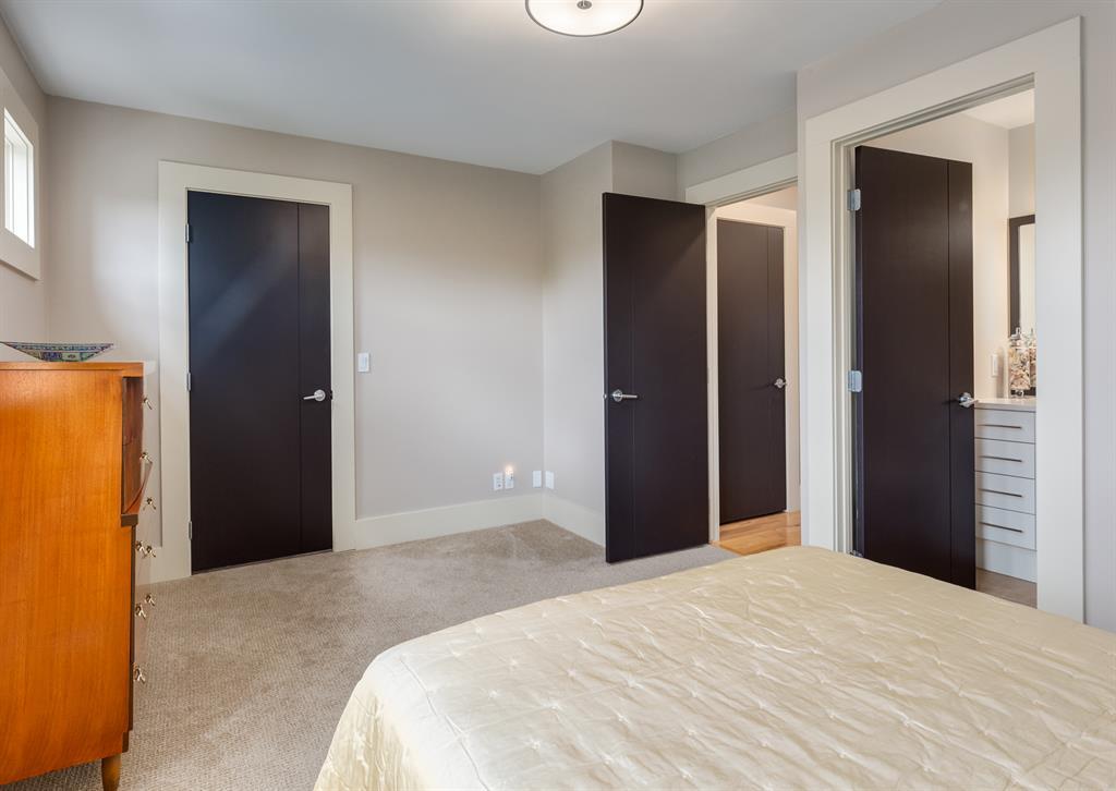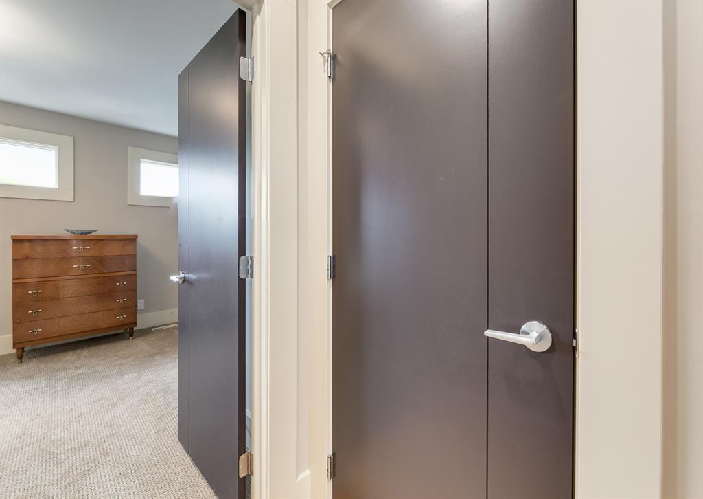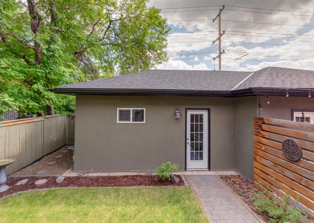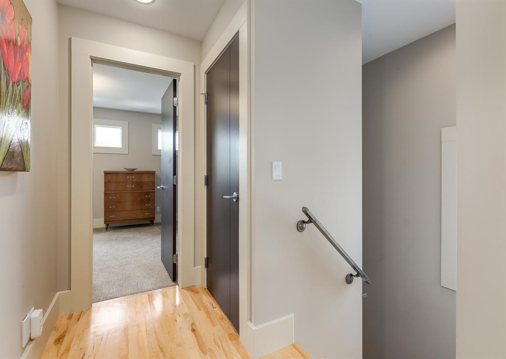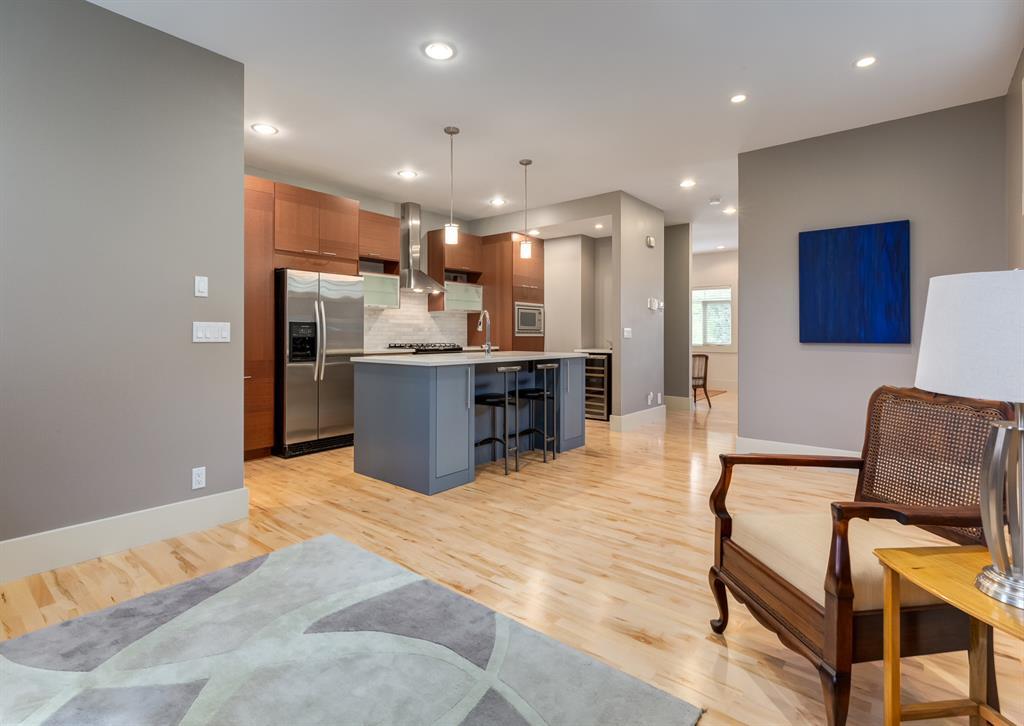 Absolutely mint, this home is pristine and shows like new. With attractive curb appeal, from the landscaped yard, extra wide aggregate sidewalk and steps, and a gorgeous custom wood front door. As you step inside you are greeted by a light and bright interior. With finished onsite maple hardwood floors and a comfortable front living room. The open-concept kitchen has newer quartz counters, a stainless steel appliance set with a gas range, and a fridge with a water dispenser and a beverage fridge. There is an updated center island with a deep dual basin sink and quality full-wood interior cabinets. The family room feature wall expresses elegant quality with wood panel detailing and a natural gas fireplace. there is a mudroom rear entry with built-ins for all your storage needs, and stepping onto the back deck you can enjoy a private setting with the fabulous south sun, with the shade of mature trees and lilacs. With gas hookups and a two-tiered deck that eases onto the fully landscaped yard, a perfect place to relax during the long summer days ahead. The hardwood finish flows up and down the stairs with a modern stainless steel handrail. With 3 Bedrooms total, both upper rooms enjoy ensuite full bathrooms, and walk-in closets and the primary bedroom is spacious with a Juliet balcony and south views. Fully developed downstairs delivering 2136 square feet of total living space and 3.5 bathrooms. There is a cozy recreation room, ample storage, fully air-conditioned, and a 2-car garage. All in a fabulous Kensington location, moments to the river paths, the downtown, cafes, coffee shops, grocery stores, and transit. (id:22211)