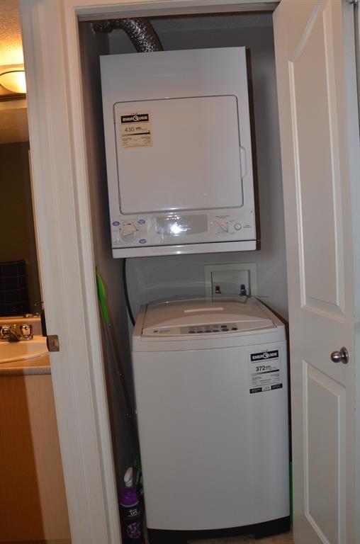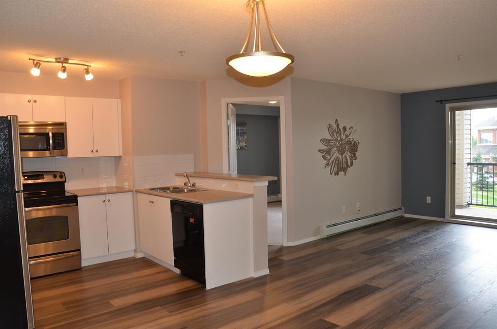 Come back due to financing. Nice OPEN plan unit with 2 bedrooms 2 FOUR PIECES bathrooms plus Den, renovated with vinyl plank floor and stainless steel appliances and newly painted kitchen cabinet. The large MASTER BEDROOM has a WALKTHROUGH CLOSET to the ENSUITE BATHROOM. The 2nd bedroom is a great size and is located on the opposite side of the unit providing privacy and is situated next to the main bathroom. And the living area features sliding patio doors opening onto the east facing balcony overlooking a treed, QUIET, natural reserve. The Den can be used as dining area or office.The Bridlecrest shopping centre, right next door, provides health services, banking, convenience store, and eateries. The building is just a one-minute walk to the bus stop, that will then quickly get you to the Somerset C train station. The location also provides easy access to Stoney Trail, connecting you to anywhere (Costco nearby) in Calgary, or out of town. Walking distance to local CBE and CCS schools. This is the perfect unit for those seeking a walkable neighbourhood and maintenance free lifestyle. Very economical as ALL UTILITIES are included in the condo fee. (id:22211)