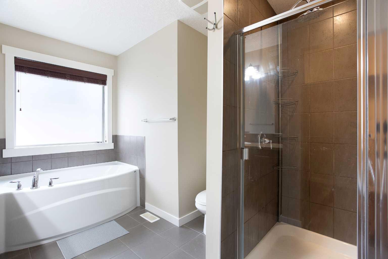 The upper level offers an impressive primary bedroom featuring a ceiling fan, spacious walk-in closet, and a luxurious spa-inspired ensuite complete with a relaxing soaker tub and walk-in tiled shower. You'll appreciate the convenience of the upper-level laundry room. Two additional generously sized bedrooms and a well-appointed 4-piece bathroom round out the upstairs.