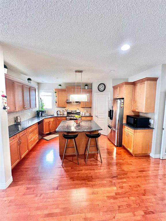 DEAM HOUSE IN EVANSTON::::::::::: One of the best community of North West. Over 2200 Sq .Ft house facing a green space and with Nemours upgrading like soft rounded corner, three sided fireplace, Hardwood flooring, 9ft high ceiling and walk-out basement. Very spacious and open concept plan has beautiful combination of architect with natural tone color scheme. Main level consists of flex room, great room, kitchen, dinning area and double French door to deck. The upper level has master bed room with En-suite bath, standing shower, big walk-in closet, two other big size bedrooms, bonus room and open to below and laundry area. The basement is fully renovated and walks out to a concrete block patio. This floor also features two bedrooms, a kitchen, a large family room and a full bathroom. You will be nothing but in love with this house! Call today to view. (id:22211)