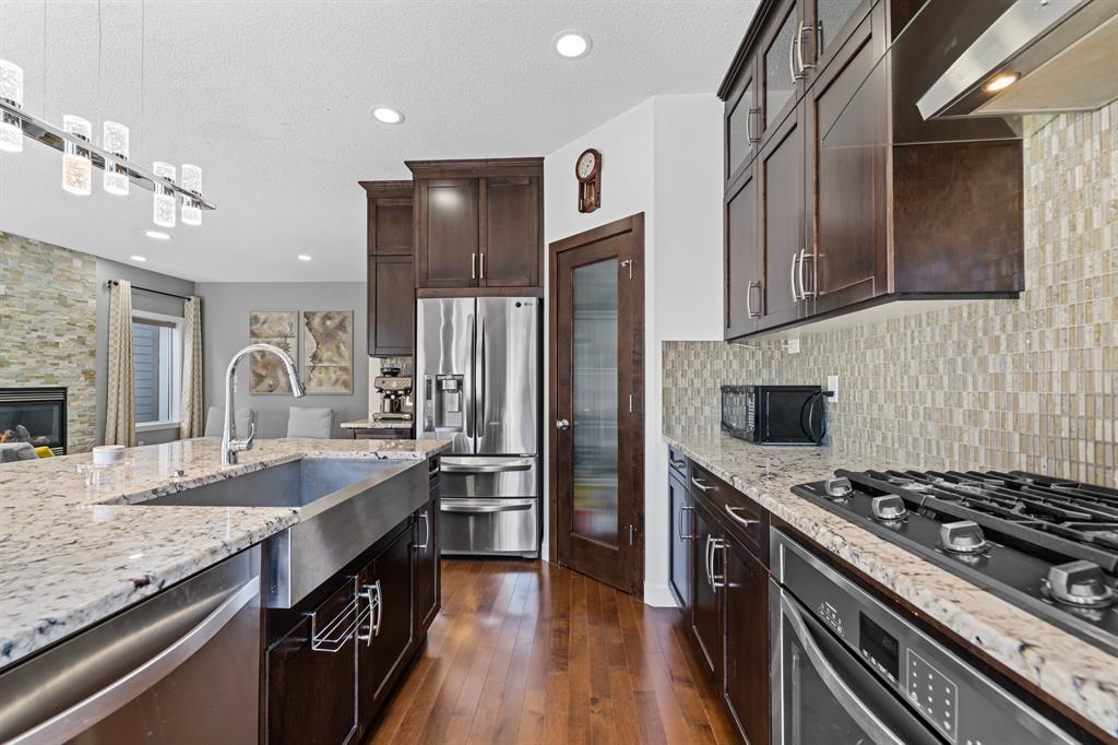 Executive custom-built 2 storey with developed basement located in the family-oriented Valley Ridge Pointe Estates. A total of 4 bedrooms, 4 bathrooms, a bonus room and a main floor office/den. Perfect for working from home. Bright and open floor plan with tons of upgrades; move-in ready. This stunning home boasts high-end finishes and natural light that illuminates the 9’ ceilings and gorgeous hardwood floors. The open-concept great room offers clear sightlines and a contemporary look that is both beautiful and welcoming. Relaxation awaits in the living room with a cozy fireplace and extra windows. Entertain in the kitchen with a large island, granite countertops, a corner pantry for extra storage and an abundance of full-height cabinets that contrast beautifully with the upgraded SS appliances and 5-burner gas stove. The dining area leads to the sunny west-facing backyard; perfect for any indoor/outdoor lifestyle. The yard offers a low-maintenance concrete patio great for summer BBQs and a fully fenced area for the kids to play in. Gather in the huge, vaulted bonus room on the upper level. This amazing space is perfect for customizing to your family’s needs as a media room, play area or hobby space with views of the park out front. At day’s end, retreat to the generous master suite with walk-in closet and private 5-piece ensuite boasting dual sinks and a deep soaker tub. This level is also home to 2 additional spacious bedrooms, full family bathroom and convenient laundry room. Vinyl flooring throughout the second level (no carpet). More space awaits in the finished basement. Come together for movies and games in the massive rec room. This level has a 4th guest bedroom, full bathroom and tons of storage. Additional upgrades to the home include stucco siding, floor-to-ceiling stone around the fireplace, light fixtures and extra windows. Across street from a playground/greenspace. Lots of street parking. Steps from a nature reserve with pathway and hiking trails to Bow River. Just a short drive to the Valley Ridge golf course, Winsport/COP with its skiing and mountain biking. Easy exit to the mountains (45 minutes to Canmore). Close to many conveniences: soccer fields, parks, ice rink and the new Superstore, Calgary Farmers Market, Calaway Park and the new Bringham Crossing luxury shopping mall (with a Costco under construction) and less than 20 minutes to downtown. Call to book your private showing today. (id:22211)