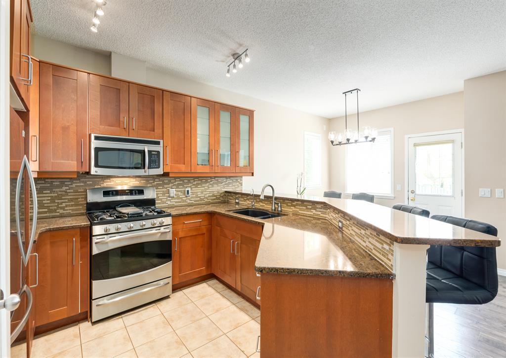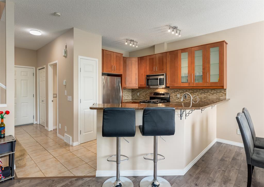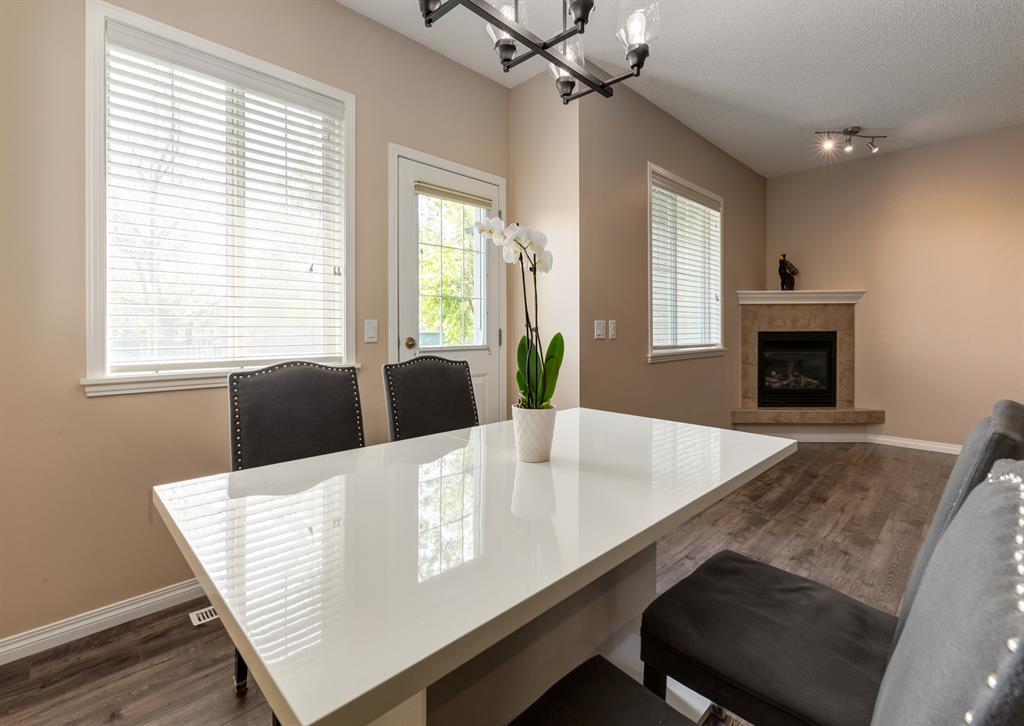 Beautiful townhouse located in the popular neighborhood of West Springs across the street from a greenspace and park. This two storey features 1,837sqft of living space with a double attached garage and driveway. The main floor features 9ft ceilings, tile and newer laminate flooring throughout. Kitchen with stainless steel appliances, granite countertops, lots of cabinet space, side pantry, under cabinet lighting and raised eating bar. Open concept floorplan with the large living room with corner gas fireplace and dining nook with access to a rear deck overlooking the greenspace across the street. The upper level features the large primary bedroom with walk-in closet and 4pc ensuite including granite counters, soaker tub and separate shower. Two other great sized bedrooms, 4pc bathroom with granite counters and upper floor laundry room. The basement is fully finished with a huge family/recreation room and computer nook. Plenty of windows bringing in great natural light and located just minutes from schools, shopping and major transportation routes. You don’t see many townhouses in this area at this price with a double attached garage. Don’t miss out on this opportunity. Make your private showing today. (id:22211)