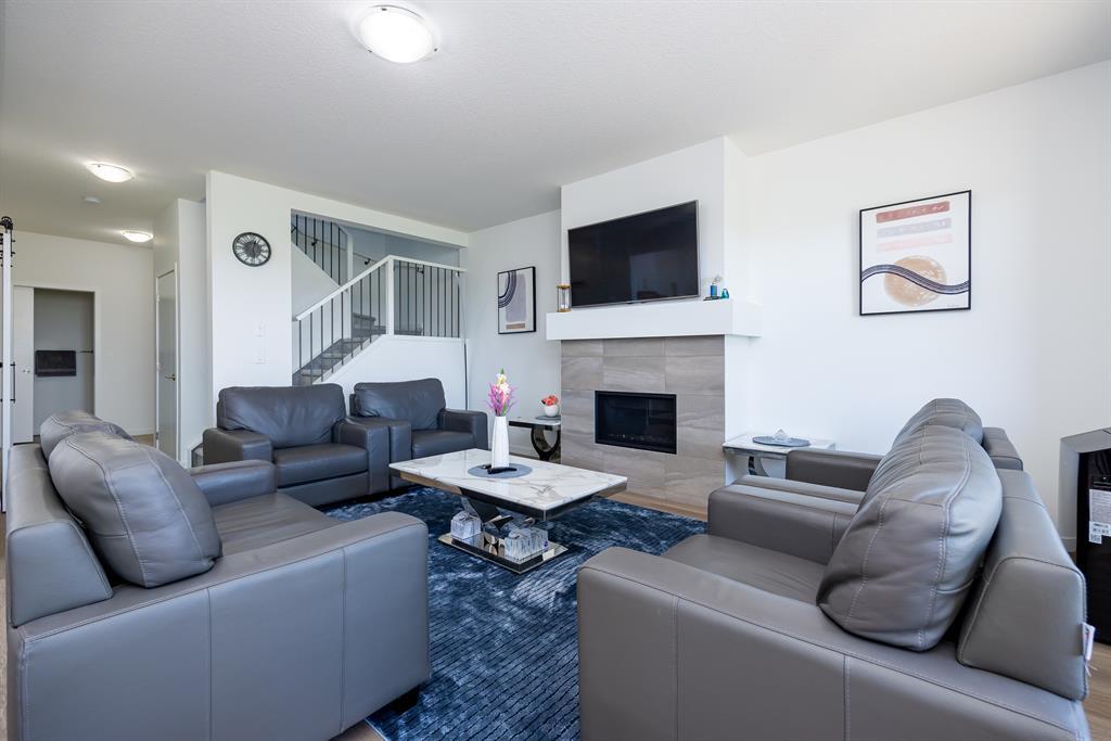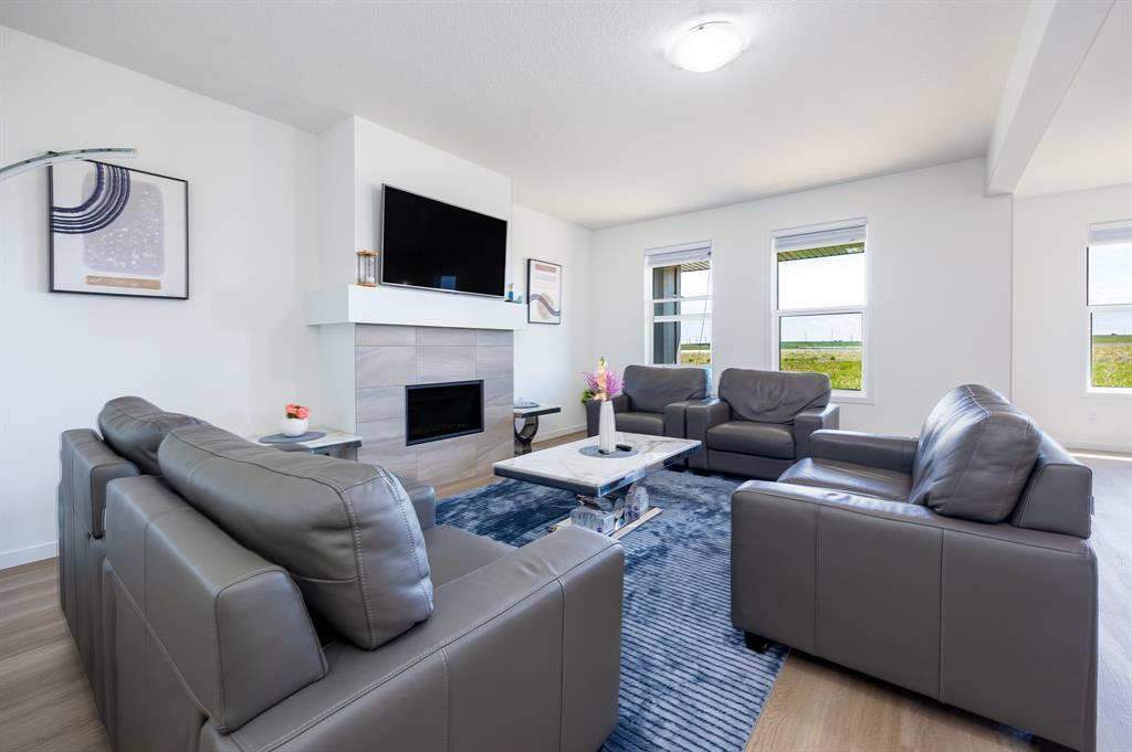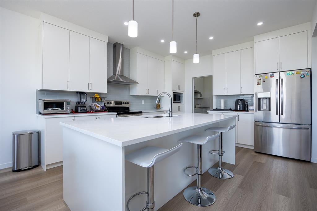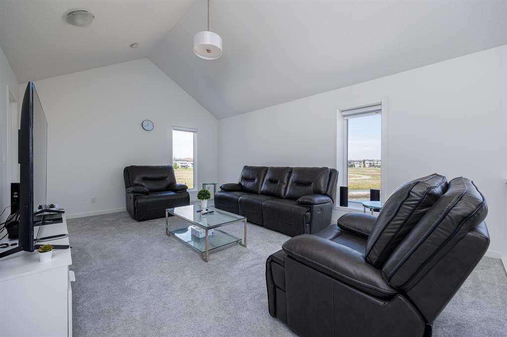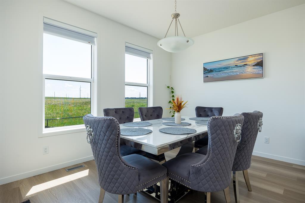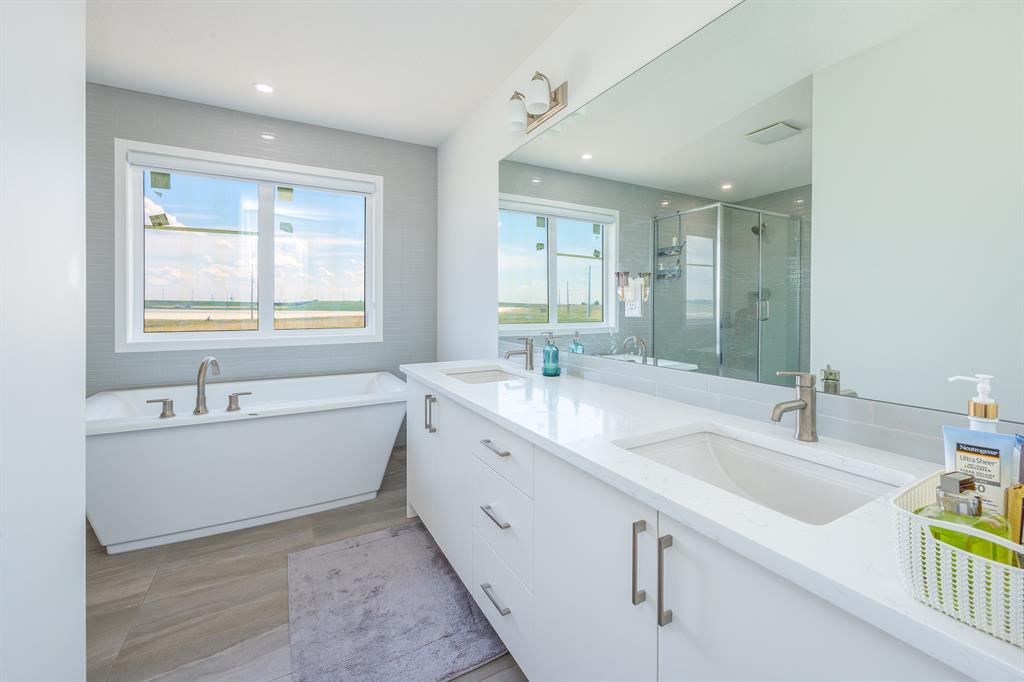 Beautiful 2023 build home in the community of Copperfield with over 2700 square foot of developed living space above grade An awesome curb appeal with having pond on the east side and backing on to the green space.., A beautiful spacious main kitchen with island plus a separate spice kitchen as well. Good size family room with a cozy fire place on the main floor with a home office, The upper floor offers two master bedrooms plus two other bedrooms with a spacious bonus room. The owner's suite and bonus room have vaulted ceilings. The undeveloped basement with separate exterior entrance is roughed in and ample windows for light. The community is known for it's great features like great schools, shopping centers, Hospital and YMCA. Close proximity to Stoney trail access makes this community unique. It's worth viewing the property. Book your showing today !! (id:22211)
