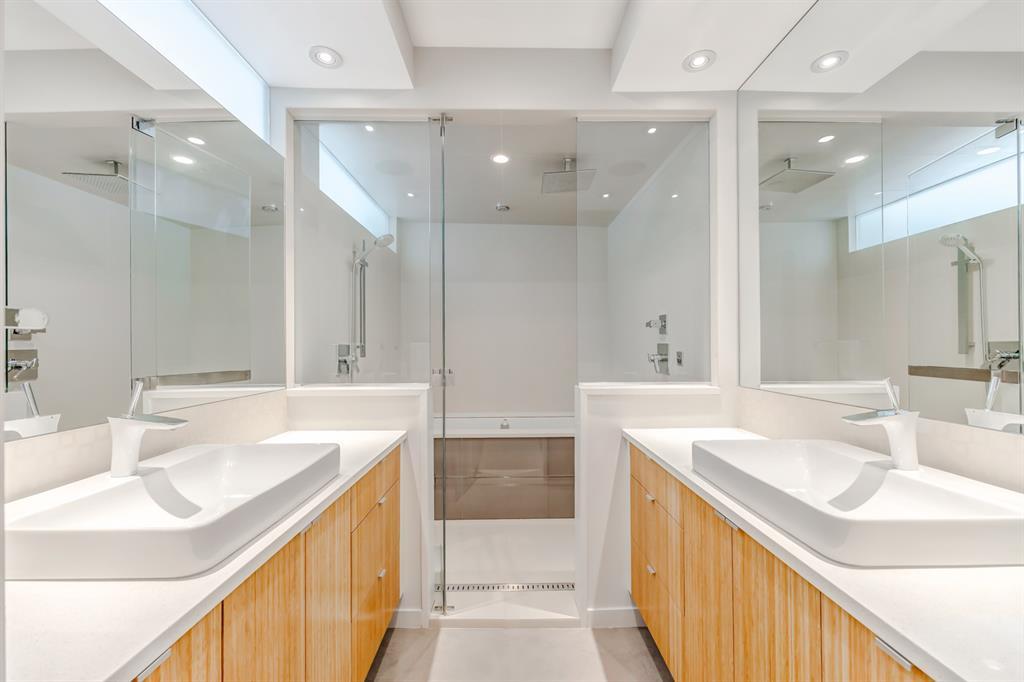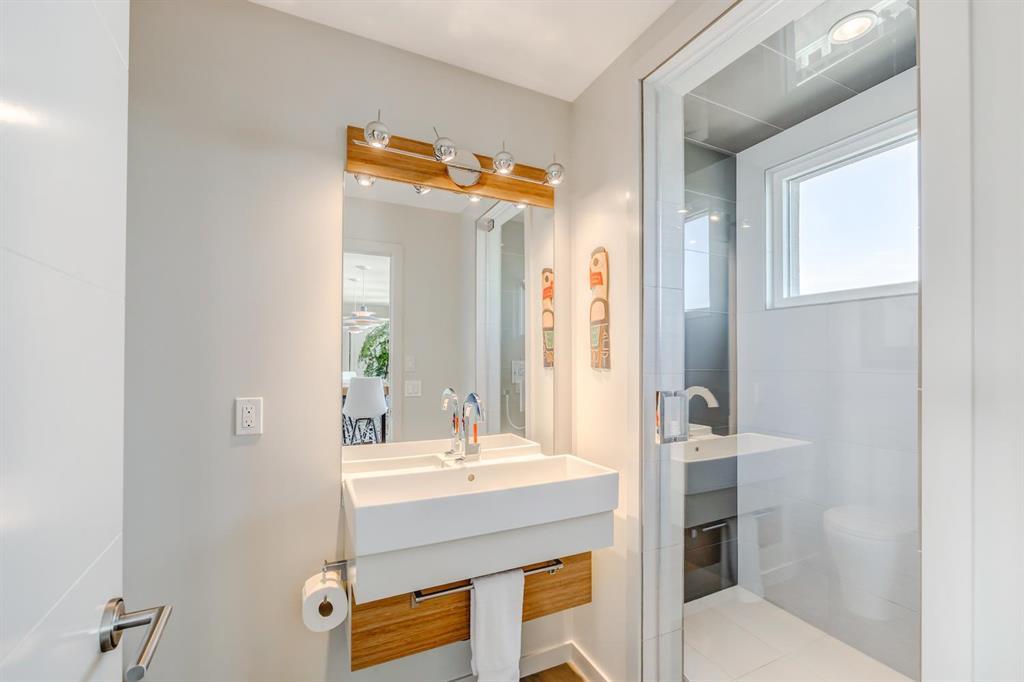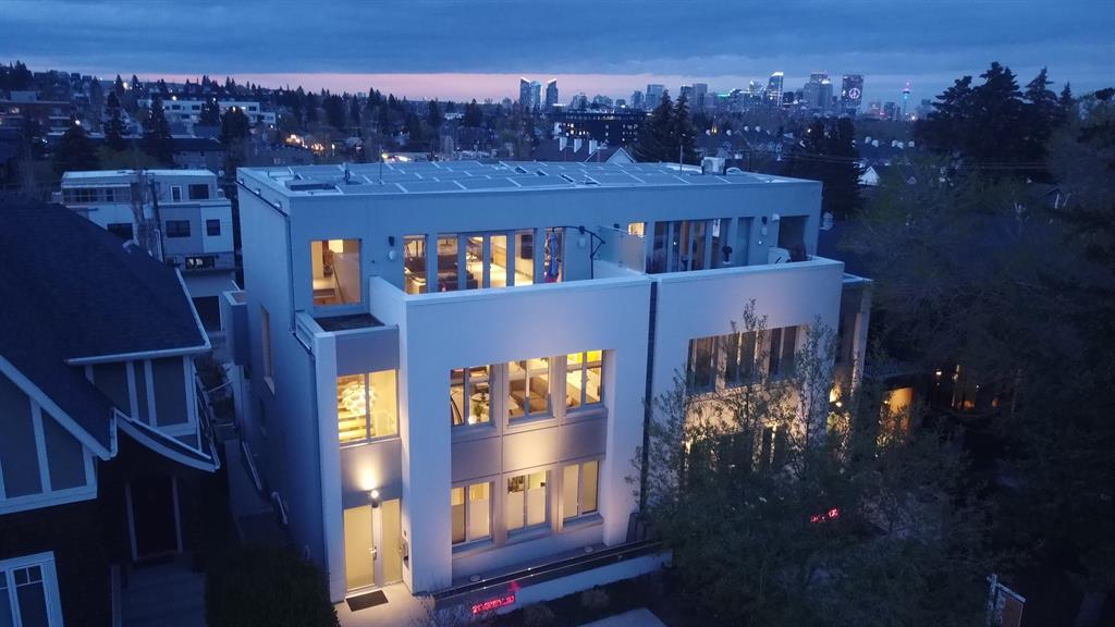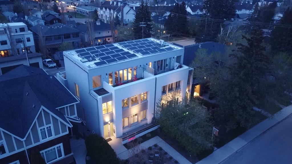 This RARE and innovatively designed 3 storey ICF concrete (complete structure) home offers unparalleled craftsmanship and exceptional amenities! We’re not just green, we’re smart! This extra wide home sits on an LARGE 32.5'x126' deep lot and features a comprehensive Control 4 home automation system, plus 19 solar panels that produce HUGE energy savings! Stroll inside and marvel at all of the natural light with the abundance of windows and 9' ceilings throughout. The inverted floor plan allows you to “live in the views” where you will enjoy the awesome downtown vistas from the common living areas, while the bedrooms are on the main floor offering separation and privacy. On the 2nd floor you’ll find our kitchen that boasts Miele appliances, a large quartz island for get togethers, dining area, great room with hidden bar, and powder room. Need fresh air? Head outside to the 2nd floor terrace with built-in BBQ, turf decking, and more spectacular views!!! The 3rd floor features a 745 ft² entertaining space with 7.1 surround sound, a work station/Murphy bed, 3 piece bath, and a SUNNY south terrace. Lastly, the lower level is finished with a rec room, 3 piece bath, storage and the possibility of a 4th bedroom if needed. This unique open floor plan enhances the home’s airy and modern mood, with bamboo cabinetry and InnoTech Tilt and Turn European windows. Complete ICF construction on all 4 floors/party wall/roof/walls create a huge thermal mass and very stable air temp and quality. No expense was spared with in-floor heat throughout, 10 distinct thermostat zones, plus an ATTACHED TRIPLE oversized garage with lots of extra room for all your sporting gear and toys! Ask your realtor for our 8 page brochure that lists so many upgraded features that we just can’t possibly capture here. (id:22211)