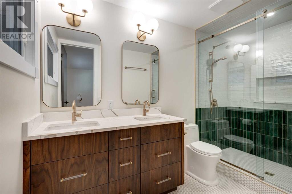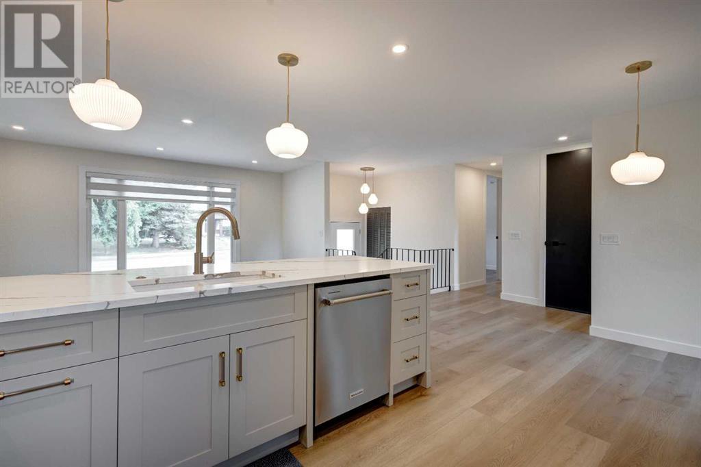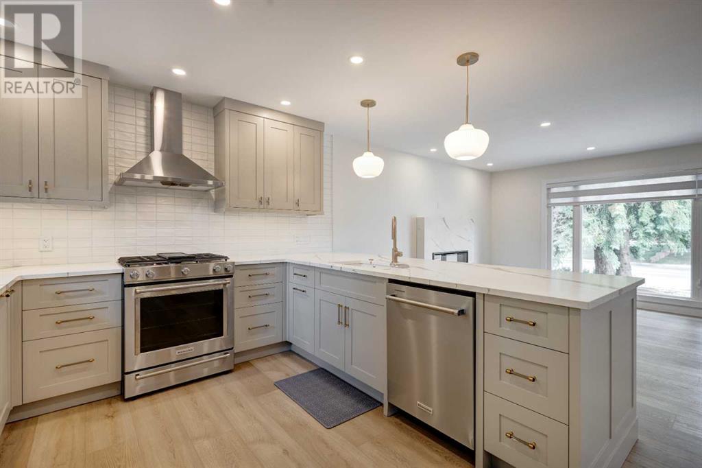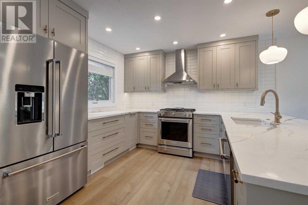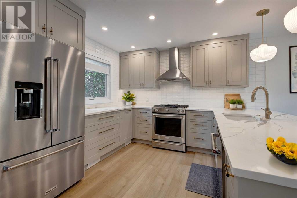 A true showstopper! Completely renovated from top to bottom, with almost 2300 feet of living space, this gorgeous four-bedroom home in the coveted Palliser community is sure to capture your heart. Every detail of this professional high-end renovation has been meticulously executed. As you enter, you're welcomed by a bright, open-concept main floor featuring gorgeous hardwood floors, an ultra-luxurious gourmet kitchen with uber high-end "Kitchen Aid Premium" appliance package, and spacious dining and living areas. The main floor also includes the primary bedroom with a beautiful ensuite and a massive walk-in closet, as well as a second bedroom and full bath. But wait until you see the downstairs! It features two more generously sized bedrooms or home office spaces, another full bath, a laundry area, ample storage, a bright and open family or media room, and your own custom home gym complete with gym-grade flooring and floor-to-ceiling mirrors. This is a uniquely huge lot measuring a whopping 48' x 133', and the expansive pie-shaped backyard is a true private oasis with mature trees offering complete privacy, perfect for children, entertaining, or soaking up the sun. Highlights of this extensive renovation include all-new plumbing and electrical systems, a new furnace, hot water tank, Central AC unit, all new windows and doors, custom vanities/built-ins and kitchen cabinetry, foam insulation throughout, a re-insulated attic, a soundproof basement ceiling, Delta plumbing fixtures, West Elm lighting, custom window treatments, and a freshly painted exterior, new fencing, and brand new roof. This prime location near the Glenmore Reservoir, South Glenmore Park, and Glenmore Landing’s shops and restaurants offers excellent access to various recreational activities and lifestyle amenities. Enjoy scenic walks, outdoor adventures, or simply relax in the natural surroundings. For families, the proximity to excellent schools, recreation options, and the great outdoors makes this home an exceptional opportunity. (id:22211)