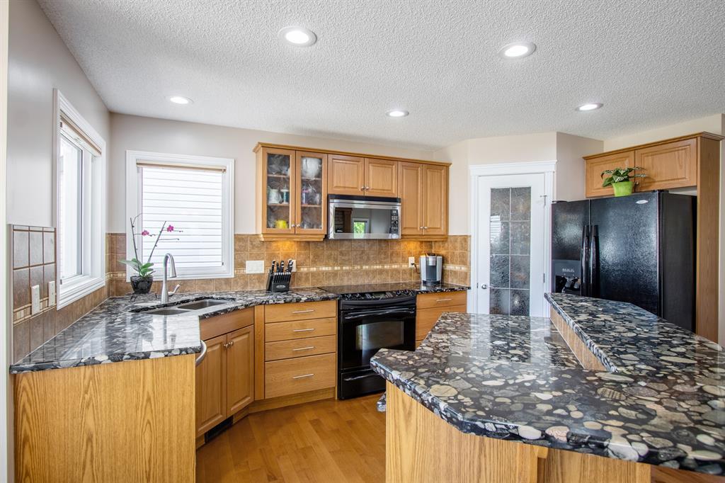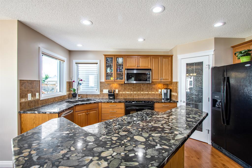 Located on a quiet cul-de-sac in the award-winning community of McKenzie Towne, this wonderfully kept two-storey with 5 bedrooms and 2.5 bathrooms and a heated double detached garage is a must see! This Jayman built home comes with all the extras including air conditioning, tankless water heater, triple pane windows, Hardie Board siding and upgraded insulation making it more energy efficient than your average home. Highlights of the main floor include hardwood floors, granite countertops, a large kitchen island with breakfast eating bar, a stone surround gas fireplace with mantle in the living room, a bright and spacious dining nook, a flex room with French doors perfect for a home office, pot lights and speakers overhead and a powder room. Upstairs there is a common 4-piece bathroom and three large bedrooms including the master featuring ample closet space and a 4-piece ensuite bathroom featuring a deep soaker tub and separate shower. The lower-level offers two large bedrooms, laundry and a flex space ideal for a home gym or a kid’s play area. Enjoy the sunny days of summer in the fully fenced and beautifully landscaped backyard featuring a deck, lower patio with pavers, raised garden bed with colourful perennials, a storage shed and space to park a small tent trailer or recreational toy. This home also offers additional outdoor living space on the front veranda. Located close to schools, shops, playgrounds, parks, transit, and more! Book your viewing today! (id:22211)