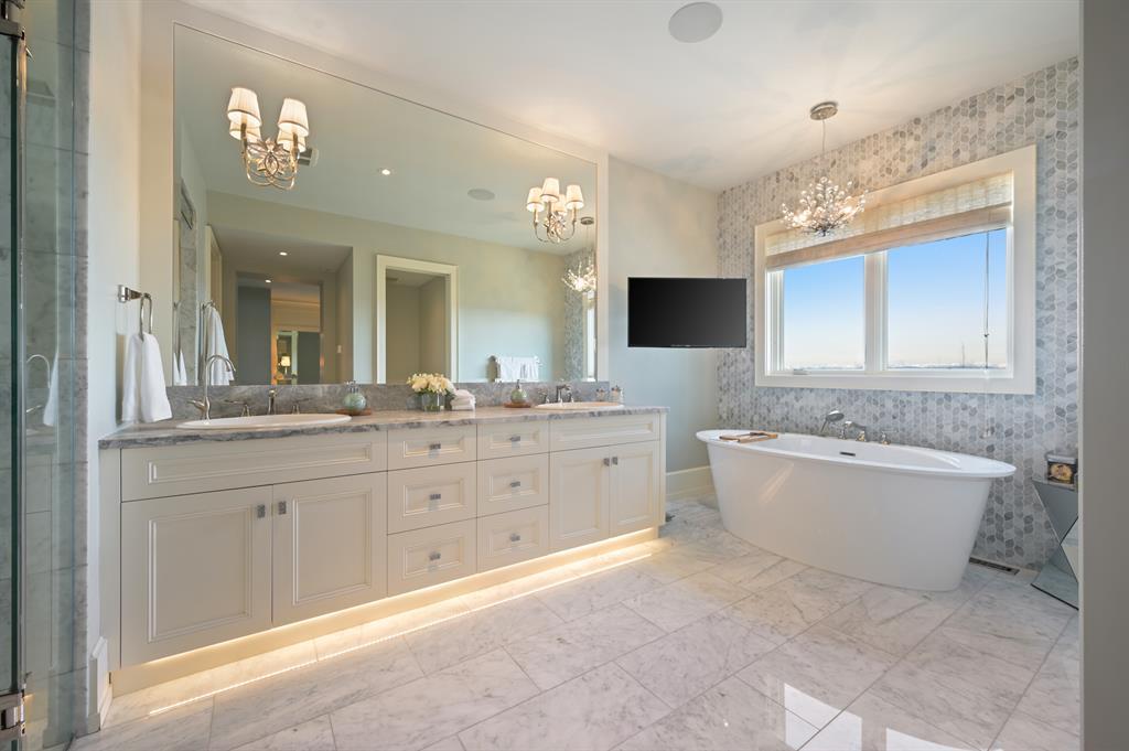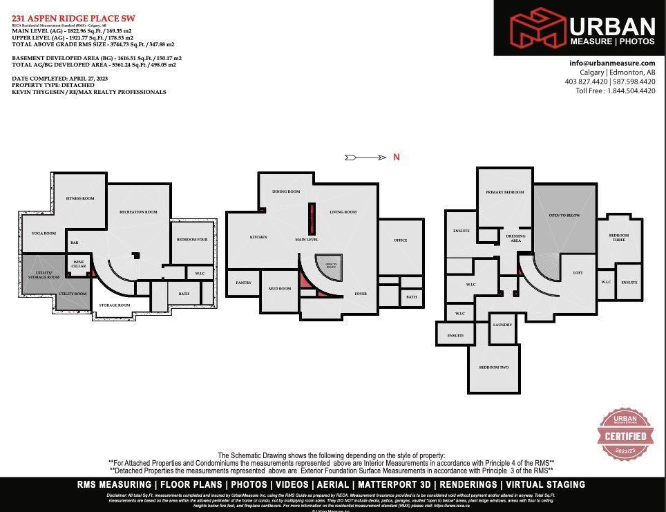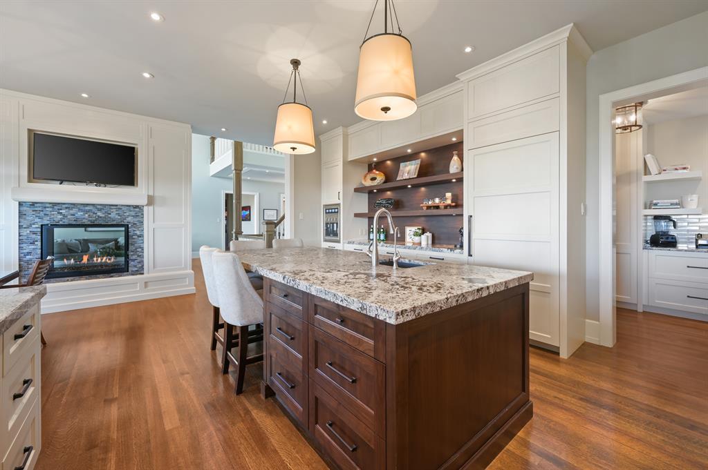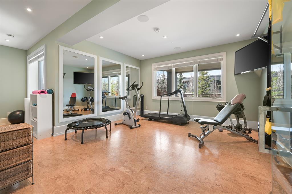 This beautifully built family home was crafted by Rockwood Custom Homes to be 'just right' and each item, finish and addition was carefully chosen with love and care. Designed and planned with precise attention to detail and only the highest level of quality finishing available—the perfect balance of style and function! Nestled on a huge lot in highly sought after Aspen Estates, this timeless home offers more than 5300 SQ FT of intentional design and thoughtful touches. The main floor entryway and primary living room is bathed in natural light thanks to the 23’ foot vault and wall of windows. This open space is anchored by the see through two-sided fireplace, adding beauty and warmth to the entire area. The spacious and practical kitchen has all you could want—Miele and Dacor appliances, full height cabinetry, phenomenal counter and storage space, huge pantry room with upright freezer and additional storage and workspace—and is sure to both embrace your family and ‘wow’ when you entertain. With 4 bedrooms total—the amazing, inspiring and HUGE master retreat, two upper level bedrooms each with ensuite and walk-in closet, and an additional bedroom down—this home can accommodate family and guests in true comfort. The bright, walkout lower level has heated floors, bedroom, full bath, a spacious home gym and yoga space with cork flooring, recreation room/games area built for fun. Every detail was considered in building this home and there are truly more features than can be listed here—oversized triple heated garage with room for 3 lifts, custom curved staircase, ingenious addition of pocket doors in many rooms, light-filled main floor office, a very functional mudroom, upper level laundry room, in-floor heat in all bathrooms (no more cold toes!), multiple outdoor living spaces including a west facing covered rear deck to enjoy the very best sunsets, and so much more! Not to mention LOCATION! Just minutes away from Aspen Landing shopping centre and some of Calgary’s top public and private schools, with quick access to downtown and the mountains…this house is THE home you have been looking for. A work of art constructed so well, we can say without a doubt that THIS space must be viewed to be fully appreciated! (id:22211)