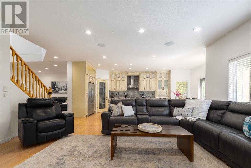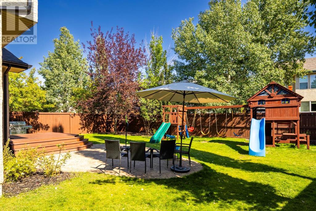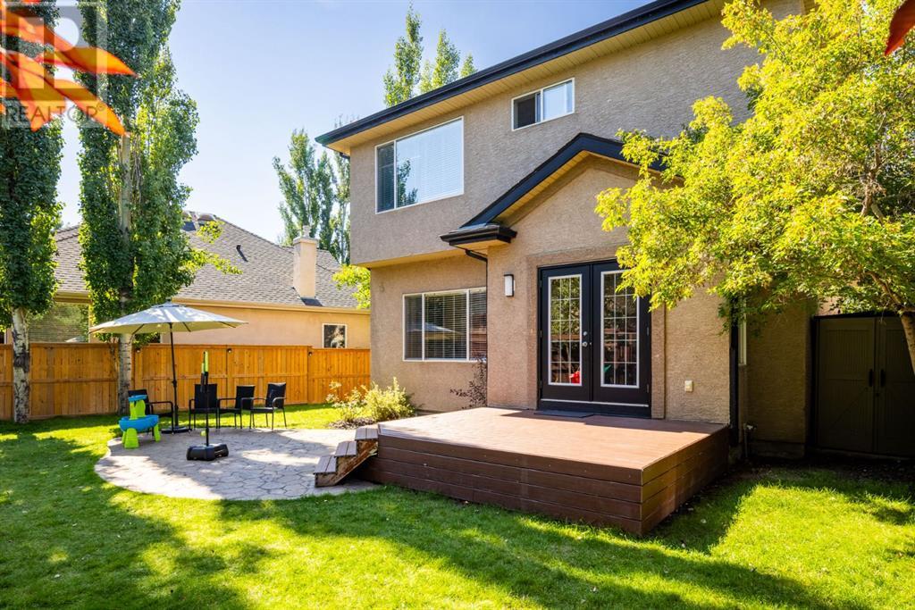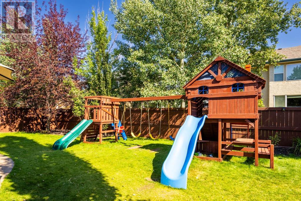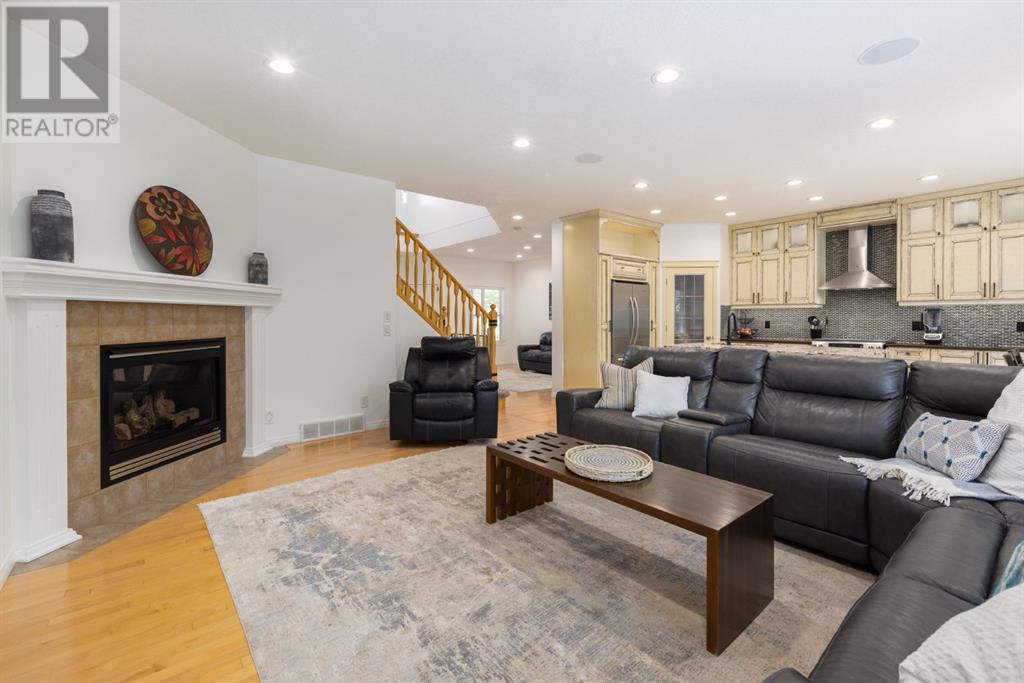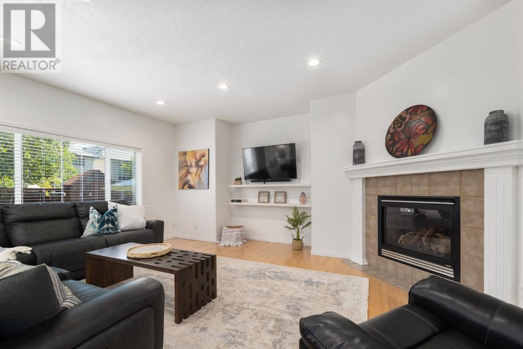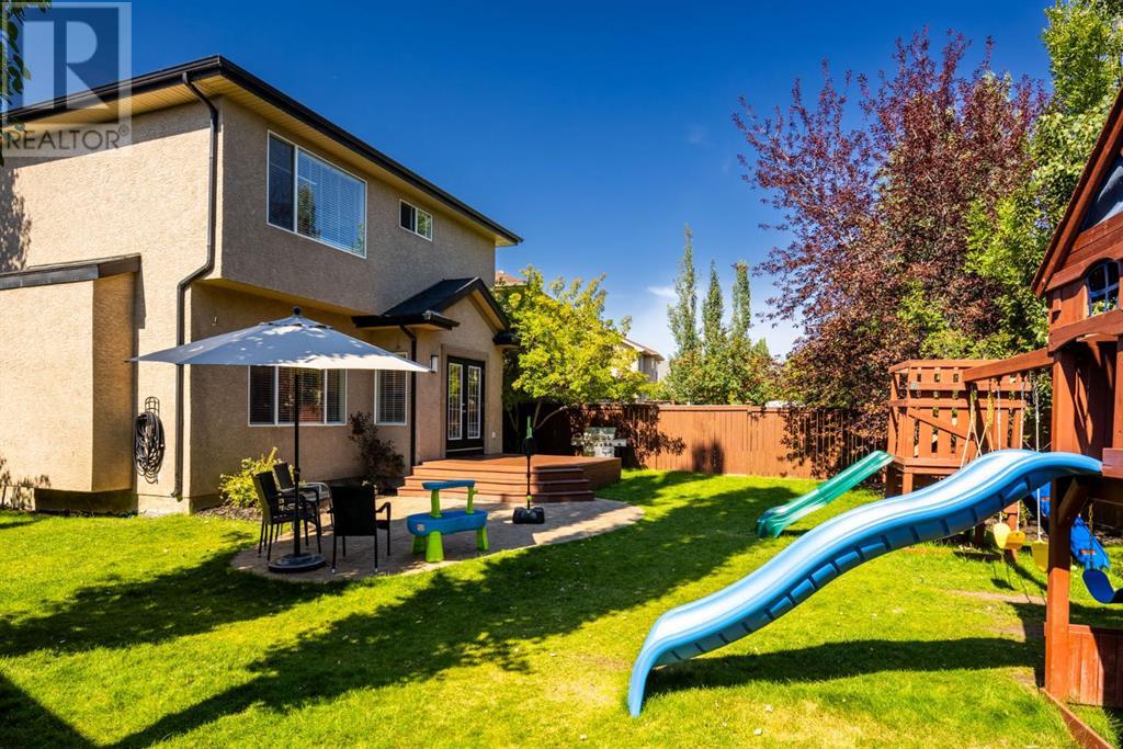 On a quiet, tree lined cul-de-sac near schools and the ravine lies the perfect 6 bedroom, 3 1/2 bathroom family home. Poised on an oversized, pie shaped lot with a large backyard, this Jayman built home is the perfect place to raise a growing family. You’re greeted through the entryway by sky high knockdown ceilings, designer lighting, and a huge renovation including new lighting throughout including 30 new LED pot lights, all new window coverings, new plush carpets throughout, central air conditioning, and much more. The open concept main floor boasts a brand new kitchen with ample cabinetry, designer backsplash, pull out storage, a corner pantry, bar seating, new appliances including a gas range, Quartz countertops, and beautifully upgraded lighting including pot lights, under cabinet lighting, and decorative accent lighting in the top row of cabinets to create the perfect ambience. The kitchen is open to the spacious dining room and is flooded with natural light through large SE windows overlooking the backyard, the perfect place to host dinners with loved ones. The adjacent living room is sized for a large family and is warmed by a cozy gas fireplace with tile surround and a beautiful mantle. On the other end of the main floor, an upgraded mud room is situated off the double garage and boasts new tile, laundry machines, and all new cabinetry. The main floor powder room has also seen recent upgrading including lights and tile. Up the stairs you’ll find a built-in solid wood bookshelf, linen closet, four large bedrooms and two beautifully renovated bathrooms. The luxurious primary retreat overlooks the backyard, features a spacious walk-in closet and has room for king sized furniture. The luxurious ensuite bathroom has been recently renovated to include dual vanities, Quartz countertops, a giant soaker tub, ample storage, all new tile, and a new standup shower. All bedrooms are spacious and feature upgraded shelving in the closets. The 4th bedroom up is surround ed by sunny windows and could easily be re-purposed as a bonus room or play/media room with a walk in closet for storing toys and games. The lower level features a large media room with a wet bar, perfect for movie nights, and two sunny bedrooms, one of which is currently being used as a kids playroom. The large bathroom on the lower level enjoys heated floors and a large vanity with tons of storage. Other bonuses include heated floors in the basement enhancing your comfort year round, central air conditioning, fresh designer paint, and so much more. The stunning backyard has been beautifully landscaped including a large composite deck, stamped concrete patio, fencing, several mature trees, and tons of private space for kids to play. This unbeatable cul-de-sac location is only a few minute walk to two K-9 schools, Craston’s ravine which connects to Calgary’s coveted Bow River Pathway system and Fish Creek Park, playgrounds, groceries, cafes, and many other amenities. (id:22211)