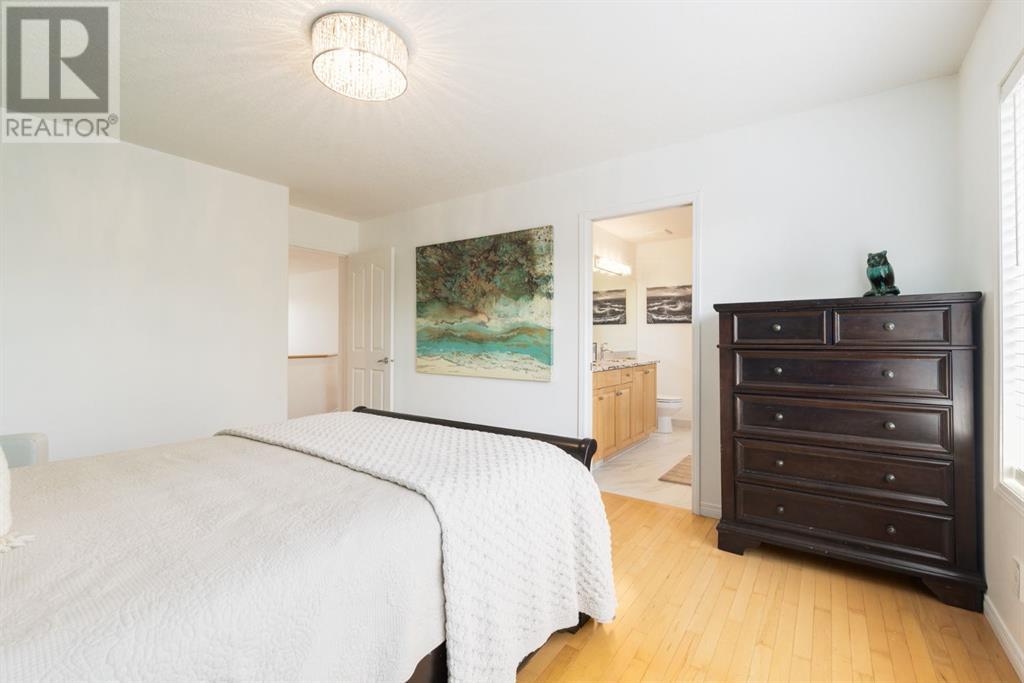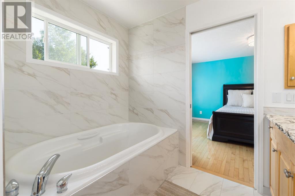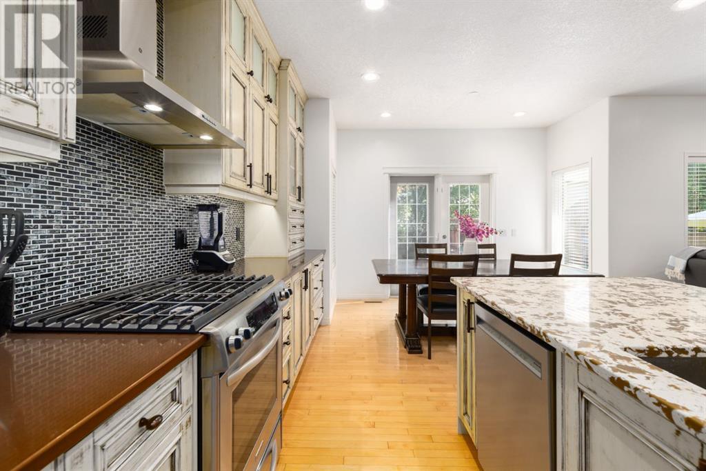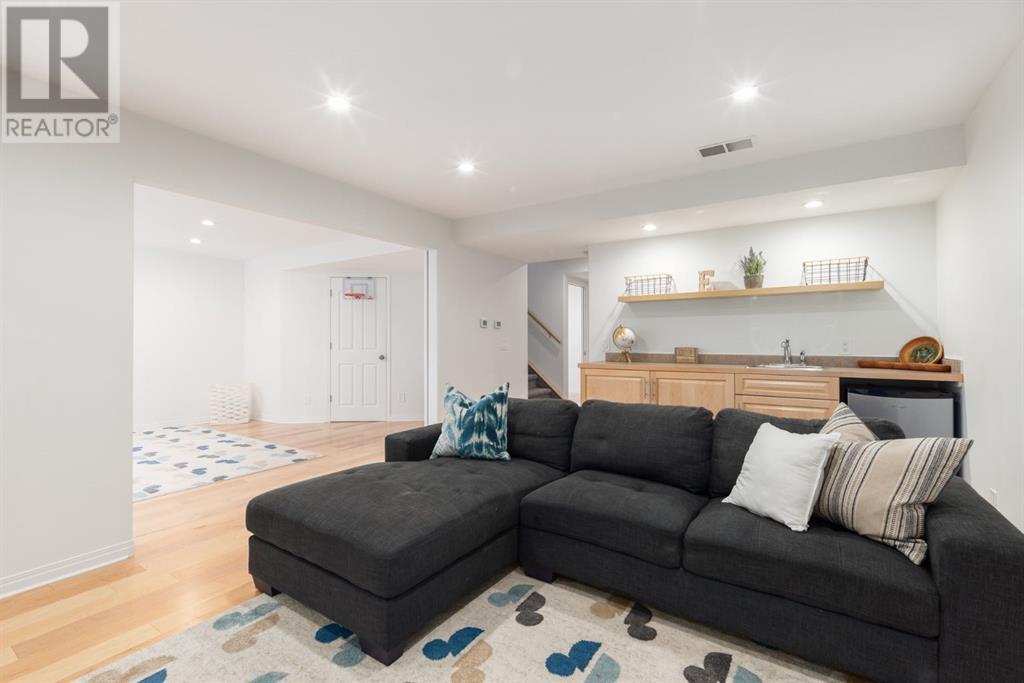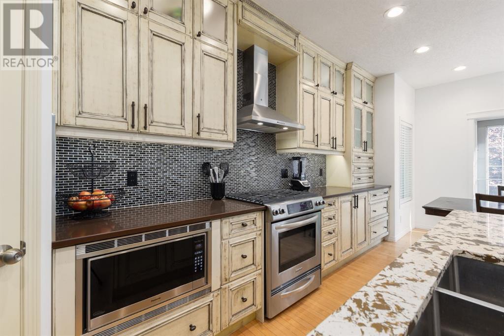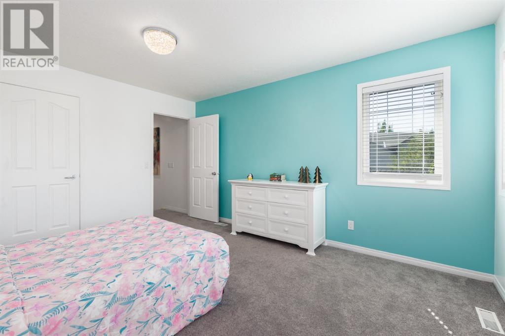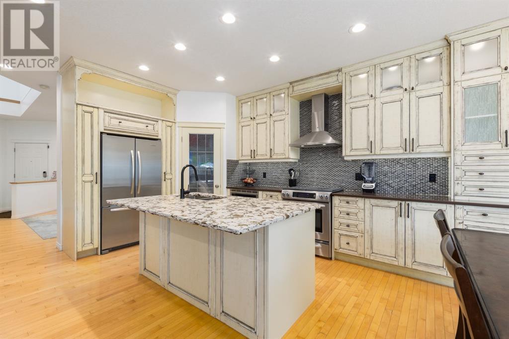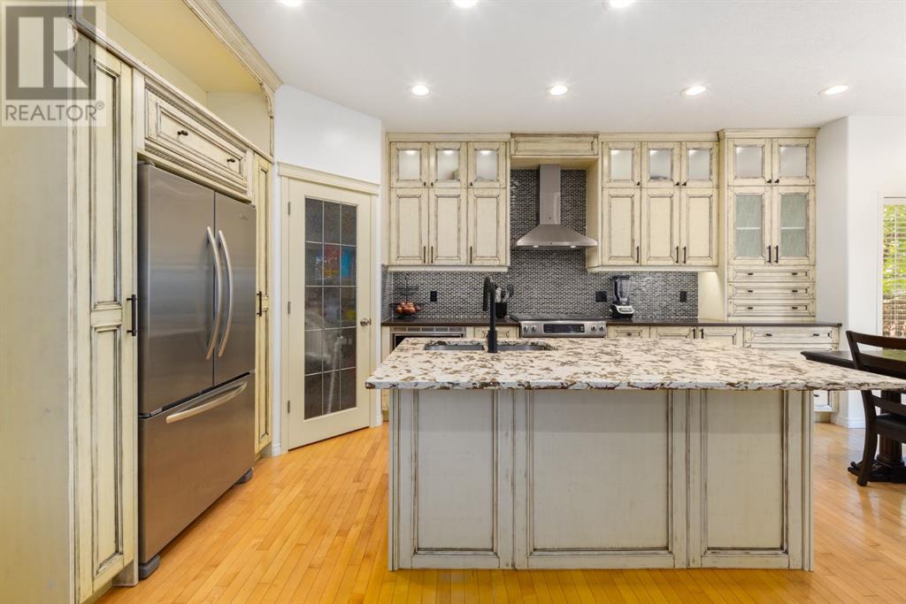 On a quiet, tree lined cul-de-sac near schools and the ravine lies the perfect 6 bedroom, 3 1/2 bathroom family home. Poised on an oversized, pie shaped lot with a large backyard, this Jayman built home is the perfect place to raise a growing family. You’re greeted through the entryway by sky high knockdown ceilings, designer lighting, and a huge renovation including new lighting throughout including 30 new LED pot lights, all new window coverings, new plush carpets throughout, central air conditioning, and much more. The open concept main floor boasts a brand new kitchen with ample cabinetry, designer backsplash, pull out storage, a corner pantry, bar seating, new appliances including a gas range, Quartz countertops, and beautifully upgraded lighting including pot lights, under cabinet lighting, and decorative accent lighting in the top row of cabinets to create the perfect ambience. The kitchen is open to the spacious dining room and is flooded with natural light through large SE windows overlooking the backyard, the perfect place to host dinners with loved ones. The adjacent living room is sized for a large family and is warmed by a cozy gas fireplace with tile surround and a beautiful mantle. On the other end of the main floor, an upgraded mud room is situated off the double garage and boasts new tile, laundry machines, and all new cabinetry. The main floor powder room has also seen recent upgrading including lights and tile. Up the stairs you’ll find a built-in solid wood bookshelf, linen closet, four large bedrooms and two beautifully renovated bathrooms. The luxurious primary retreat overlooks the backyard, features a spacious walk-in closet and has room for king sized furniture. The luxurious ensuite bathroom has been recently renovated to include dual vanities, Quartz countertops, a giant soaker tub, ample storage, all new tile, and a new standup shower. All bedrooms are spacious and feature upgraded shelving in the closets. The 4th bedroom up is surround ed by sunny windows and could easily be re-purposed as a bonus room or play/media room with a walk in closet for storing toys and games. The lower level features a large media room with a wet bar, perfect for movie nights, and two sunny bedrooms, one of which is currently being used as a kids playroom. The large bathroom on the lower level enjoys heated floors and a large vanity with tons of storage. Other bonuses include heated floors in the basement enhancing your comfort year round, central air conditioning, fresh designer paint, and so much more. The stunning backyard has been beautifully landscaped including a large composite deck, stamped concrete patio, fencing, several mature trees, and tons of private space for kids to play. This unbeatable cul-de-sac location is only a few minute walk to two K-9 schools, Craston’s ravine which connects to Calgary’s coveted Bow River Pathway system and Fish Creek Park, playgrounds, groceries, cafes, and many other amenities. (id:22211)