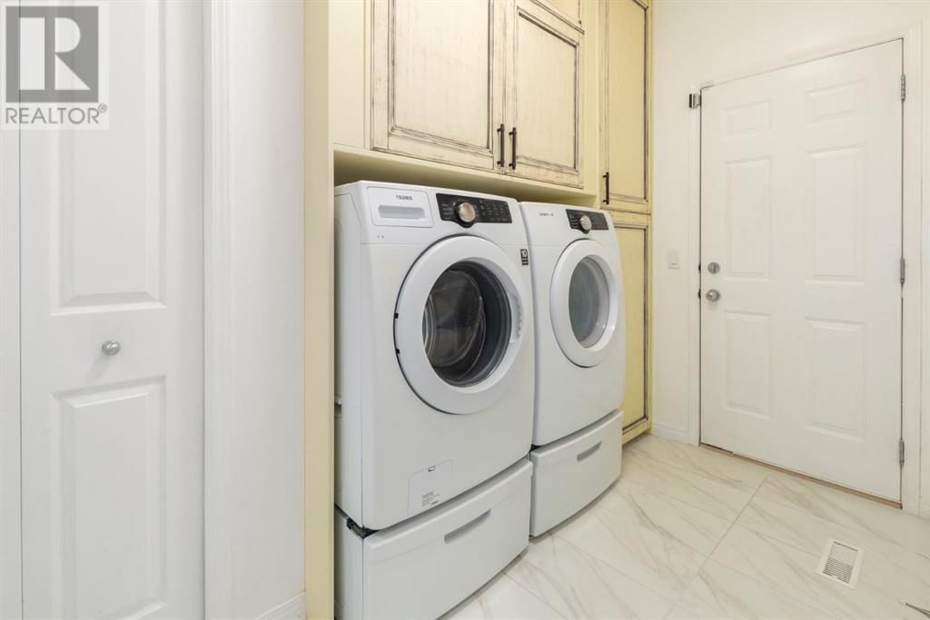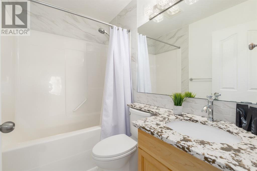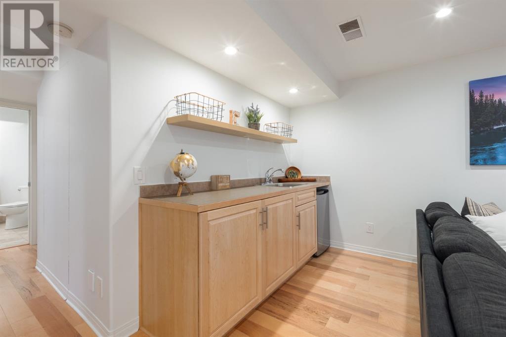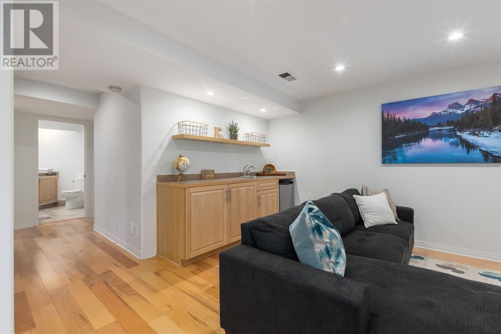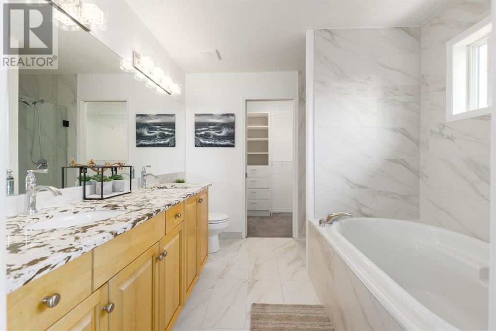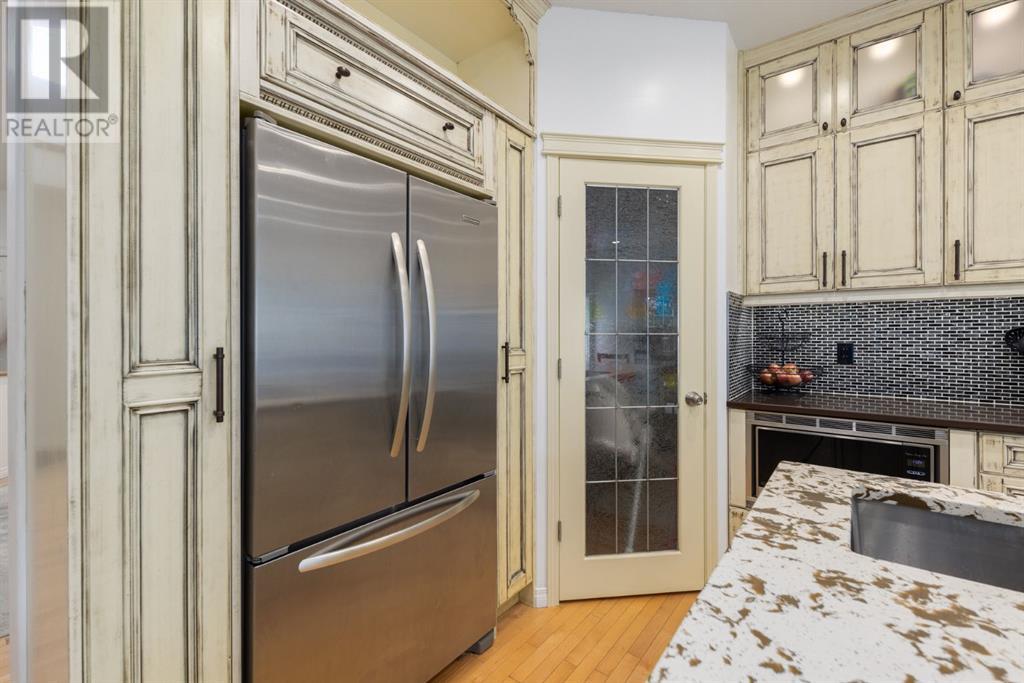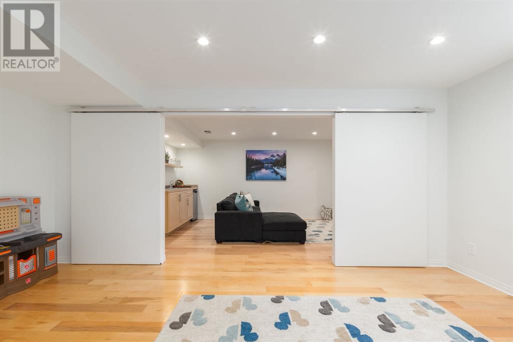 On a quiet, tree lined cul-de-sac near schools and the ravine lies the perfect 6 bedroom, 3 1/2 bathroom family home. Poised on an oversized, pie shaped lot with a large backyard, this Jayman built home is the perfect place to raise a growing family. You’re greeted through the entryway by sky high knockdown ceilings, designer lighting, and a huge renovation including new lighting throughout including 30 new LED pot lights, all new window coverings, new plush carpets throughout, central air conditioning, and much more. The open concept main floor boasts a brand new kitchen with ample cabinetry, designer backsplash, pull out storage, a corner pantry, bar seating, new appliances including a gas range, Quartz countertops, and beautifully upgraded lighting including pot lights, under cabinet lighting, and decorative accent lighting in the top row of cabinets to create the perfect ambience. The kitchen is open to the spacious dining room and is flooded with natural light through large SE windows overlooking the backyard, the perfect place to host dinners with loved ones. The adjacent living room is sized for a large family and is warmed by a cozy gas fireplace with tile surround and a beautiful mantle. On the other end of the main floor, an upgraded mud room is situated off the double garage and boasts new tile, laundry machines, and all new cabinetry. The main floor powder room has also seen recent upgrading including lights and tile. Up the stairs you’ll find a built-in solid wood bookshelf, linen closet, four large bedrooms and two beautifully renovated bathrooms. The luxurious primary retreat overlooks the backyard, features a spacious walk-in closet and has room for king sized furniture. The luxurious ensuite bathroom has been recently renovated to include dual vanities, Quartz countertops, a giant soaker tub, ample storage, all new tile, and a new standup shower. All bedrooms are spacious and feature upgraded shelving in the closets. The 4th bedroom up is surround ed by sunny windows and could easily be re-purposed as a bonus room or play/media room with a walk in closet for storing toys and games. The lower level features a large media room with a wet bar, perfect for movie nights, and two sunny bedrooms, one of which is currently being used as a kids playroom. The large bathroom on the lower level enjoys heated floors and a large vanity with tons of storage. Other bonuses include heated floors in the basement enhancing your comfort year round, central air conditioning, fresh designer paint, and so much more. The stunning backyard has been beautifully landscaped including a large composite deck, stamped concrete patio, fencing, several mature trees, and tons of private space for kids to play. This unbeatable cul-de-sac location is only a few minute walk to two K-9 schools, Craston’s ravine which connects to Calgary’s coveted Bow River Pathway system and Fish Creek Park, playgrounds, groceries, cafes, and many other amenities. (id:22211)