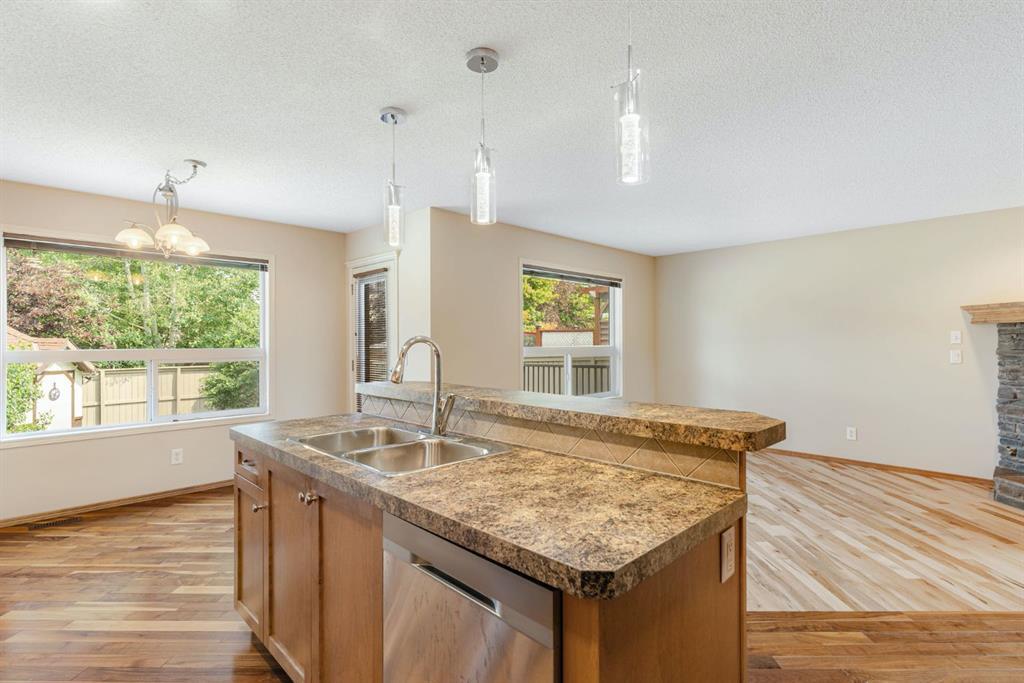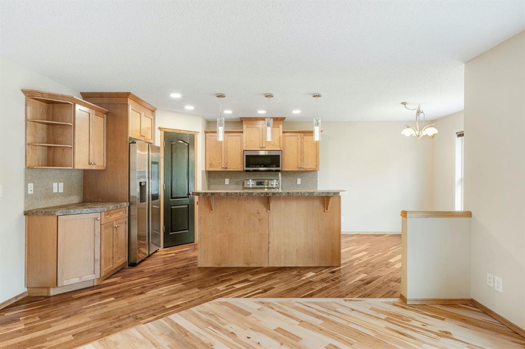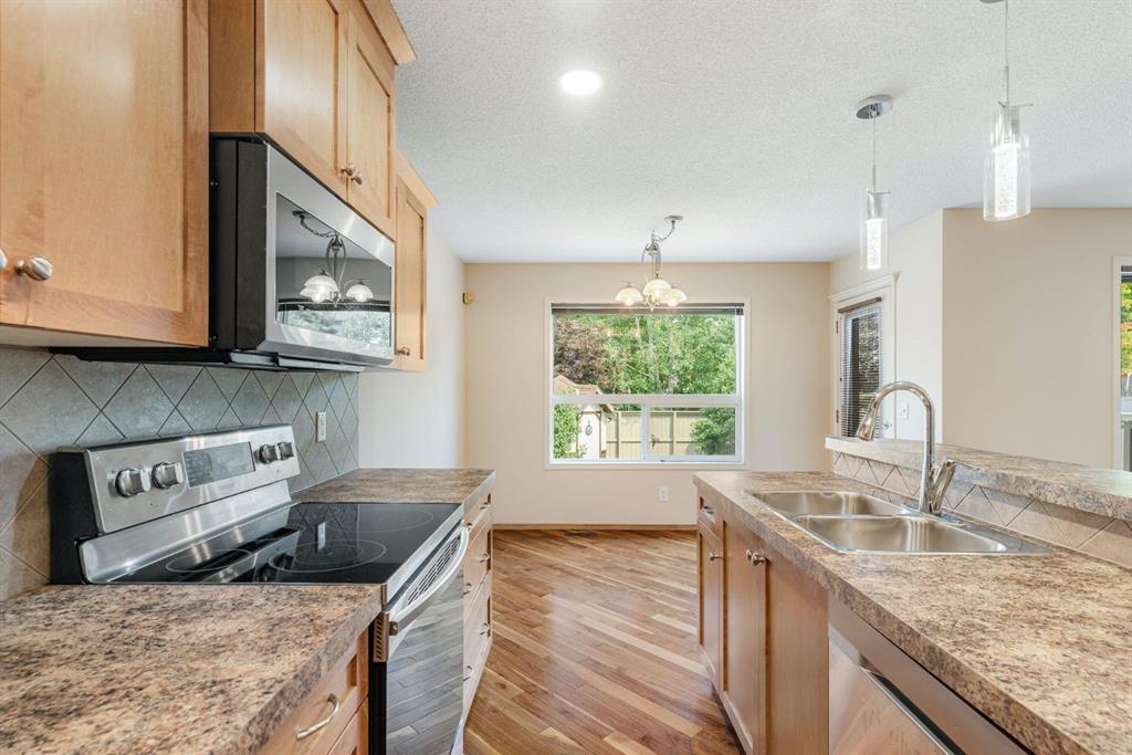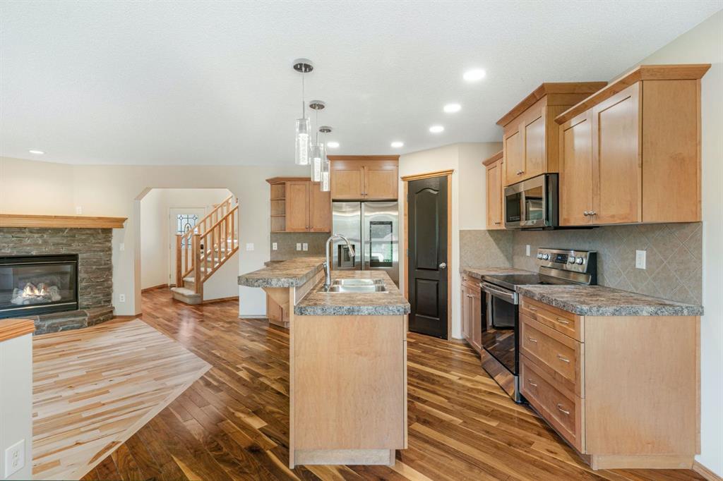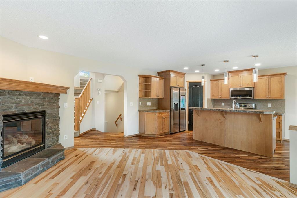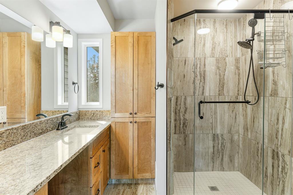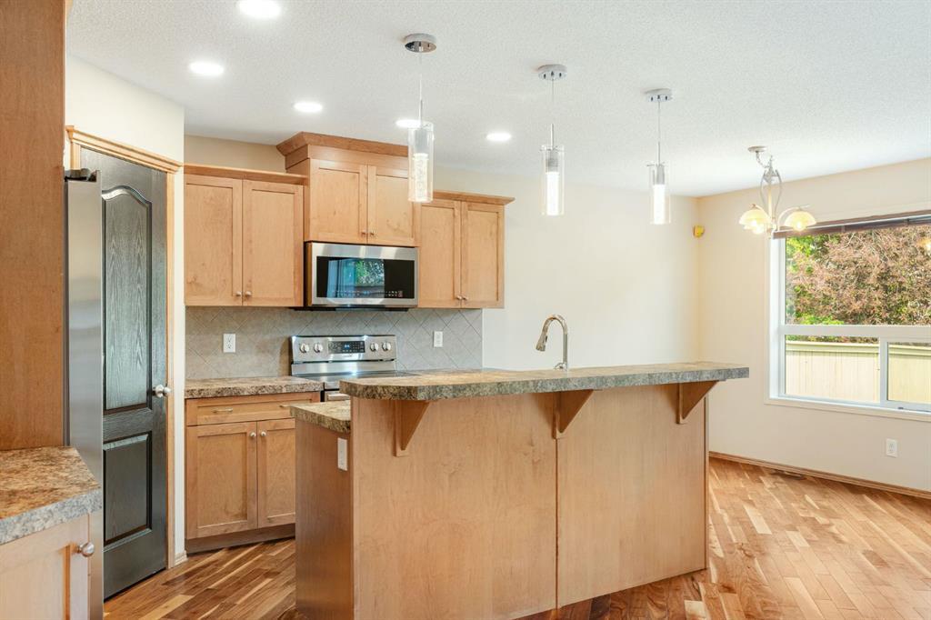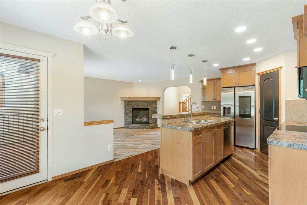 OPEN HOUSE SUNDAY JULY 16 12-2PM!!! BACK ON MARKET!! This 3 bed 3 bath home in Cranston is centrally located next to schools, playgrounds, fields, restaurants, grocery stores and just a short drive to the community centre and Fish Creek Park! From the exterior you'll notice the extra WIDE driveway (extended 8 ft) and freshly painted trim with your attached, insulated, painted, two car garage and newer roof (2018). Inside you'll be met with AIR CONDITIONING, hardwood floors, and an open concept main floor. The kitchen is equipped with high end stainless steel appliances, a pantry, raised bar top counter that opens into your living room with a gas fireplace. The dining room is conveniently located next to your kitchen and allows for direct access to your newer, large deck, stained fence, hot tub pad and shed. The main floor is complete with direct access to your two car garage, main floor laundry and a half piece bathroom. Heading upstairs you'll be impressed with the wall to wall windows in your large, south facing bonus room. The master bedroom is spacious for a king bed and has recently had the en suite updated (2021) with granite countertops, dual vanity and a new shower and toilet! The walk in closet completes the master retreat. There are two other bedrooms completing the upper level as well as a 4 piece bathroom. The basement is perfect for entertaining all ages with a wet bar, dishwasher, pool table and extra space for seating. The basement also has a good amount of storage! Cranston is a wonderful community that borders Fish Creek park and has easy access to major roadways while being a quiet, safe place to call home! (id:22211)