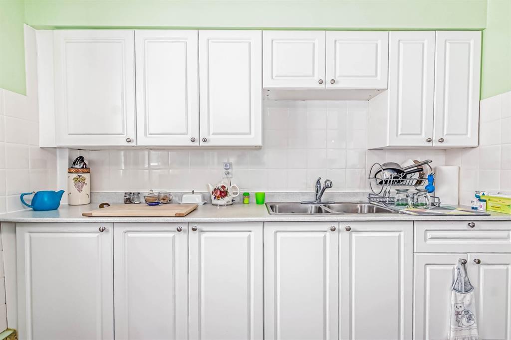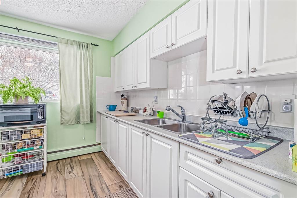 THIS IS IT — for this price and this close in neighbourhood of Glenbrook!! Lots of value in this open, beautiful unit that has been upgraded and lovingly maintained. Kitchen, bathroom, appliances, have been upgraded by this owner. This unit has been carefully lived in and upgraded by a single occupant for many years. Every room is spacious and lots of sunlight streaming in. The kitchen has sufficient cabinets and still room for a breakfast table. Off the kitchen is a formal dining room and a cosy living room. The bedroom also has room for a big bed, dresser and the double closet. Storage space is in the suite and the laundry area is a step away from the unit. Step out in to the hall for access to an enclosed, detached single garage parking with room for even more storage. Walk to bus and lots of shopping in all directions. This unit is below partially grade. (id:22211)