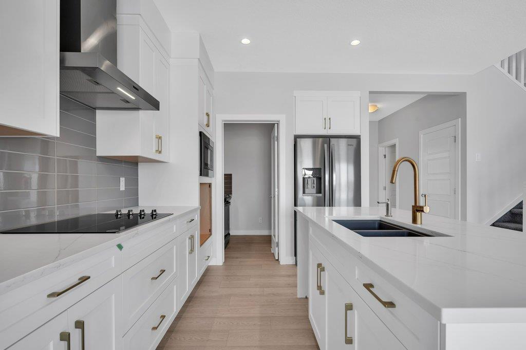 Welcome to this BRAND NEW HOUSE features ILLEGAL SUITE comes WITH WALKOUT BASEMENT BACKING ON TO POND. That Features: Main floor bedroom with full bathroom, SPICE Kitchen, Upstairs 4 Bedrooms with 2 Primary Bedrooms, Illegal Basement suite, Bonus area, and with a total of 3150 sqft area living area. This beautiful home is nestled in the community of CORNERBROOK featuring comprising five bedrooms including two primary suites and four full washrooms. The house comes equipped with quartz countertops, floor to roof tiles, luxury vinyl flooring and plush soft floor carpet along with a main floor bedroom washroom, spice kitchen, extended cabinets and exquisite lighting throughout the house. The house is perfect for multigenerational families and boasts almost 2338 square feet of living space giving you and your loved ones plenty of living room.. As you enter the house you are welcomed by a huge foyer and cabinets on the side. The main floor comes with a full bedroom, washroom, elegantly designed kitchen, a spice kitchen and huge island giving you and your family plenty of space for all your cooking needs. It also comes with a huge living area, separate space for dining and a Huge DECK. Upstairs you will get four bedrooms including two primary suites with ensuite upstairs and two more decently sized bedrooms with another full washroom and a laundry room. All the bedrooms have ample windows enabling free flowing natural light throughout the house. There is a huge bonus room upstairs ideal for you and your family to spend some quality time there. ***WALKOUT basement has an Illegal suite comes up with 2 bedrooms, a large living area, kitchen and a full bathroom. There is a lot more to mention as this beautiful home is your threshold to the ultimate lifestyle with a practical layout that fulfills all your wants and dreams with a close proximity to all the amenities. To truly do this home Justice, kindly arrange your private viewing today! You will be glad you did!!! (id:22211)