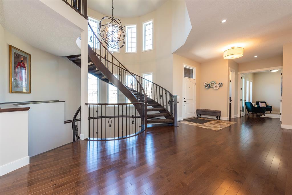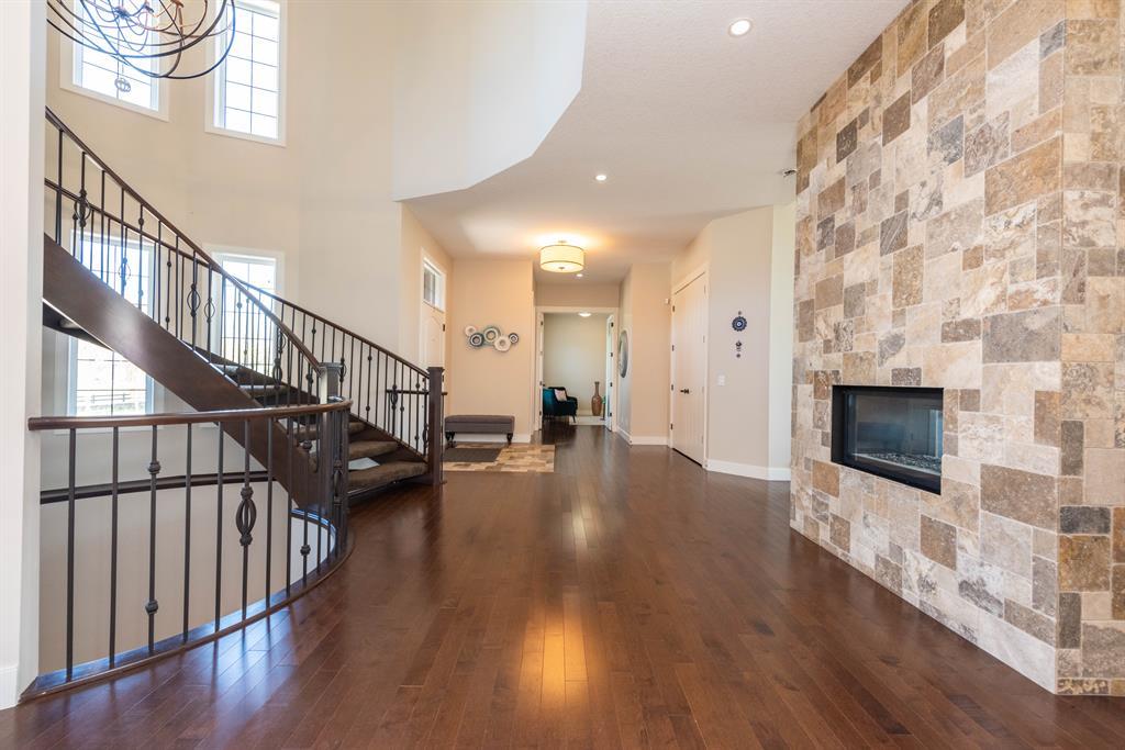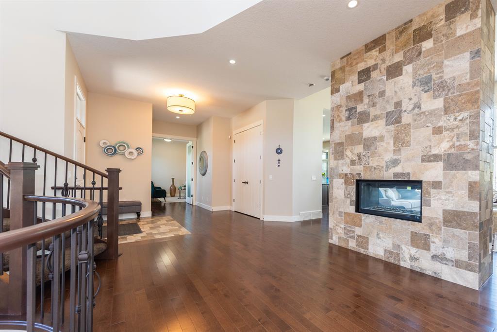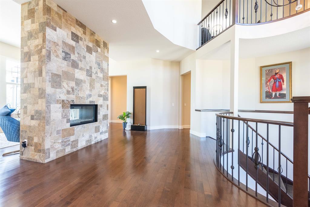 Former Award winning Executive style home, outside and inside is warm and inviting, Starting with the impressive driveway leading up to the three car garage and into this beautiful home. Spacious foyer has a two-way fireplace and is perfect for welcoming family and friends. The main floor has high ceilings and a stunning fish-eye staircase extending to all three levels. Also on the main floor is a Spacious Living room, Primary bedroom suite, Large office, dining room and a gourmet kitchen with a large island. The upper level has a bedroom, full bathroom and a loft area ideal for a library/reading area. The lower level with 9 feet ceilings, is also very spacious with two more bedrooms, bar area, 3 piece bathroom and very large rec room. There are two furnaces to allow for zoned heating control. The recently added sunroom allows you to enjoy the beautiful and huge back yard that backs on to green space. This home is a must see to appreciate all that it offers. (id:22211)