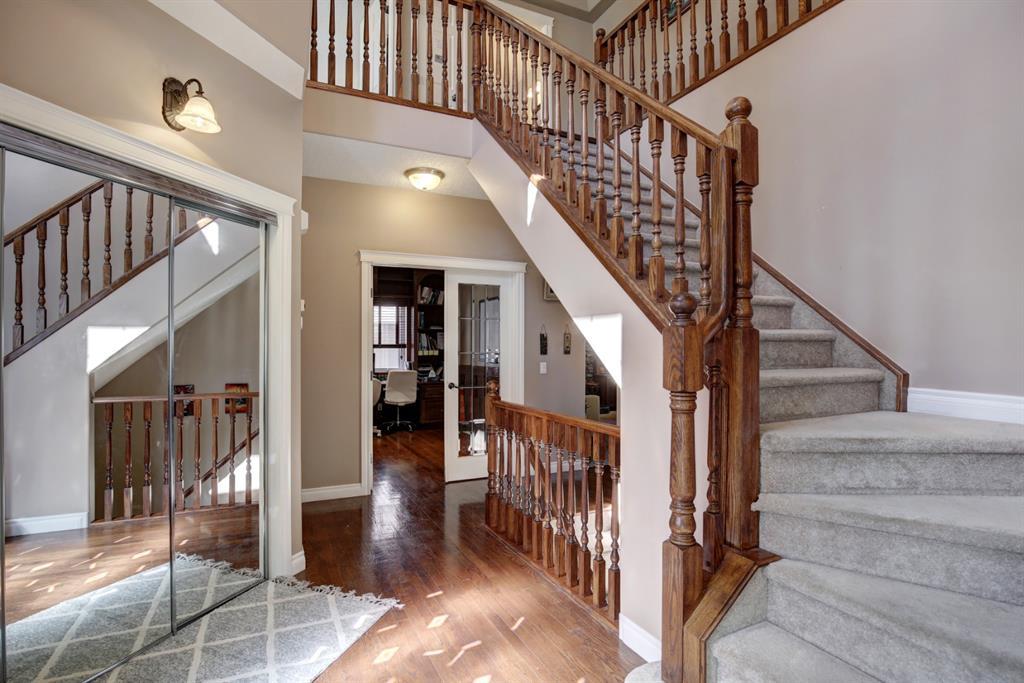 Welcome to this beautiful home in the heart of Signal Hill! Truly an amazing family home in an exceptional location. The main floor offers living room, formal dining, family room with a cozy F/P, laundry, office, powder room and breakfast nook. Find the heart of the home in the entertainers kitchen featuring stainless steel appliances and custom pantry. Gather around the large island or head outside to the backyard oasis. The backyard features a large deck with hot tub, mature trees and a garden shed. Head upstairs to the colossal master retreat including raised sitting room, walk in closet and lavish ensuite. This space is completed with 3 more good sized bedrooms and bathroom. The second floor has BRAND NEW HARDWOOD flooring throughout. The basement is finished with ONE bedrooms, a 4 piece bathroom, dry bar and game ready lounge with built-in speakers and gas F/P. The lower living space is perfect for older kids, in-laws or a live-in nanny. There are great schools in the area, Sirrocco LRT, close to the shops at West Market Square, Aspen Landing, West side Rec Center, Aspen Landing, one hour to the mountains and a short drive to downtown. (id:22211)