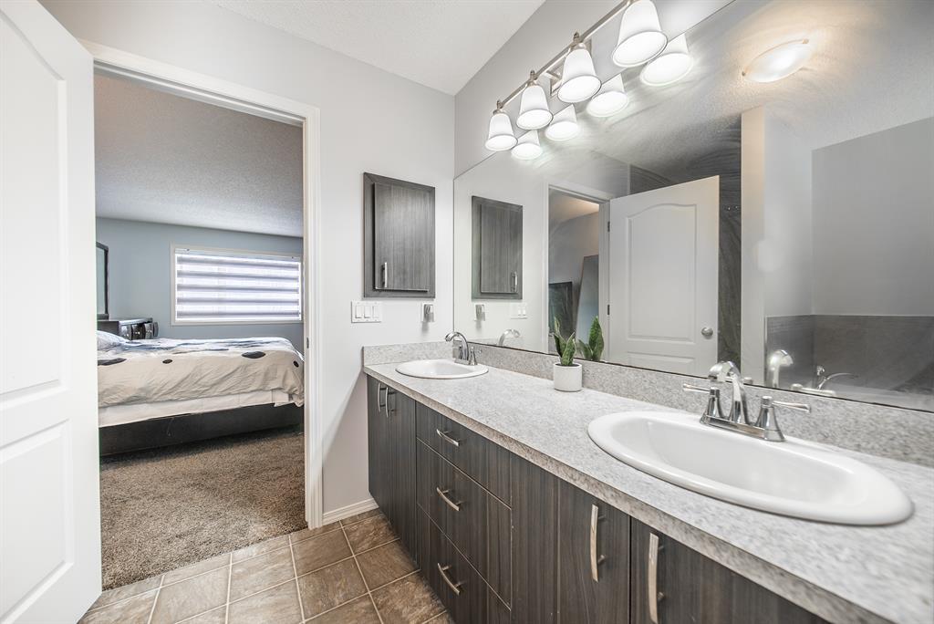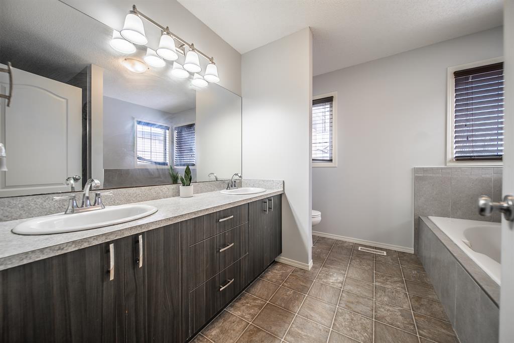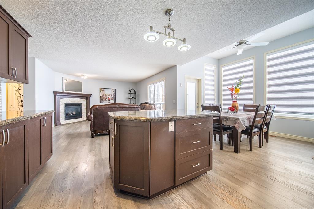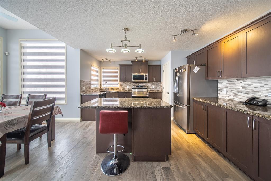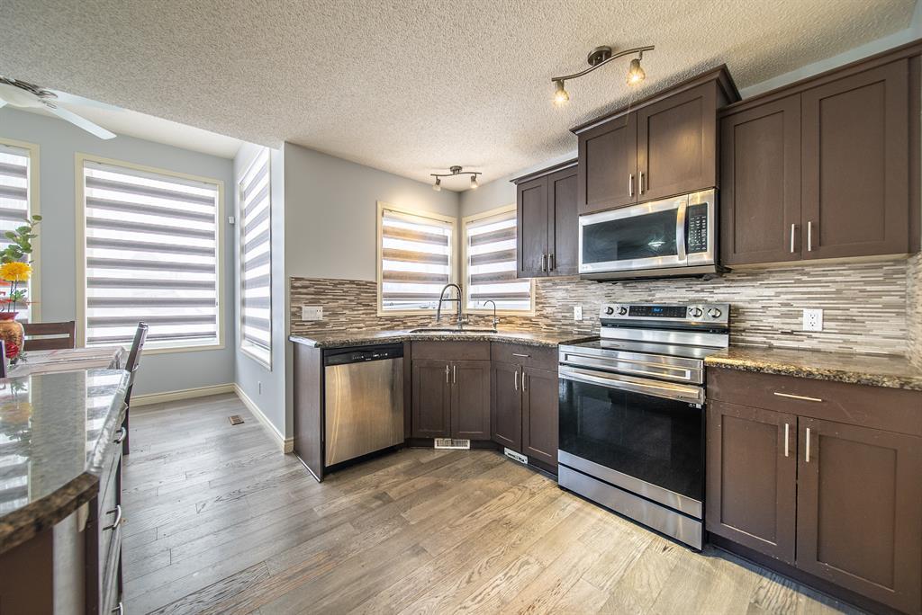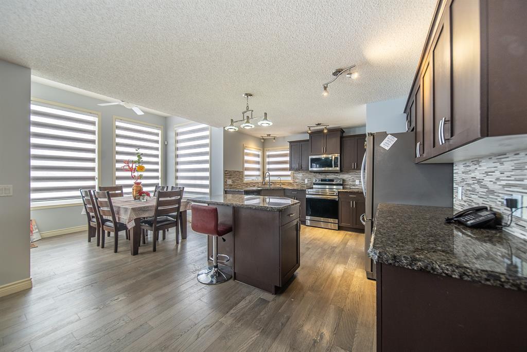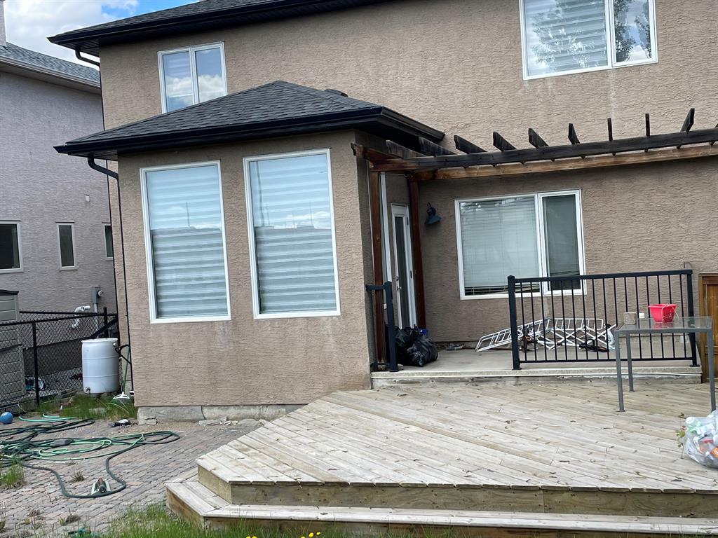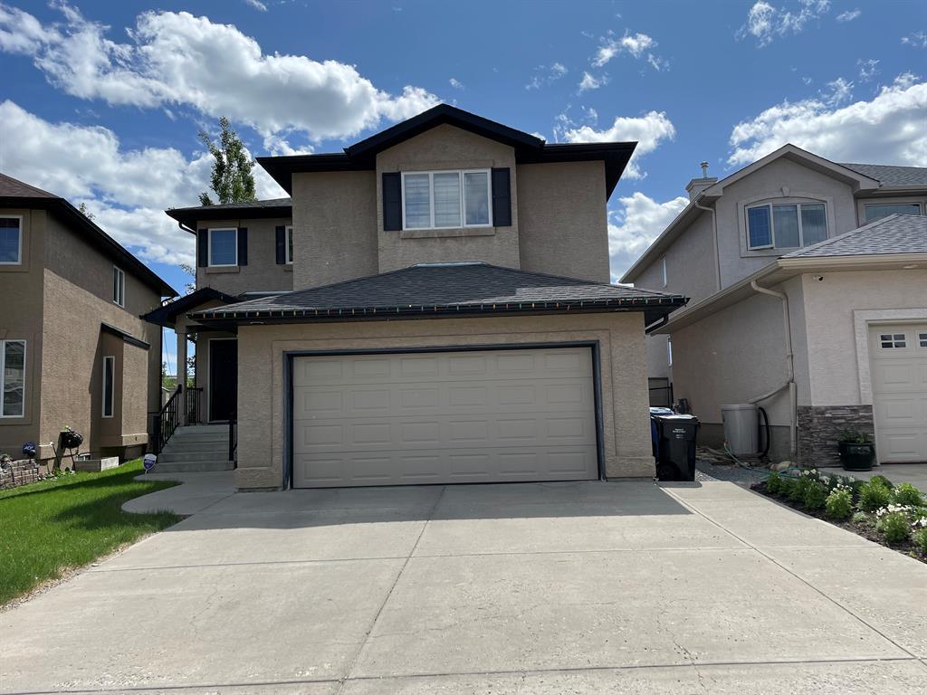 Back on market due to financing. If you've been looking for a 5-bedroom home in an established estate area, look no further! Located in the lovely Evercreek Bluffs area, this home offers over 2700 square feet of air conditioned living space. The main floor features a grand foyer, a large bright kitchen with an island, granite countertops and stainless steel appliances, a delightful dining area with 10-foot ceilings and fantastic windows, a custom-built mudroom the kids will love, half bath and living room with corner fireplace. Upstairs, you'll find a large master bedroom with a 5 piece ensuite including a jetted tub and stand-alone shower. Along with 2 other bedrooms, there is a 4th bedroom that could be used as a bonus room, home gym or office. The lower level has a huge family room with fireplace, a 5th bedroom, storage area, and 3 piece bath with steam shower. The large, sunny sotuhwest backyard provides a 2 tiered deck, brick patio and kids playhouse. (id:22211)