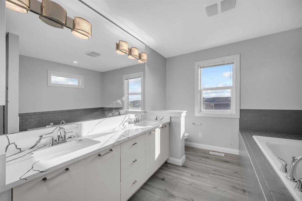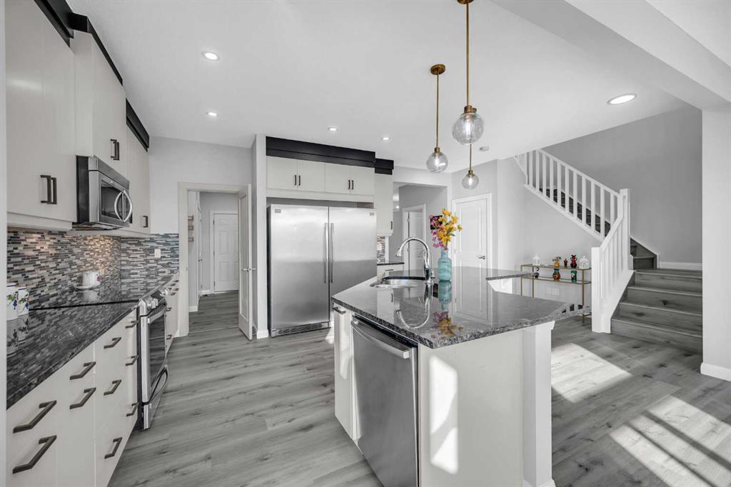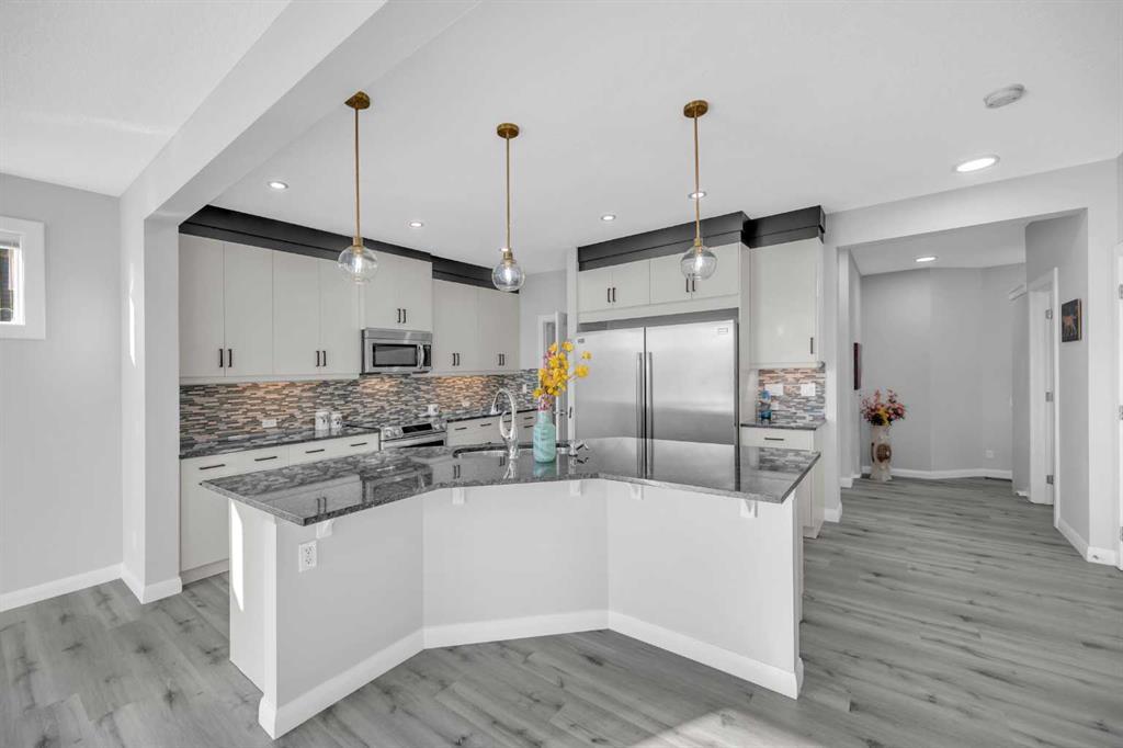 Welcome to this beautiful Community of Redstone. This 4 BEDROOMS + BONUS ROOM home is fully renovated which includes fresh paint, NEW FLOORING (Carpet free across the house, has new siding, roof, and fence, is in a cul-de-sac, and has one of the LARGEST YARD in the REDSTONE! As you enter the home you will notice the spacious and bright open concept. It has a large kitchen with plenty of cupboards and countertops, stainless steel appliances, a large island, and a walk-thru pantry. The living room is bright and has a lovely fireplace to cozy up to while reading your favorite books. The dining area is bright and has a sliding door to access your deck for those summer BBQs. A powder room and laundry room finish your main floor. Upstairs you have a large bonus room and 4 large bedrooms. The Ensuite has his and her sinks, a stand-up shower, and a soaker tub. The kid's bathroom was specially designed to allow for two sinks and plenty of storage space for each child to store their personal items. The basement is large and ready for your design. It is roughed in for future development. There is a separate entrance to access the basement. It has three large windows, and you will immediately notice how bright it feels. A tankless on-demand hot water system will save you on your utility bill, what’s not to like? You will have plenty of parking with this double garage and good size driveway. Saving the best for last, you will absolutely fall in love with this huge yard! There is plenty of space for the kids to run around and play, you can design a lovely garden and grow your favorite fruits and vegetables and still have plenty of room to store your RV. You must view this home to truly appreciate it! Book your showing now before it’s gone! (id:22211)