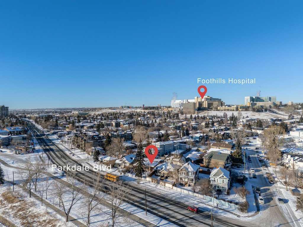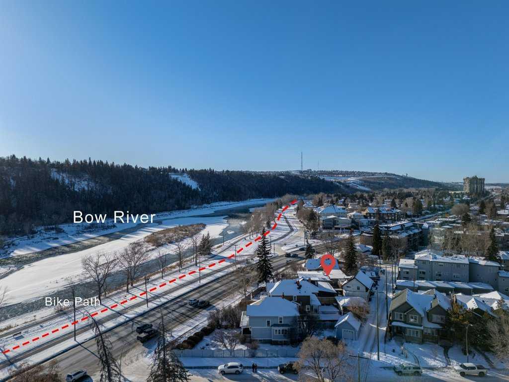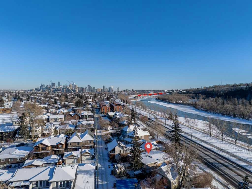 This charming property is nestled in the prestigious Parkdale community. You'll appreciate the spacious living room, featuring a stunning open-beam vaulted ceiling and Oak hardwood floors. The home offers 3 bedrooms, 2 full bathrooms, and a bright kitchen and bathroom, both with skylights a fully finished basement and numerous updates over the years. Key upgrades include a new electrical panel (2017), a high-efficiency furnace (2017), and a torch-on roof (2014). Located directly across from the Bow River and its scenic pathways, this home sits on a higher bank, well outside the flood zone, and is just minutes from downtown, the Foothills and Children’s Hospitals, Market Mall, recreational areas, and a quick route to the mountains.