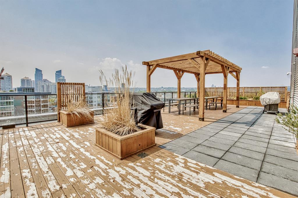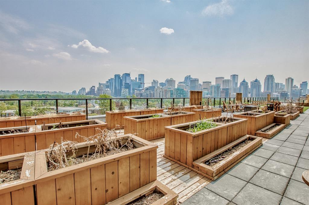 Luxury corner unit condo in the heart of Kensington! The Annex offers a lifestyle of convenience in Calgary's top rated community. This 2 bedroom, 2 bathroom has loads of natural light, a stylish kitchen with quartz countertops, stainless steel appliances & tiled backsplash. Primary bedroom has a walk-in walk-through closet that opens to the master ensuite bath with glass shower, the large west facing balcony comes with a natural gas bbq hook up, This condo is proudly Alberta's 1st LEED v4 Gold Multifamily Midrise. LEED v4 is the latest framework and standard for the next generation of environmentally friendly structures and green buildings, highest standard of comfort with inclusive features like in-suite and on-demand heating and cooling controls, and individual Heat Recovery Ventilation (HRV) for superior indoor air quality. Relax on the outdoor rooftop patio while you enjoy Calgary's best city skyline view which also features a dog run, patio furniture, raised garden beds, gas fire pit & 2 bbq's for entertaining all your friends. This prime location neighbourhood has transit, grocery store, access to parks and river paths, restaurants, coffee houses, and boutiques and is just a short walk to the downtown core. (id:22211)