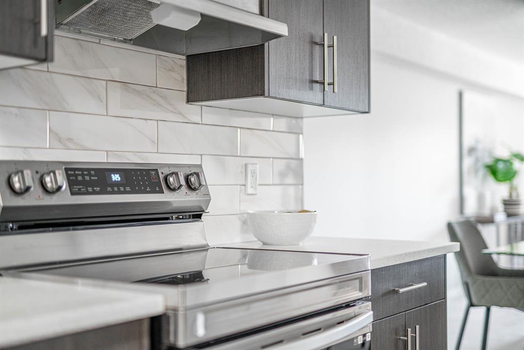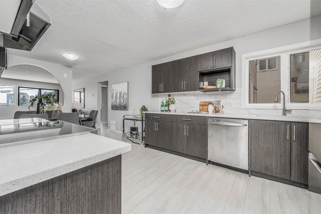 Fully renovated 2 bedroom 2 full bathroom unit with exceptional downtown views! With over 1300 sq feet this unit is the largest on the market at this price point. Updated from top to bottom with a modern colour palette makes it immediately feel like home. The kitchen features all new stainless steel appliances, stone countertops and designer tile backsplash. A unique passthrough partition creates separation between the kitchen/dining area to the living room. The spacious living room provides lots of opportunity for furniture placement to capture the bright South facing downtown views and the new modern fireplace. The primary bedroom is spacious allowing for a king sized bedroom set and also room for an additional sitting area or a desk. Ensuite bathroom has also been updated and offers lots of storage and counterspace. Second bedroom is also an exceptional size with large closet. In suite laundry room comes with ample storage, a true rarity in the condo market. The Brisbios is situated on a quiet cul-de-sac and offers secure building entry and underground parking. Condo fees include all your utilities except for electricity. Centrally located in Crescent Heights close to walking paths, Bridgeland and downtown. Don't miss your opportunity to own this one of a kind unit! (id:22211)