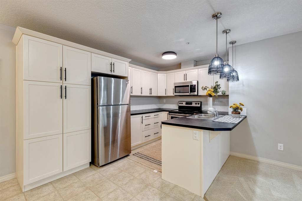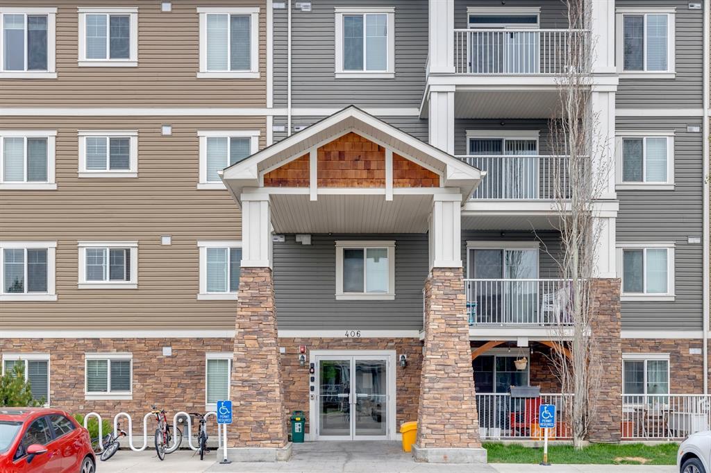 **BACK ON MARKET DUE TO FINANCING** 2 BEDROOMS | 2 BATHROOMS | PET-FRIENDLY BUILDING | STAINLESS STEEL APPLIANCES | AIR CONDITIONING | ATTENTION INVESTORS, DOWNSIZERS AND FIRST TIME HOME BUYERS | CONDO FEES INCLUDE HEAT, GAS AND WATER! | Welcome to Cranston Place where this bright & open 2 Bedroom & 2 Bathroom condo wows in one of the best family neighbourhoods in SE Calgary, Cranston, that boasts giving you so much more than many other condos have to offer- pets via board approval, in-suite laundry, and blocks to amenities, restaurants & shopping! This “like” new OPEN floor plan with a bedroom and bathroom on each side of the unit, separated by a well-sized living room features stainless steel appliances, a bright & modern kitchen, sophisticated dining area, appointed living room with sliding glass doors leading to the sunny balcony, two well-sized bedrooms, plus in-suite laundry. The spacious primary bathroom offers a walk-in closet and 4 piece ensuite with a large shower. The second bedroom on the other side of the unit is next to the 4 piece main bathroom with a soaker tub/shower. Don’t miss the ensuite laundry with ample storage. Also, don’t forget the underground titled parking spot! Being close to main routes such as Deerfoot Trail & Stoney Trail give residents of Cranston very quick access to the rest of city centres. Recreational, professional & essential amenities are found throughout Cranston & immediately surrounding communities, meaning you don’t need to travel far for the things you need. Don’t miss this sought condo in the sought after community of Cranston! (id:22211)