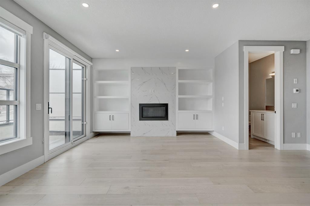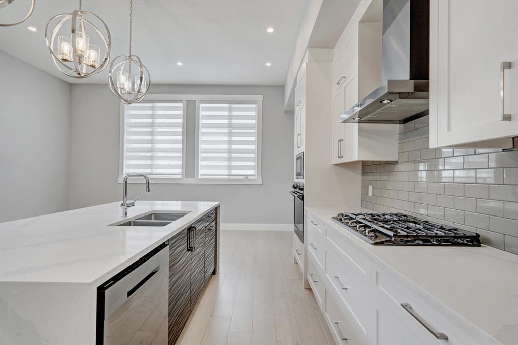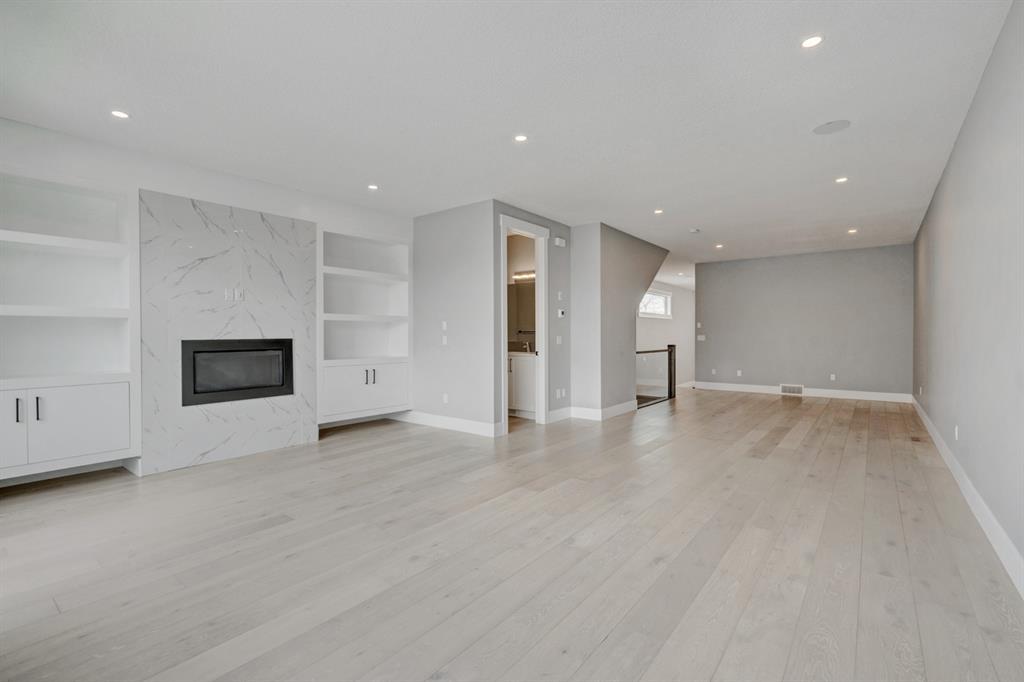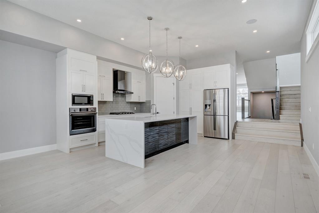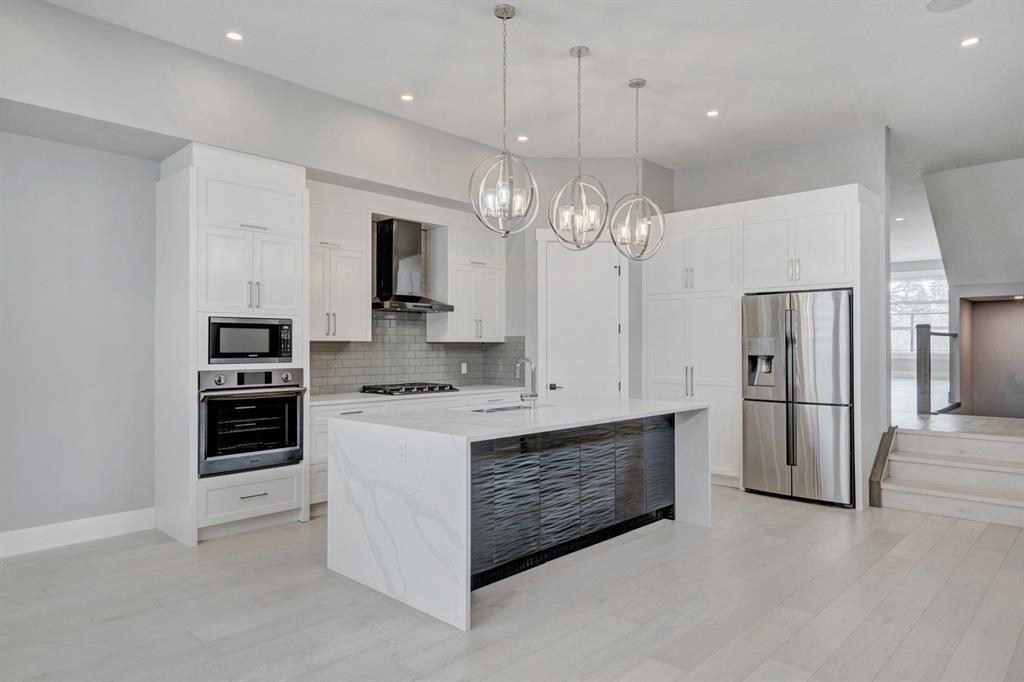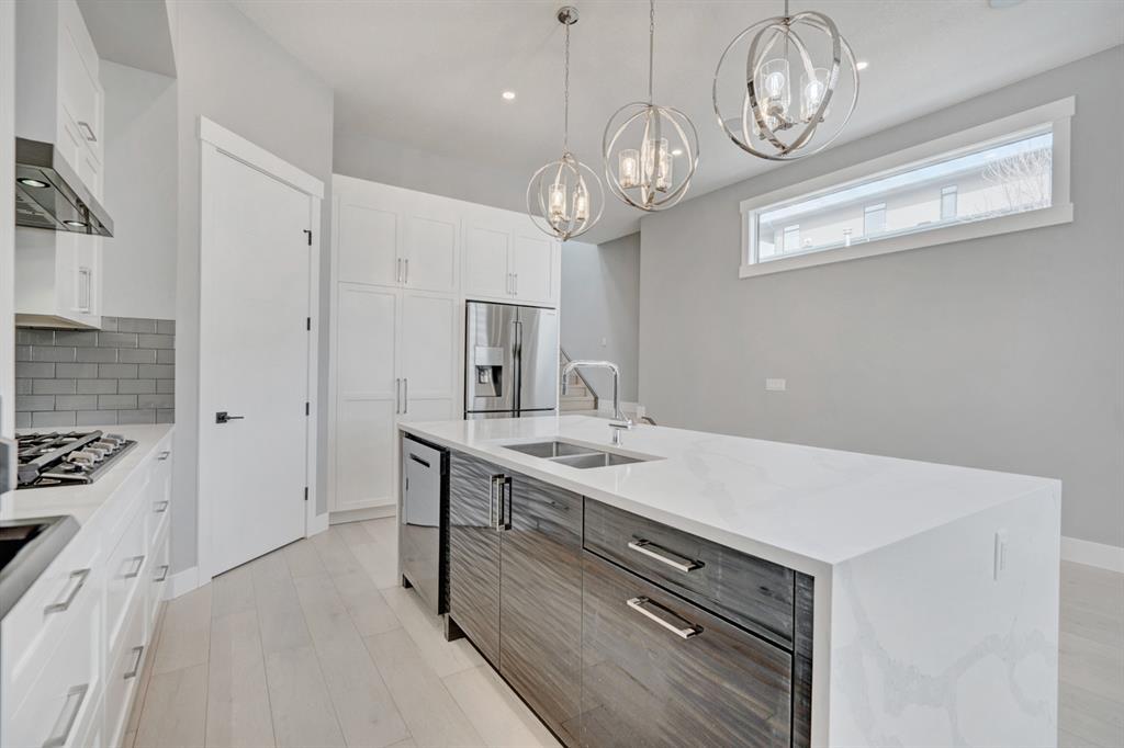 Indulge in a luxurious lifestyle with this stunning contemporary home in the highly sought-after neighborhood of Stanley Park. This impressive house is conveniently located just a stone's throw away from the parks, Elbow River, and MacLeod Trail. A timeless brick veneer provides a welcoming ambiance to this modern living space. Step inside to a bright, spacious entryway complete with a convenient bench and shoe rack. The living room offers breathtaking natural light through its Lux triple-glazed windows and features high ceilings and extensive built-ins on both sides of a quartz surround fireplace, perfect for cozy family gatherings. The sunken kitchen boasts an island waterfall-style quartz counter top and top-of-the-line Chef Collection stainless steel appliances, perfect for hosting parties or cooking dinners for loved ones. The upper level includes two large bedrooms, a beautiful 4pc bathroom with marble-looking tiles, and a primary bedroom suite with an ensuite bath, featuring a large shower with luxury rain/steam and a soaker tub. The home also comes equipped with solar energy infrastructure, pre-plumbed underground heating, and an extra-wide driveway capable of fitting two cars. This splendid home offers the perfect blend of elegance and comfort, making it an incredible choice for anyone looking for the ultimate living experience. (id:22211)
