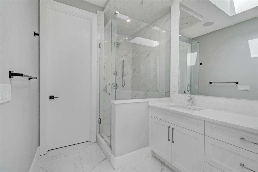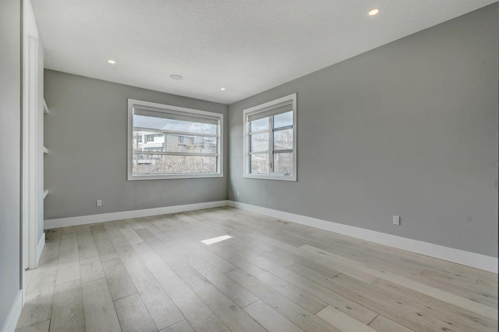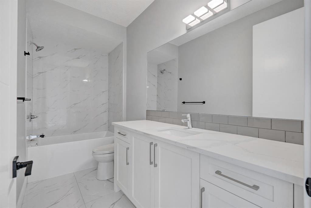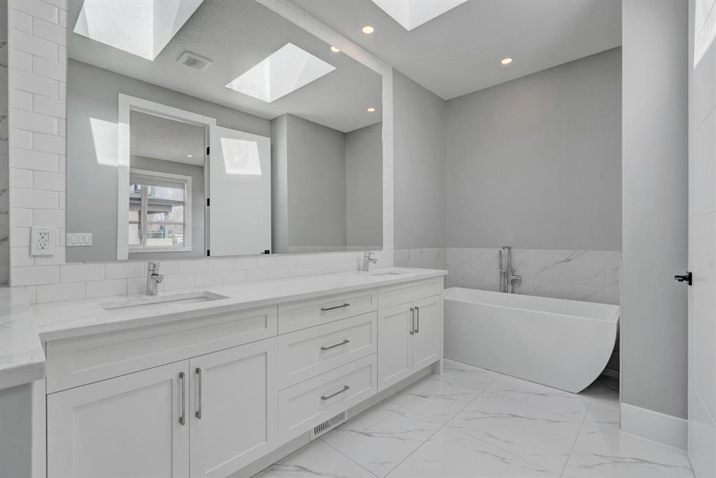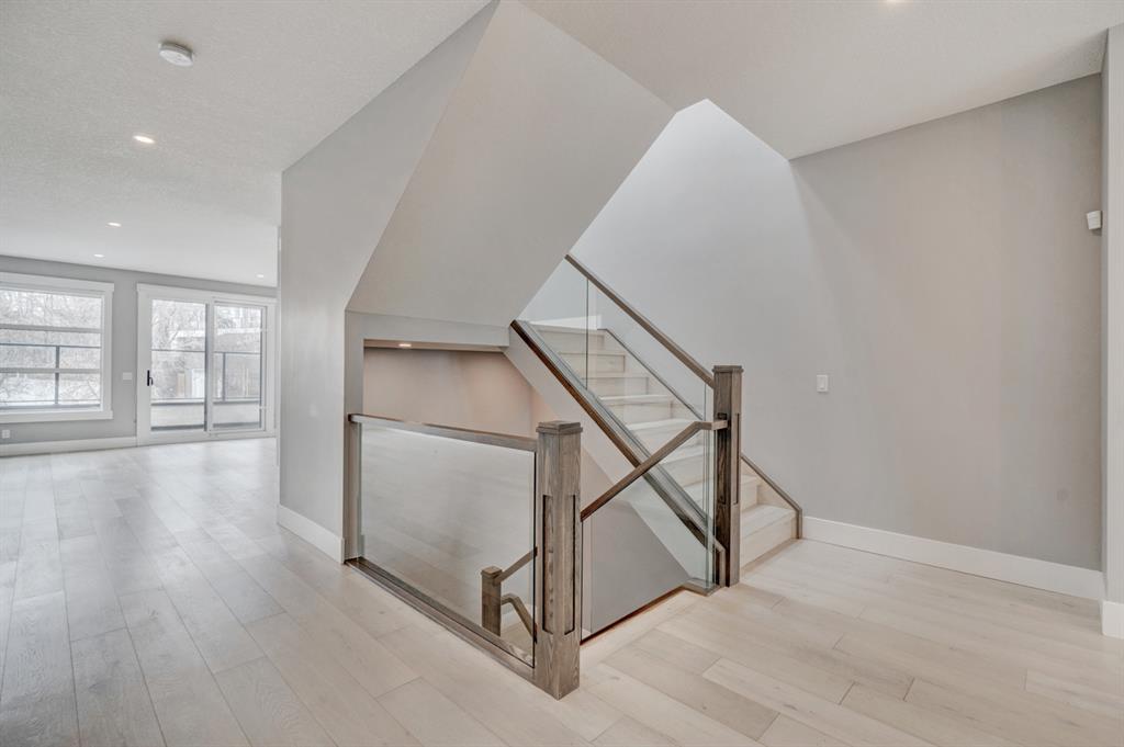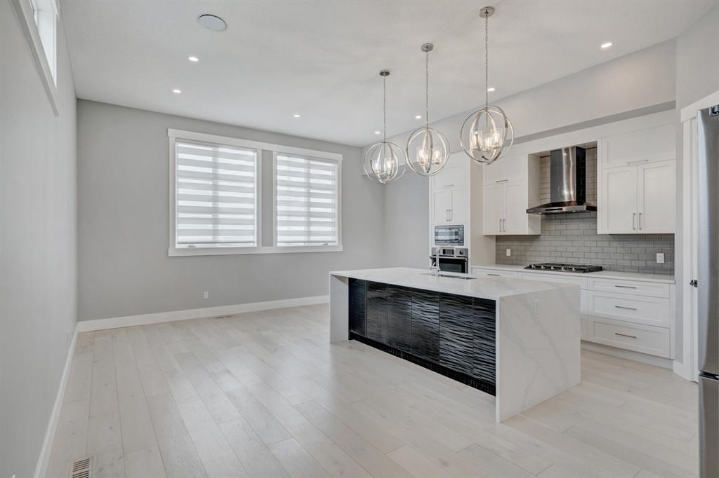 Indulge in a luxurious lifestyle with this stunning contemporary home in the highly sought-after neighborhood of Stanley Park. This impressive house is conveniently located just a stone's throw away from the parks, Elbow River, and MacLeod Trail. A timeless brick veneer provides a welcoming ambiance to this modern living space. Step inside to a bright, spacious entryway complete with a convenient bench and shoe rack. The living room offers breathtaking natural light through its Lux triple-glazed windows and features high ceilings and extensive built-ins on both sides of a quartz surround fireplace, perfect for cozy family gatherings. The sunken kitchen boasts an island waterfall-style quartz counter top and top-of-the-line Chef Collection stainless steel appliances, perfect for hosting parties or cooking dinners for loved ones. The upper level includes two large bedrooms, a beautiful 4pc bathroom with marble-looking tiles, and a primary bedroom suite with an ensuite bath, featuring a large shower with luxury rain/steam and a soaker tub. The home also comes equipped with solar energy infrastructure, pre-plumbed underground heating, and an extra-wide driveway capable of fitting two cars. This splendid home offers the perfect blend of elegance and comfort, making it an incredible choice for anyone looking for the ultimate living experience. (id:22211)