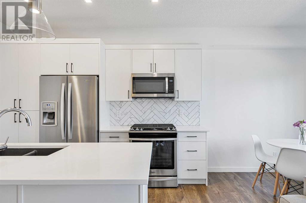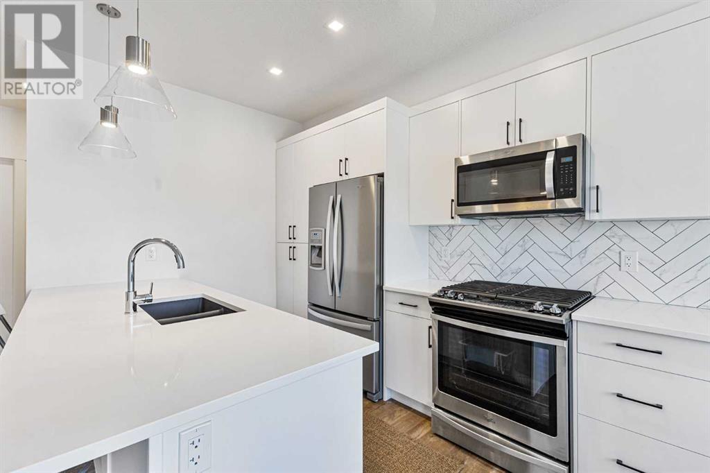 **Open house - Sunday, October 6, 1-4pm** Welcome to your dream home! This gorgeous LOW condo fee, 2-storey townhome in the highly sought-after community of Greenwich offers the perfect blend of style, comfort, and convenience. With an open-concept design and an abundance of natural light, this home exudes warmth and sophistication.Located in Greenwich, Calgary, this townhome features 2 spacious bedrooms and 3 bathrooms. The sleek kitchen is a delight, boasting quartz countertops, upgraded stainless steel appliances, and a stunning herringbone backsplash. The open concept living area is perfect for entertaining with large windows that fill the space with natural light.The primary bedroom is a true retreat, complete with a luxurious ensuite bathroom, providing a serene space to unwind after a long day. Enjoy the convenience of an attached garage and the close proximity to a variety of schools and amenities. Whether you're shopping at the Calgary Farmer's Market, enjoying the recreational activities at WinSport COP, or exploring the shops and restaurants at Greenwich Village Plaza, everything you need is just minutes away. You have a variety of public schools - K-12, perfect for all families. For those who love the great outdoors, you'll appreciate being just a 30-minute drive from the stunning mountain landscapes, perfect for weekend getaways and outdoor adventures. Or you are just 18 minutes from downtown! The best of both worlds! Don’t miss the opportunity to make this beautiful townhome your own. Contact your favorite Realtor today to schedule a viewing and experience the best of Greenwich living! (id:22211)