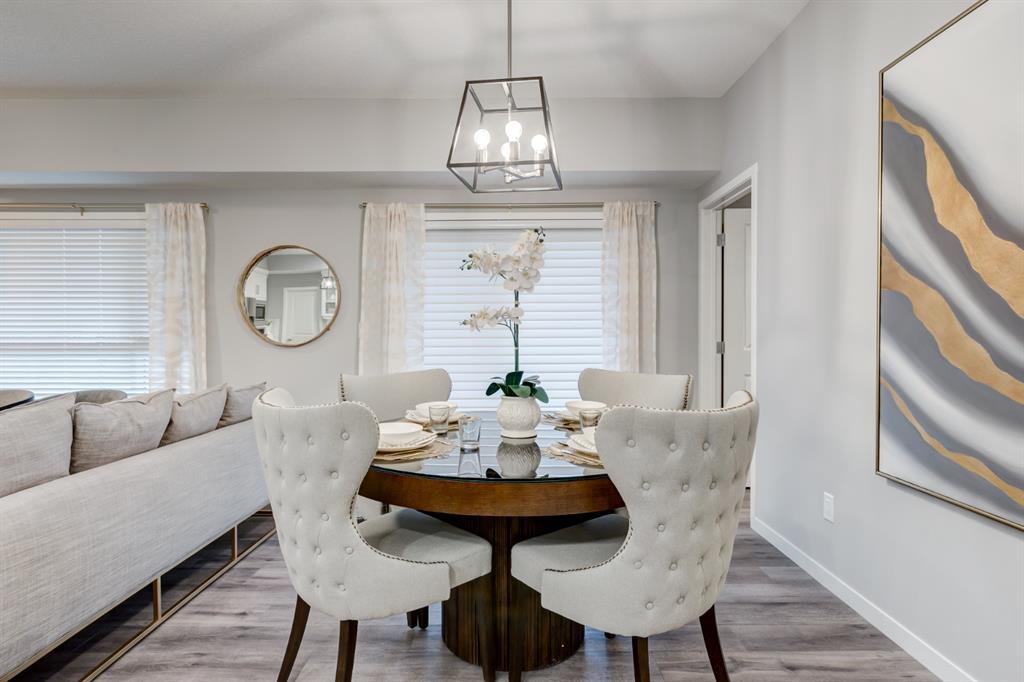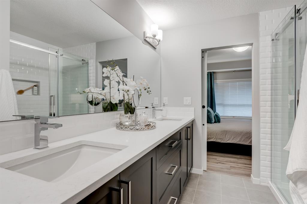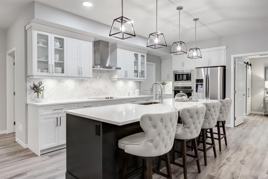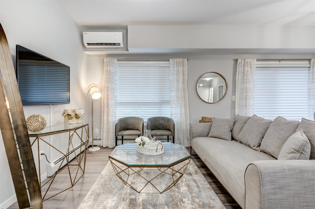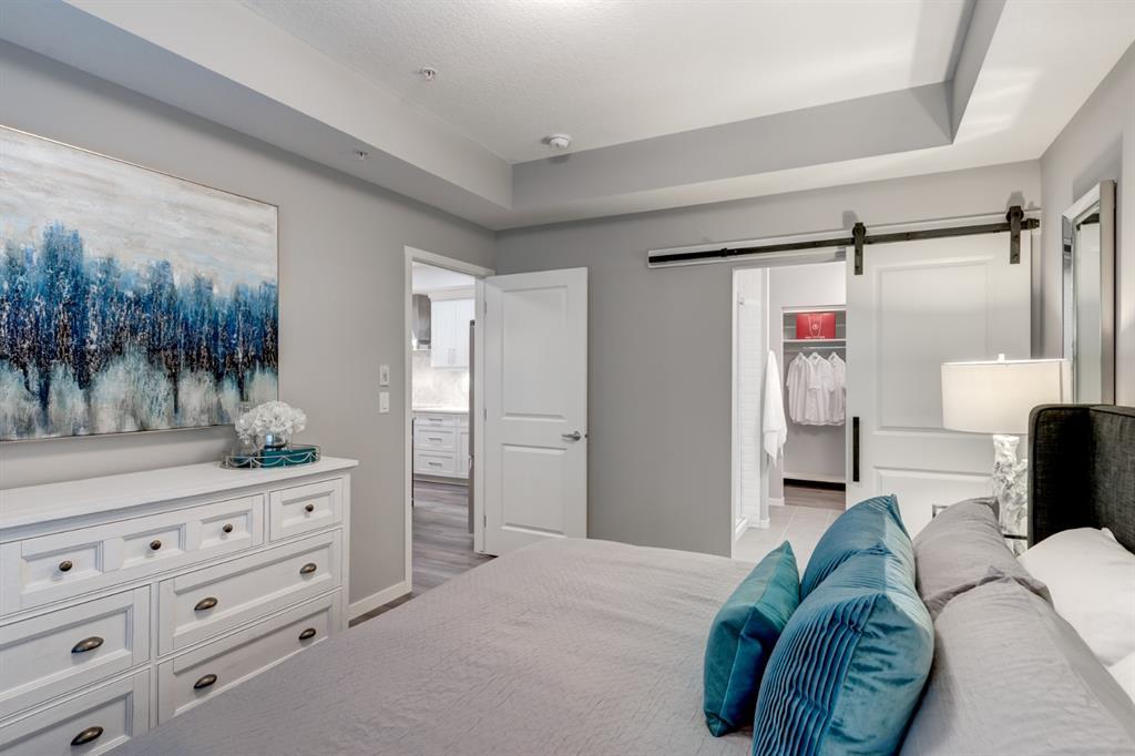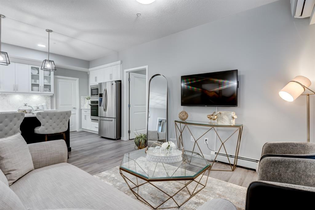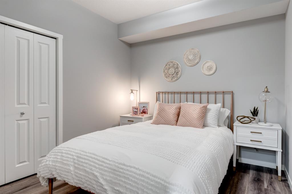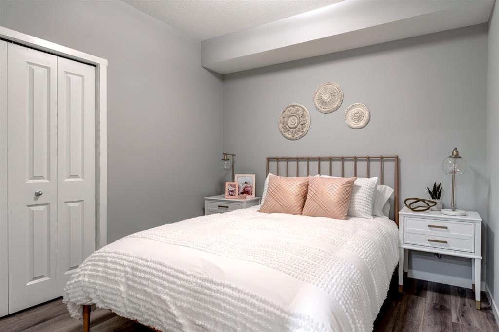 INTRODUCING RIVERSTONE MANOR, IN THE EXCLUSIVE COMMUNITY OF RIVERSTONE IN CRANSTON, CALGARY. BUILT BY “BUILDER OF CHOICE” WINNER CEDARGLEN LIVING, 4 YEARS RUNNING! BRAND NEW "L3" unit with notable features. You will feel right at home in this well thought-out 1,054.67 RMS sq.ft. (1131 sq.ft. builder size) 2 bed, 2 bath home with open plan, 9' ceilings, LVP flooring (no carpet), Low E triple glazed windows, electric baseboard heating, BBQ gas line on the balcony, Fresh Air System (ERV) and so much more. Super bright, NW CORNER UNIT, with west exposure balcony. The kitchen is spectacular with full height cabinets, quartz counters, pots/pan drawers, undermount sink, upgraded backsplash and S/S appliances. The island is extensive which transitions into the spacious living area and large dining room, perfect for entertaining. The spacious primary bedroom has a large window (triple pane windows), sizeable walk-in closet and dual vanities with a stand-up shower. The additional bedroom is perfect for kids, guests, or an office. Nearby is the laundry/storage room (washer & dryer included) and a 4pc bath with quartz counters and undermount sink. Highlights include: Hardie board siding, electric baseboard heating, BBQ gas line on the balcony, Air conditioner rough-in, LVP to bedrooms & closets, full height tiles above shower and tub, added pot/pan drawers to the kitchen and added drawers to ensuite vanity. 1 titled underground parking stall included (Limited storage lockers may be available for purchase). Strategically located steps from the beautiful Bow River, adjacent to the scenic wet pond, access to Cranston’s Resident’s Association and many other bespoke amenities. PET FRIENDLY COMPLEX, UNIT IS UNDER CONSTRUCTION AND PHOTOS ARE OF A FORMER SHOW HOME AND FOR REFERENCE ONLY. FINISHING'S AND UPGRADES WILL DIFFER, NO FURNITURE OR ACCESSORIES INCLUDED. Estimated Completion date for this unit is August 2, 2023. (id:22211)