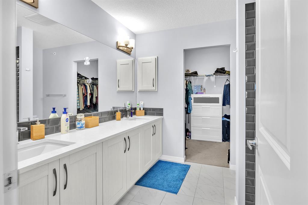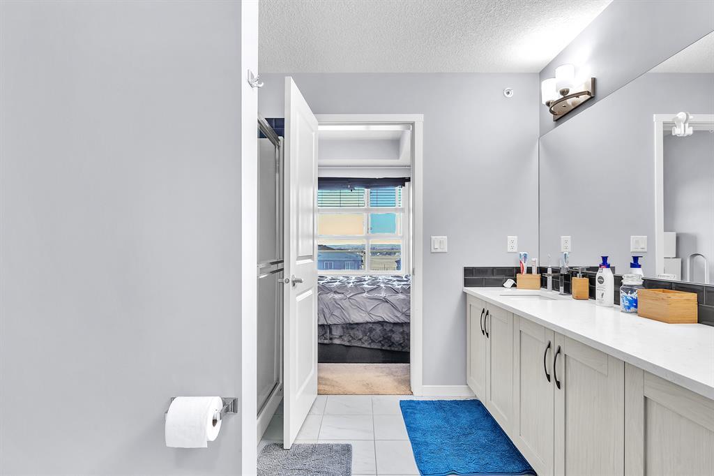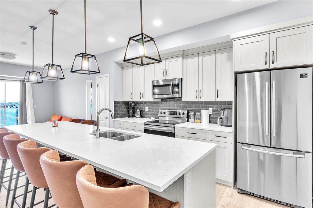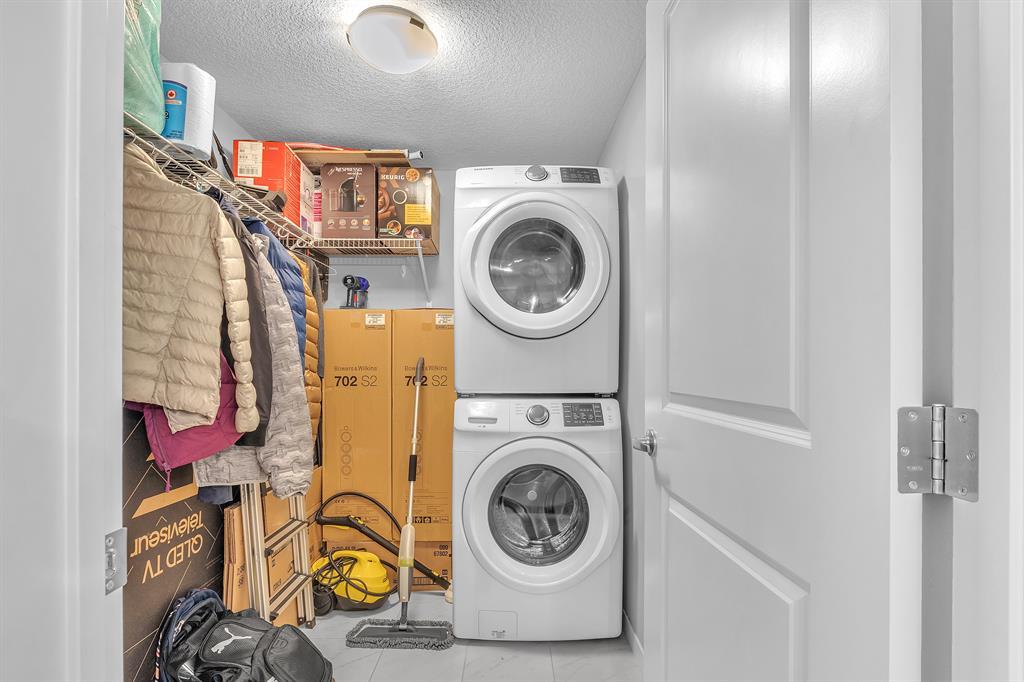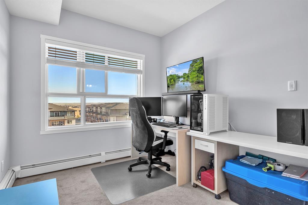 NEW PRICE NOW! You must view this bright and beautiful TOP FLOOR 900 sq ft 2 bedroom, 2 bathroom condo with a deck featuring a peek of the valley to the south. In virtually new condition featuring all the upgrades you expect in your new pad, you will quickly call this place home after viewing it just once. Features include a stylish kitchen with top notch stainless steel appliances, quartz countertops, pantry, and a large island. The large living room with soaring 9 ft HIGH ceiling calls your attention towards a massive 22 ft X 7 ft south-facing deck with a gas line for your summer barbeques:-) On each side of the living area are the spacious bedrooms -- with the primary one featuring an ensuite with double undermounted sinks and large shower. This room also has a sizable walk-in closet. The second bedroom, also with a walk-in closet, is beside the other discretely located full bathroom with a tub. The flexible in-suite storage room also has the laundry machines. There is also a storage locker downstairs. From this perfect condo, you are walking distance to the Superstore, Save-On Foods, VIP movie theater, various restaurants and shopping; also minutes to the South Health Care campus, Fish Creek Park with scenic walking, and biking paths. Also, behind this condo building is an open field that leads to the LARGE new YMCA. This condo has titled underground parking. Let’s get you started towards owning the perfect place to call home! (id:22211)