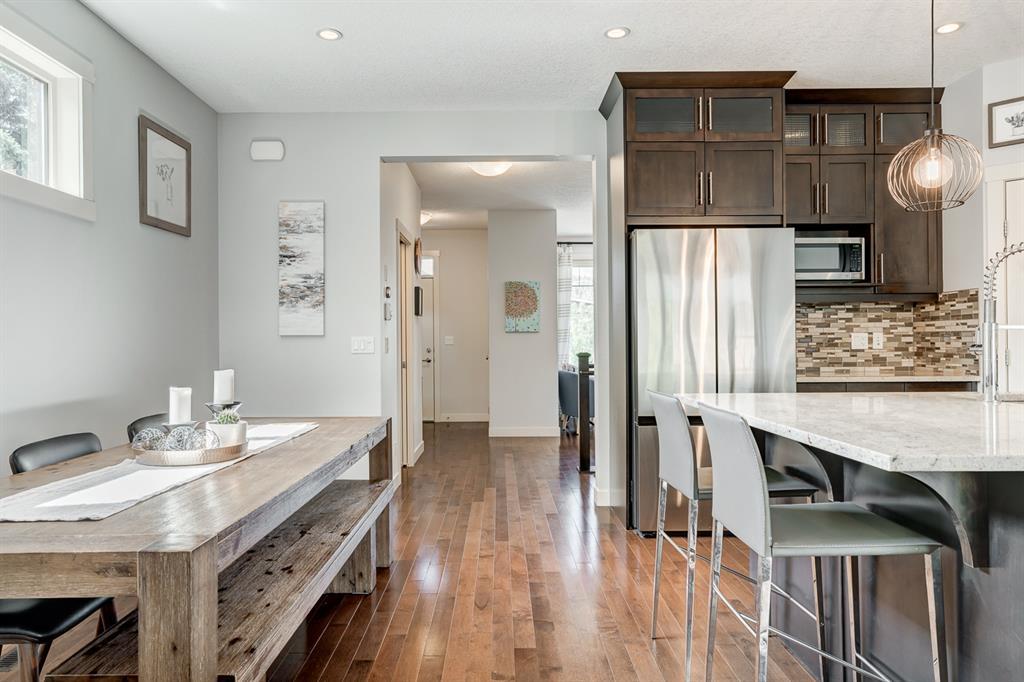 Step into this well crafted 2 storey, attached home, in the family friendly community of Montgomery. Gleaming hardwood floors lead you throughout the main floor, from your formal living room to the open concept kitchen, dining and family room. Kitchen features a large center island with trendy pendant lights, granite countertops, SS appliances and an abundance of storage space through ceiling height cabinets and corner pantry. Family room is flooded with natural sunlight through the large window. A stone surround gas mantle fireplace completes the space. The family room leads to a dedicated rear mudroom with a closet for all your family’s belongings. Upstairs, your primary bedroom offers vaulted ceilings and a beautiful deep green feature wall. A double sided gas fireplace leads to your 5 piece ensuite bathroom with water closet, dual vanity, and soaker tub. The primary bedroom also features a spacious walk-in closet. Two additional good sized bedrooms with large closets, a 4 piece bathroom and a laundry room complete the upper level. Fully finished lower level is family friendly with a large rec room, additional 4th bedroom and 4 piece bathroom. The backyard features a spacious deck, large garden boxes (perfect for the urban gardener), and access to a double detached garage. A sunny south patio is located at the front of the home, to maximize time spent outdoors, along with an easy to manage perennial garden with 3 varieties of peonies. Located within walking distance to Bowmont Park, Montalban off leash dog park, schools and playgrounds and within close proximity to Market Mall, the University of Calgary, Foothills Hospital, and the Alberta Children’s Hospital. You’ll also have quick access to Bow River, city bike pathways, Shouldice Park, and Edworthy Park. Main Street modernization is in progress, creating a trendy gathering of restaurants and shopping. All this within a very quick commute to downtown (15 minute drive, 20-30 mins by bus or bike). (id:22211)