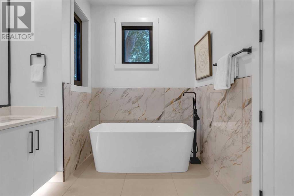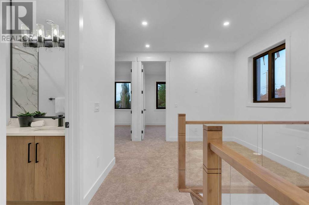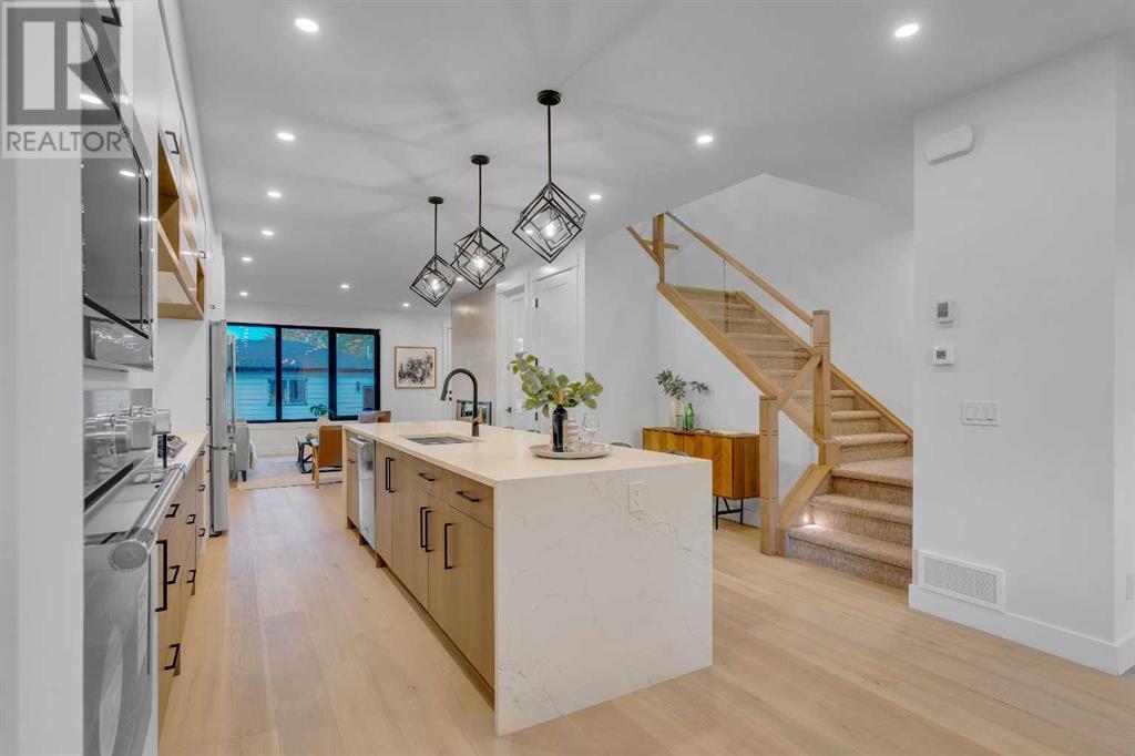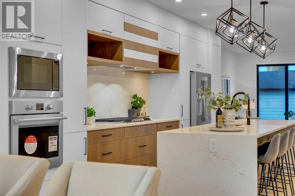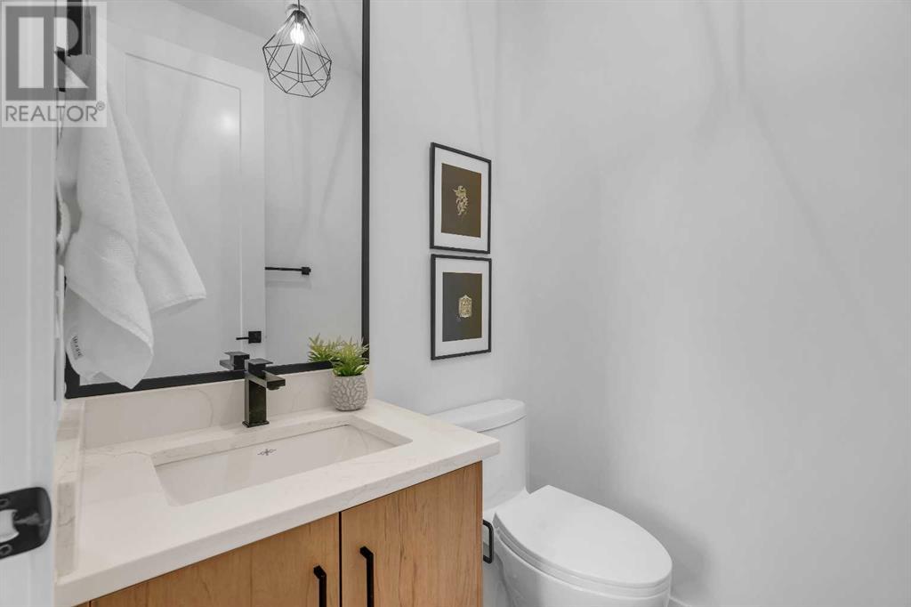 QUICK POSSESSION | 2 BEDROOM SEPARATE ENTRANCE LEGAL BASEMENT SUITE | FACING GREEN SPACE & PARK | OVER 2,900 SQFT OF LIVING SPACE | UPPER-LEVEL BONUS | DOUBLE DETACHED GARAGE | 5 BEDROOM & 3.5 BATHROOMS | Welcome to 4606 82 Street NW, an exquisite residence nestled in the heart of Calgary's most upcoming community of Bowness. This brand-new, rare and uniquely designed 2-storey home draws inspiration from modernity and elegance, boasting unparalleled luxury. This residence spans over 2,900 square feet of thoughtfully designed living space. As you step inside, you are greeted by a meticulously planned open floor layout that seamlessly integrates modern elegance with functional living. Upon entry, the main level features a welcoming full-sized dining room leading to a fully equipped gourmet kitchen adorned with a Frigidaire Professional appliance package, a 10-foot-long island, under-cabinet LED lighting, and a spacious family living room. A rear mudroom door beckons you to an outdoor deck and backyard oasis, setting the stage for all your family entertainment needs. Luxury is defined on all three floors, with upgraded MDF detailing, a two-tone kitchen, a glass staircase railing, a luxurious lighting package with premium built-in finishes and more... The second level hosts a bonus room, a master bedroom vaulted ceiling retreat with a 5-piece ensuite bathroom, a stand-alone tub, his and hers sinks, a custom shower, and a walk-in closet. Two additional bedrooms with a 4-piece bathroom and a laundry room with added convenience complete the second floor. The Legalized 2-bedroom basement suite is a cozy retreat covered in premium upgraded luxury vinly flooring, a living room, a full-size floor-to-ceiling kitchen with a stainless steel appliance package, a 4-piece bathroom, and two great-sized bedrooms. 4606 82 Street NW is more than a home; it's a masterpiece of design and craftsmanship, offering a rare blend of sophistication and comfort in one of Calgary's most sought-aft er neighbourhoods. Welcome to a lifestyle of luxury and distinction. This home is conveniently located just a 10 to 15 minute drive to downtown, Bow River walking paths, and a short walk to Bowness Park. Close to the University of Calgary, two hospitals, the new Baker Centre, the new Superstore, Greenwich Farmers Market, and Trinity Hills box stores are only a few blocks away, with easy access west to the mountains. (id:22211)