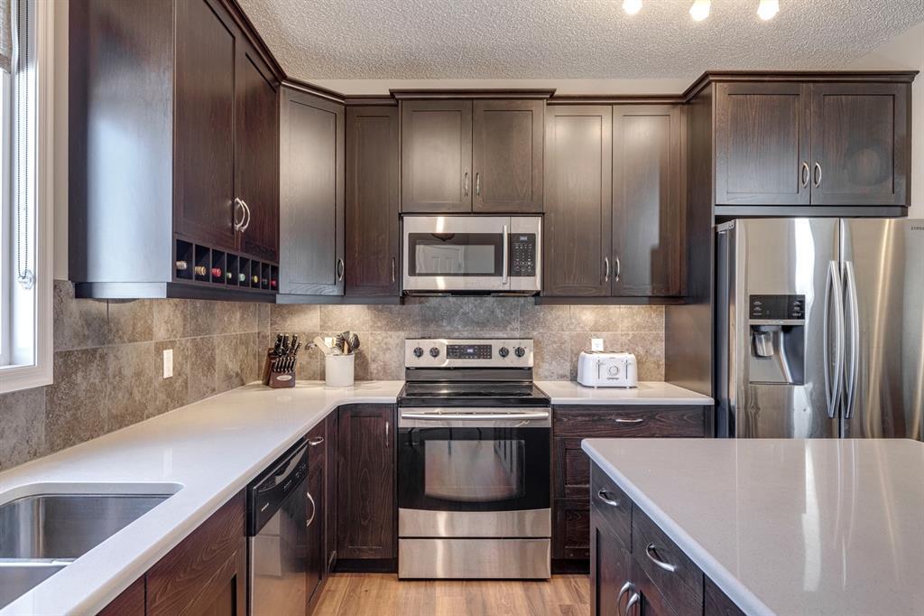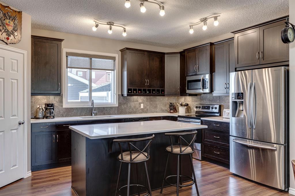 Welcome to your dream home! This stunning two-storey home boasts excellent curb appeal and is situated in a prime location. As you enter the home, you'll be greeted by an open floor plan that offers an abundance of space, perfect for a growing family.The main floor features a large kitchen with an island, quartz countertops, a corner pantry, and stainless steel appliances. The kitchen flows seamlessly into the dining and living spaces, where you'll find a beautiful stone mantle that adds character and warmth to the room. The living area also includes a flex space that could serve as an office, formal dining area, or playroom for the kids.The mudroom off the kitchen is a convenient space that provides plenty of storage with built-in cubbies, perfect for keeping everything organized. A powder room is also located on the main floor for added convenience.Upstairs, you'll find a spacious master bedroom with a luxurious 5-piece ensuite and a large walk-in closet. Two more well-sized bedrooms, a 4-piece bathroom, side-by-side laundry, and a large bonus space complete the second floor. The fully finished basement boasts an additional bedroom, a 4-piece bathroom, and a separate side entrance. The backyard is beautifully landscaped and features an excellent composite deck, making it the perfect space for outdoor entertaining. A detached double insulated garage and additional parking pad provide plenty of space for parking.This home includes many upgrades, such as 9-foot ceilings on the main floor and basement and custom blinds throughout. The home is well situated, facing a green space and pathways, adding to the overall ambiance of the area.Redstone is a vibrant community that offers excellent access to Stoney Trail, making commuting a breeze. This home truly has it all, and it's waiting for you to make it your own. Book a viewing with your favourite Realtor today and make your dream of owning this beautiful home a reality! (id:22211)