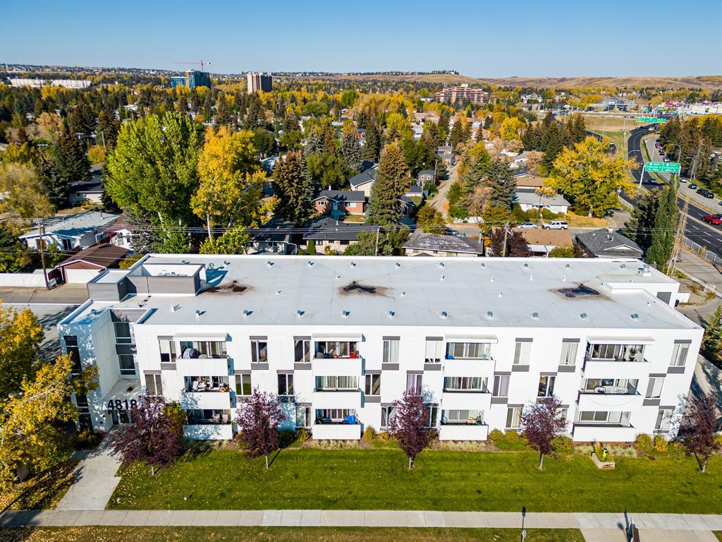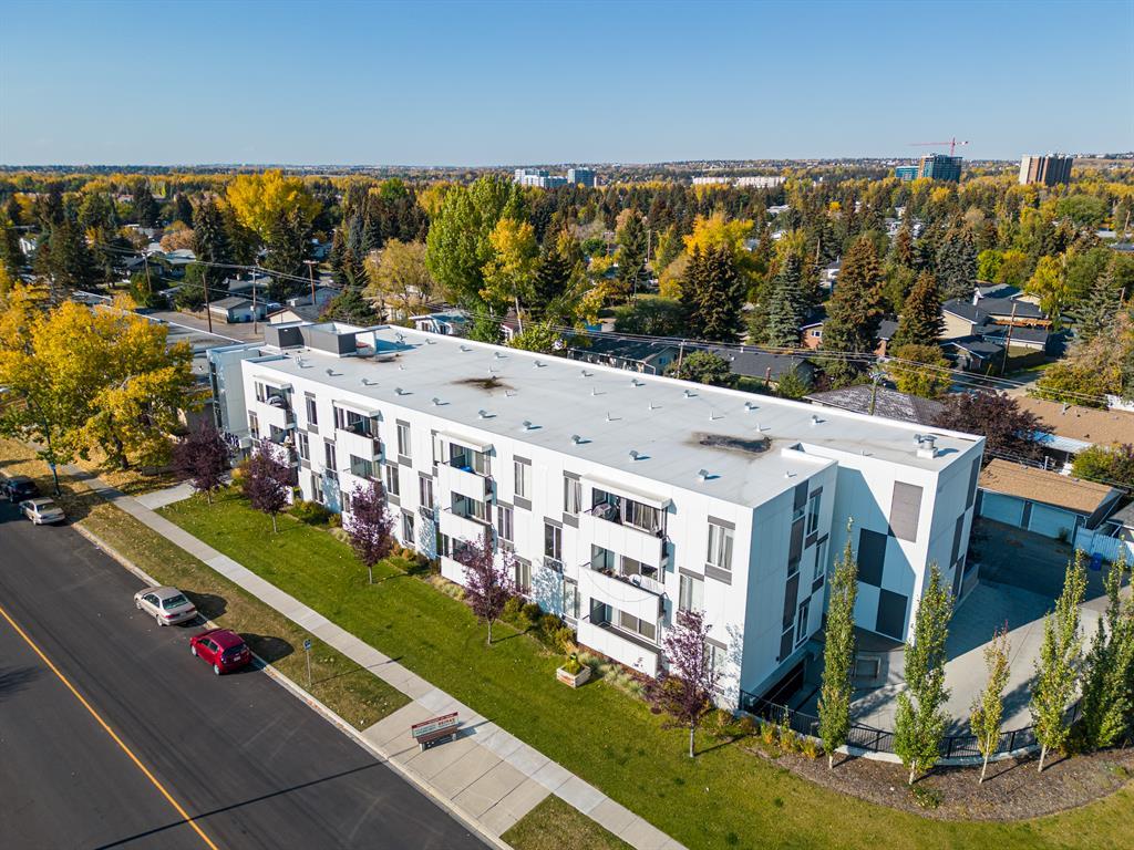 LOCATION!! Desirable loction in Varisty. Close to all amenities . Walking distance to schools, Market Mall, Unversity District, Hospitals. Also minutes to the river pathways, Nose Hill Park and access to major routes to downtown or out to the mountains. This end unit on the top floor so only attached by one wall. There are beautiful views north off the balcony( Nose Hill) There are 2 nice size bedrooms and a 4 pc bathroom and large in unit laundry and storage room, new washing machine and dishwasher. This is a modern building that was built in 2016 so not a post tension cable building. Reasonable condo fees and affordable for the area. Only 3 levels in this low rise building with only 26 units. Pet friendly and family friendly building. This modern condo is a great investment property or perfect owner occupied unit. Dont wait to view . Call today. (id:22211)