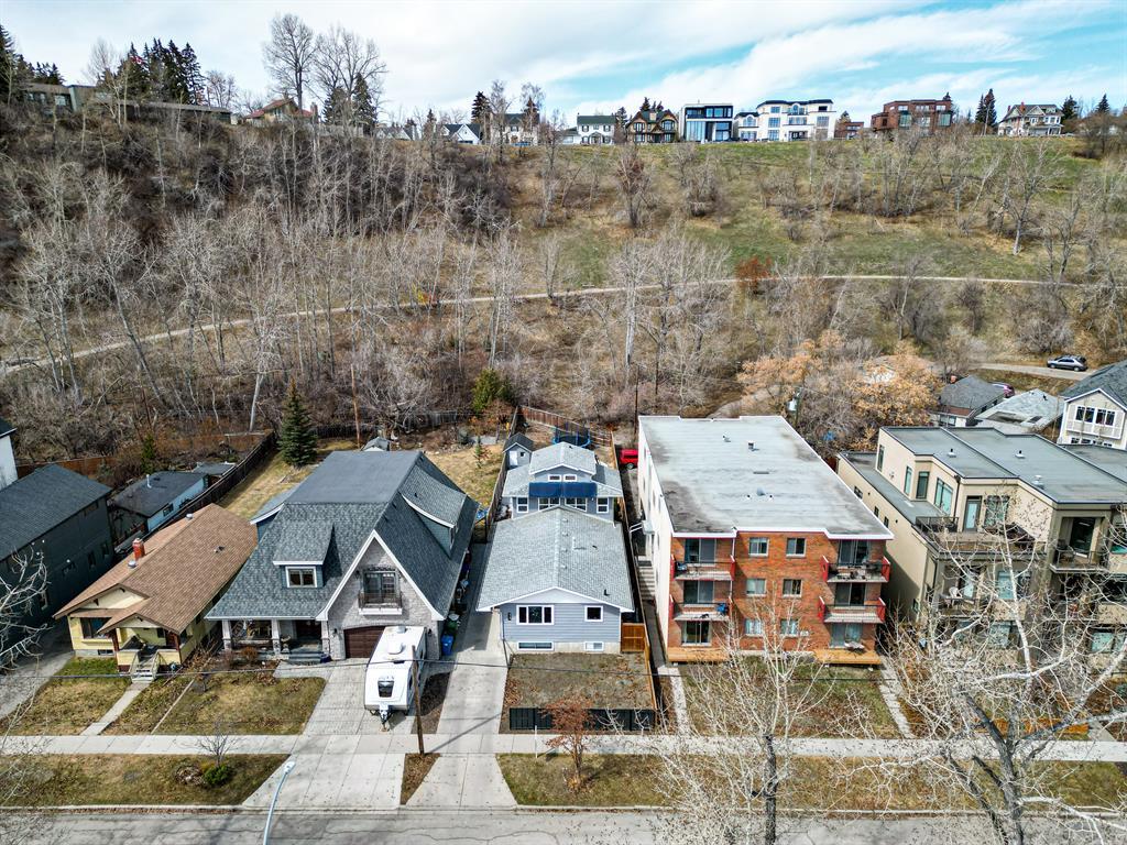 Welcome to this exceptional inner-city property that is situated on a massive lot of 39ft X 210ft, totaling 612 SqM and boasting MC-G d72 Zoning. This is a wonderfully renovated open concept two and a half storey home in the highly sought-after community of Sunnyside and whether you're looking for a development opportunity or a tastefully renovated family home - this property is an absolute must-see. From here you are a short walk from all the restaurants and amenities that Kensington has to offer including multiple schools, the Bow River, Prince’s Island Park, lots of Calgary transit options, and all the downtown districts for work or play. Starting from the back half of this property you can enjoy the peaceful scenic views of McHugh Bluff where it feels like you are right inside Fish Creek Park! There are numerous walking and bike paths and even an off-leash park for daily strolls with man’s best friend. From the front of this property you have all the views and enjoyment of New Edinborough park, which has an ice skating/hockey rink all winter, fire pits, picnic tables, a playground for the kids or grandkids, and a even views of the downtown core. Inside, you'll be greeted by a modern design kitchen featuring a large 9 ft. long island, quartz countertops, LED pot lighting, vinyl plank flooring, double kitchen sinks, and loads of cupboard space. The house offers six bedrooms and three bathrooms, with an office conveniently located on the main floor. The primary bedroom, located in the basement, features a large walk-in closet for all your clothing and sneaker needs. The upper bedrooms both offer a unique loft design that the kids will probably fight over and the bathrooms throughout the house have been stylishly refreshed and renovated. You'll love the low-maintenance vinyl plank, hardwood, and tile flooring throughout the house that adds to the home's modern look and functional feel. The fully developed basement provides those extra bedrooms and lots of stor age (including a cold storage room). For your convenience you can park in front or behind the property with an RV or extra vehicles due to the alley access or spacious front concrete driveway. Other impressive features of this property include a large garden in the back yard (or future garage), 48amp Tesla Charger, tons of backyard storage space under the humongous 24 x 24 ft composite deck, a large poured concrete basketball court or street hockey surface which will no doubt serve up hours of outdoor fun with family and neighborhood friends. This property has been sold within the family for the last 35+ years and will not be available for long... Don't miss out on the opportunity to own this magnificent home in one of Calgary's most accessible and community oriented inner-city neighborhoods. Schedule a showing today to see all that this property has to offer! (id:22211)