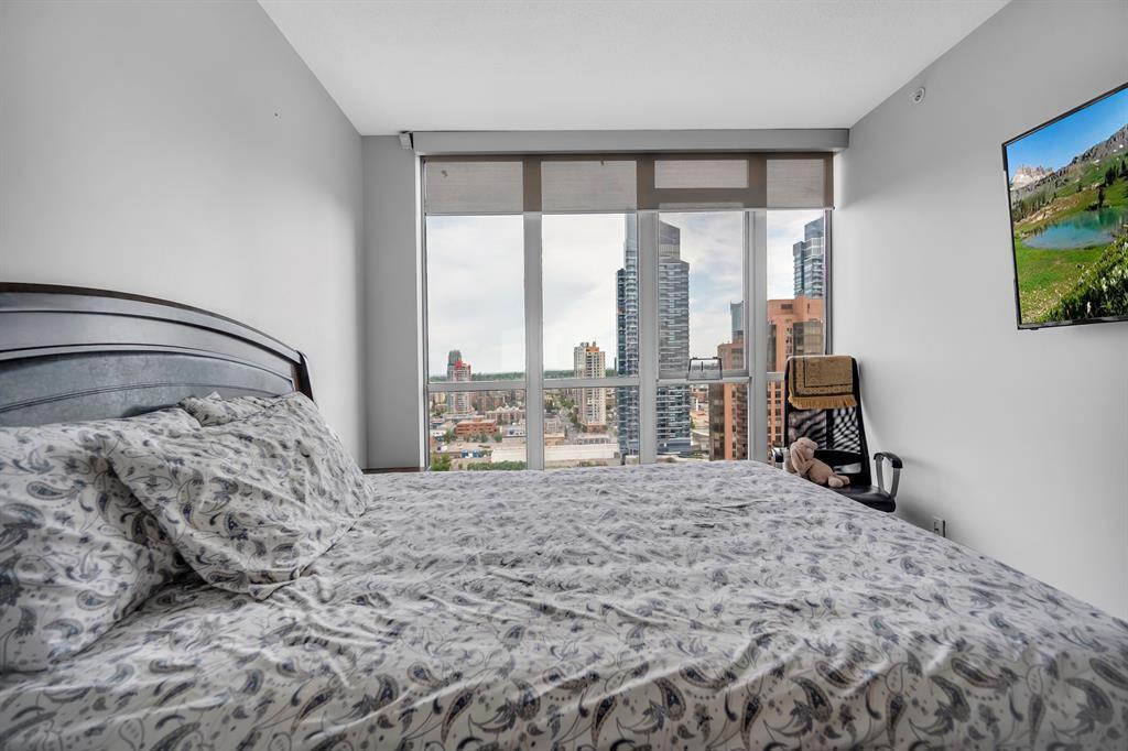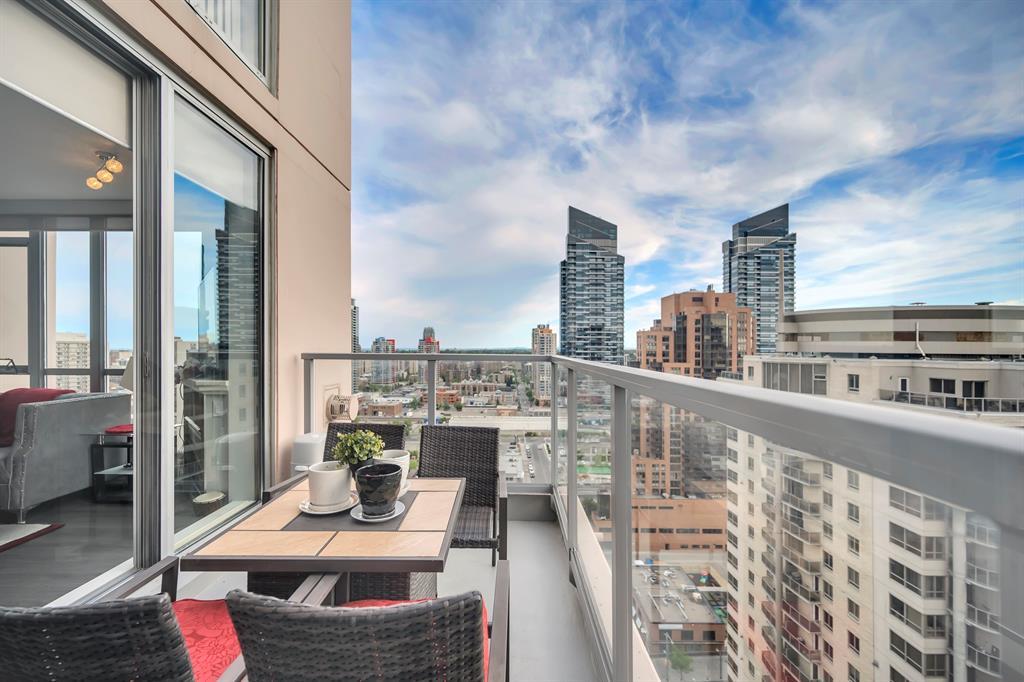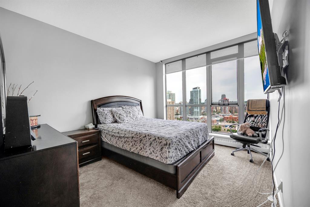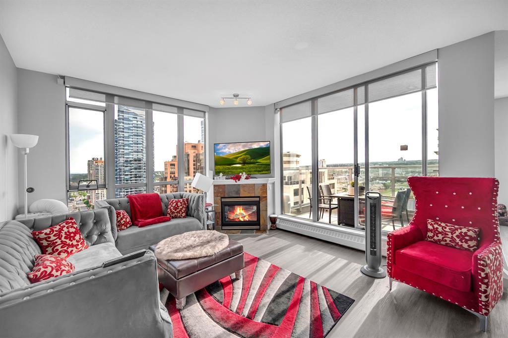 DOWNTOWN LIVING! Don’t miss out on this SPACIOUS 2 bed + 2 full bath CORNER UNIT apartment in the stunning Axxis building built by BOSA Development. Highlights of this bright and open unit includes FLOOR-TO-CEILING WINDOWS throughout, NEW laminate flooring, a corner FIREPLACE, large living/dining areas, a balcony, a white cabinet kitchen with lots of counter space & breakfast bar, GYM access, in-suite laundry, and more! This unit comes with TWO underground parking stalls and a large storage unit. Amenities include a social room, fitness centre, visitor parking, 2 bike rooms & landscaped terrace. The Axxis building is a concrete construction and is only steps away from local amenities, restaurants, bow river pathway, Eau Claire Park, Stephen Ave, C-Train, Kensington shops, and everything that downtown has to offer! The unit has been freshly painted. Last but not least the unit comes with automatic blinds with individual controls. Call your private realtor and book a private showing. (id:22211)