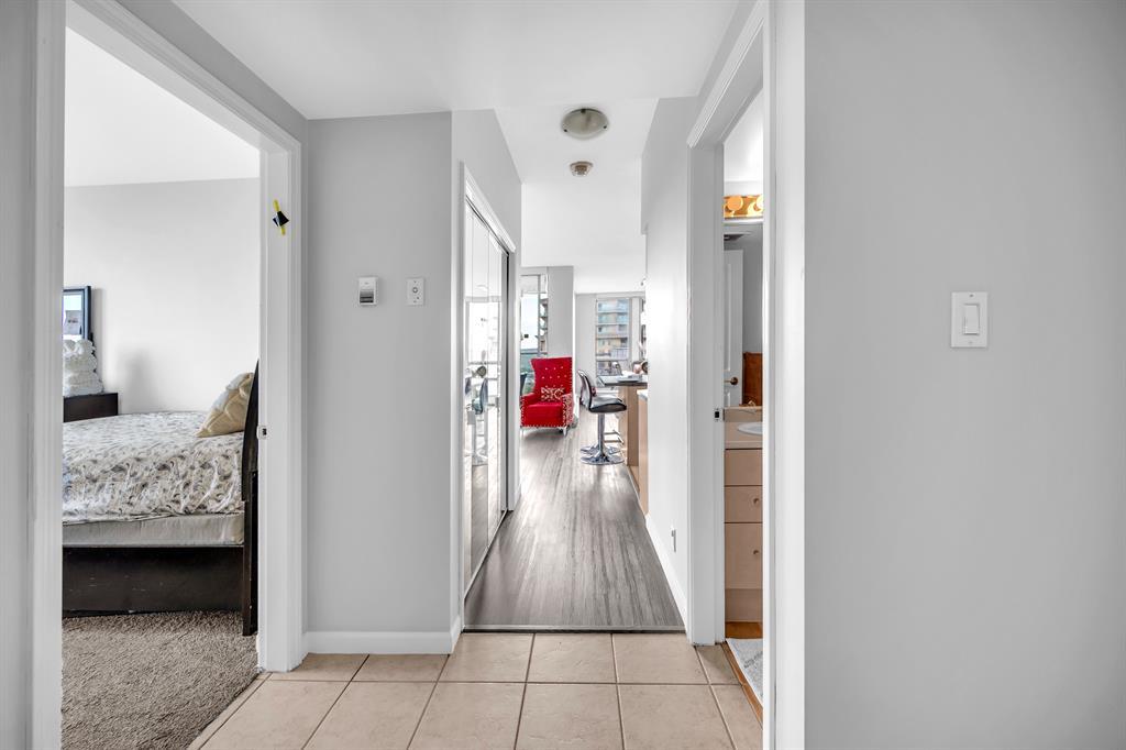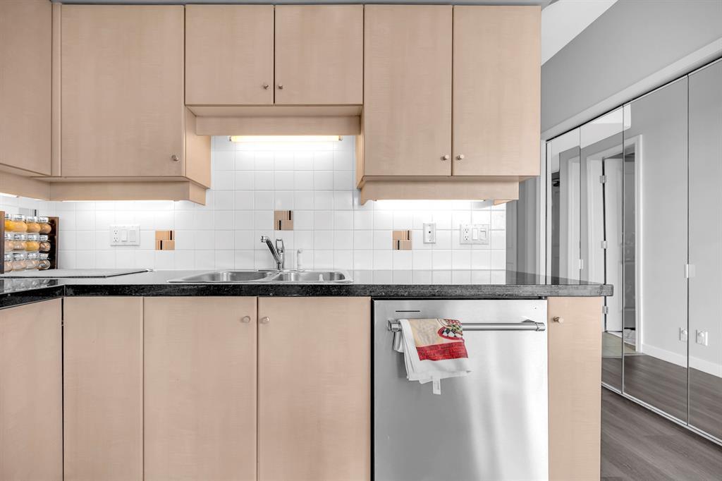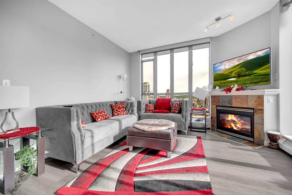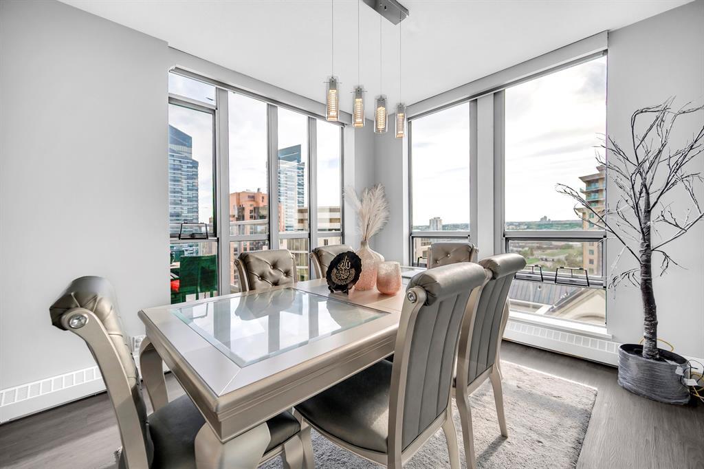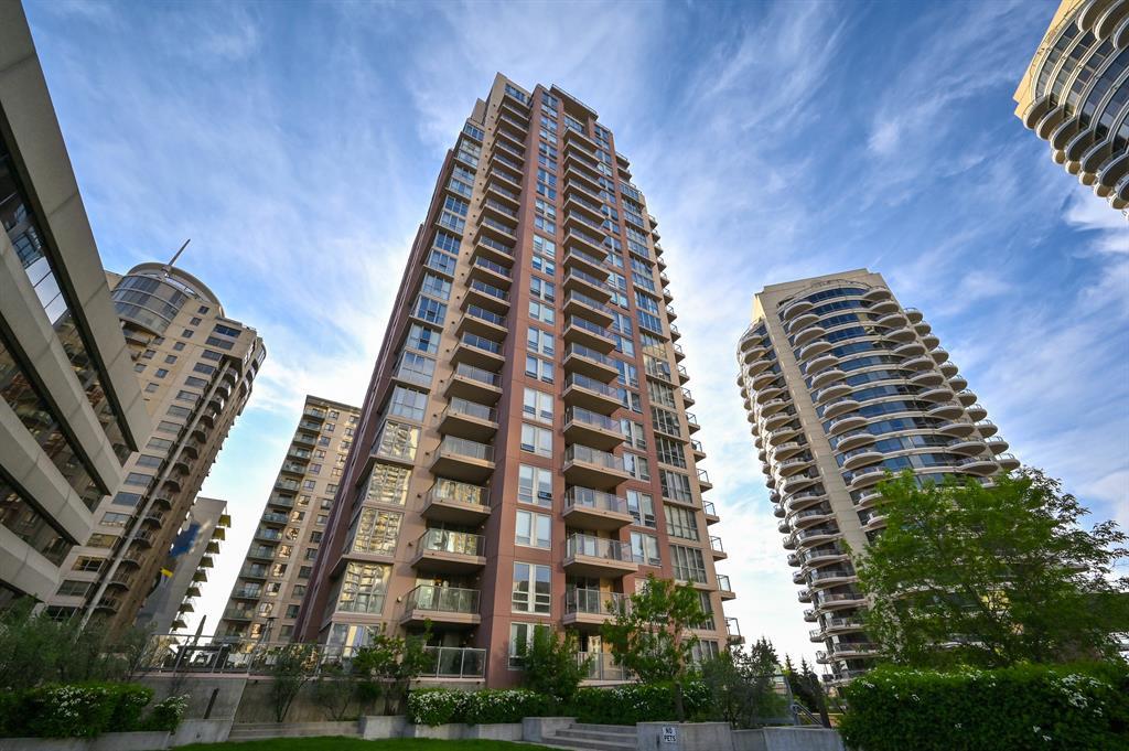 DOWNTOWN LIVING! Don’t miss out on this SPACIOUS 2 bed + 2 full bath CORNER UNIT apartment in the stunning Axxis building built by BOSA Development. Highlights of this bright and open unit includes FLOOR-TO-CEILING WINDOWS throughout, NEW laminate flooring, a corner FIREPLACE, large living/dining areas, a balcony, a white cabinet kitchen with lots of counter space & breakfast bar, GYM access, in-suite laundry, and more! This unit comes with TWO underground parking stalls and a large storage unit. Amenities include a social room, fitness centre, visitor parking, 2 bike rooms & landscaped terrace. The Axxis building is a concrete construction and is only steps away from local amenities, restaurants, bow river pathway, Eau Claire Park, Stephen Ave, C-Train, Kensington shops, and everything that downtown has to offer! The unit has been freshly painted. Last but not least the unit comes with automatic blinds with individual controls. Call your private realtor and book a private showing. (id:22211)