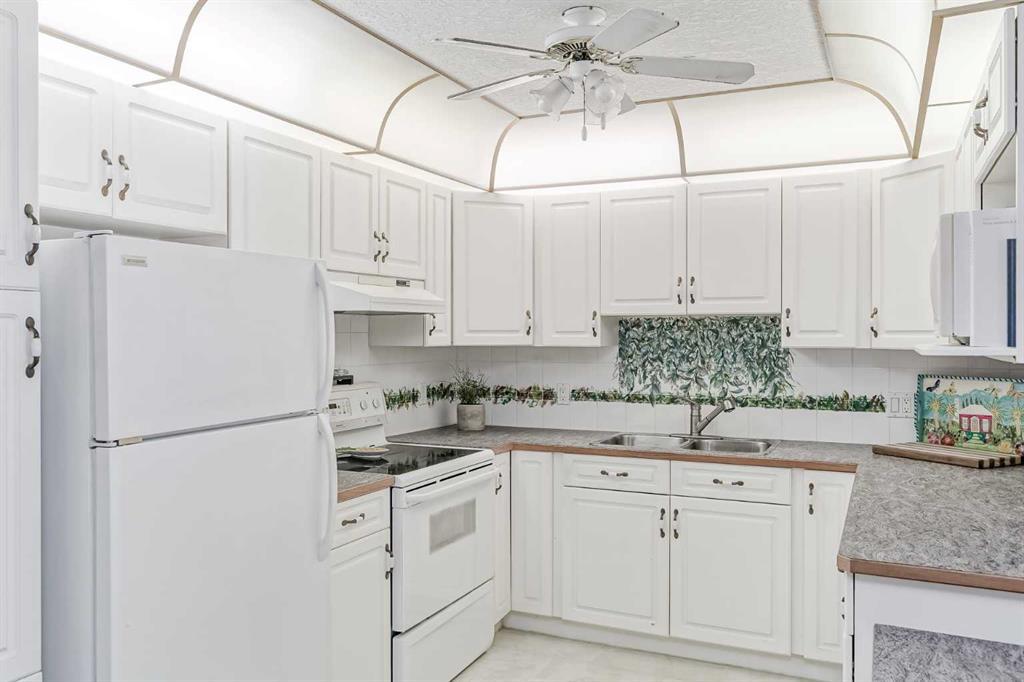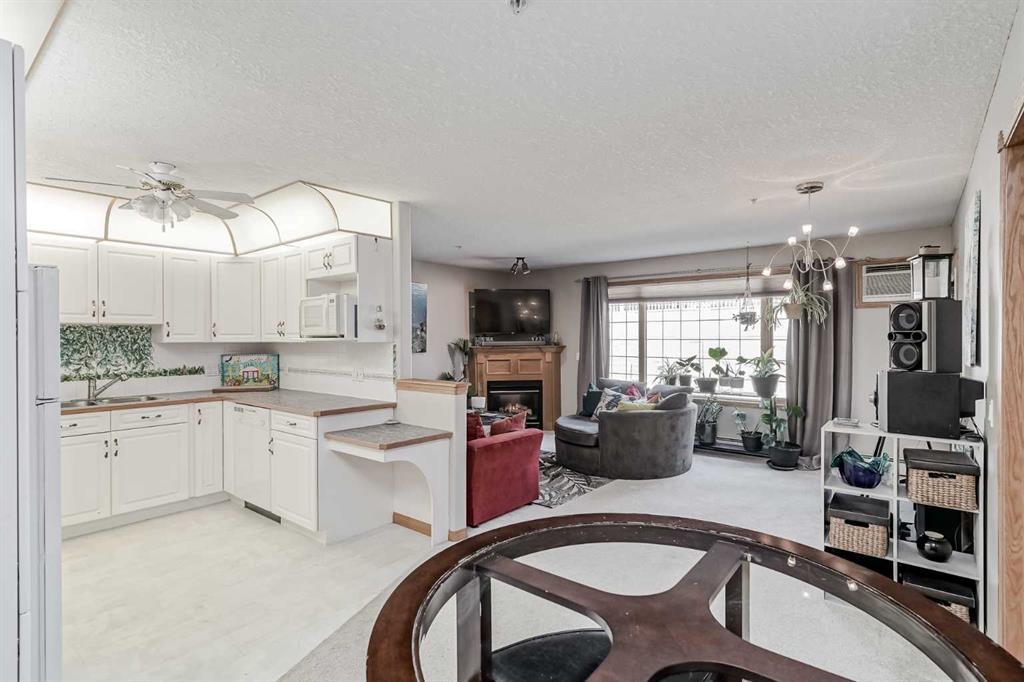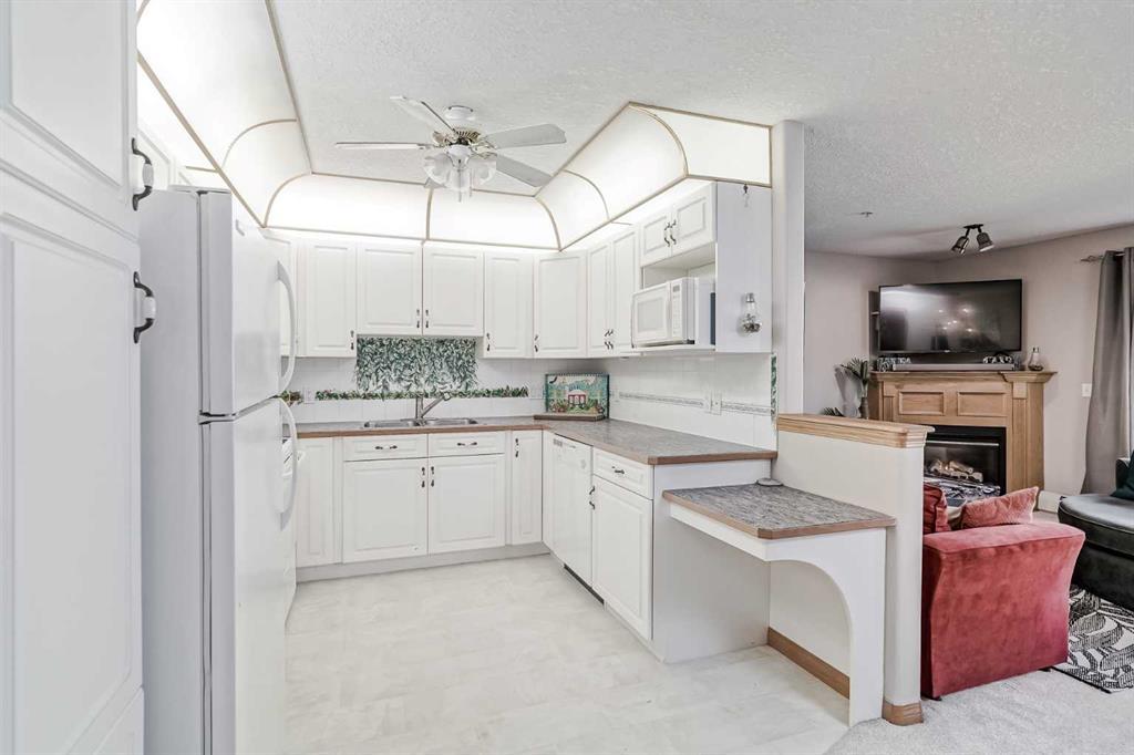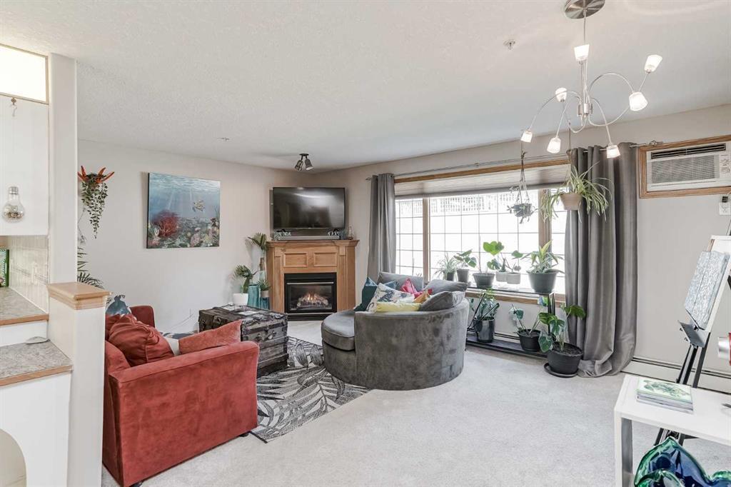 Don't miss out on this amazing opportunity to own a well-maintained 1-bedroom plus den unit in the highly sought-after 40+ Sierras West complex. Step inside and be greeted by a welcoming entrance that opens up to a spacious and open concept layout, offering almost 900 sq/ft of living space. The kitchen is generously sized, featuring pristine white cabinetry that provides ample room for all your cooking needs. The living room is bright and airy, boasting plenty of natural light and equipped with a cozy gas fireplace. The primary bedroom conveniently connects to the main bathroom for added convenience. Plus, this unit comes with the added bonus of air conditioning, ensuring you stay cool during those warm summer days. Step outside onto the balcony, which offers a gas line for your convenience. There's plenty of space for a table and chairs, allowing you to relax and enjoy the shade. With ample storage space and convenient in-suite laundry, this secure main floor unit truly has it all. You'll also benefit from an assigned underground parking stall and secure additional storage. The incredible complex offers a wide range of amenities for you to enjoy, including a guest suite, party room, fitness room, workshop, swimming pool, and games room. The warm and welcoming community is eagerly waiting to greet its new homeowner. It's worth noting that the condo fee includes all utilities, providing you with exceptional value. (id:22211)