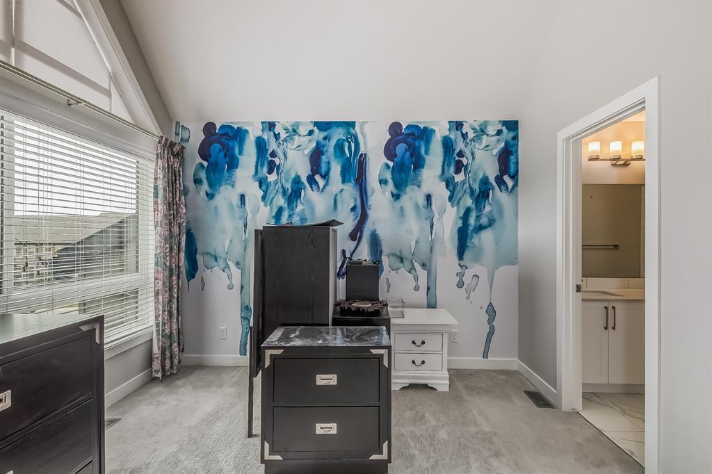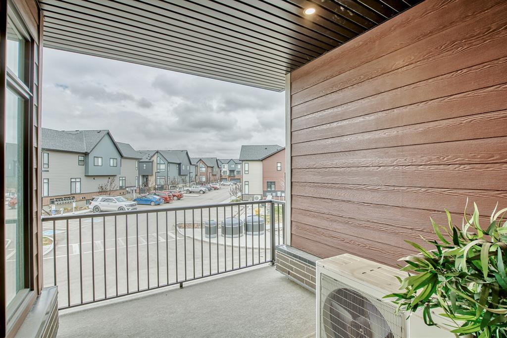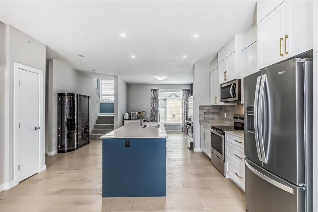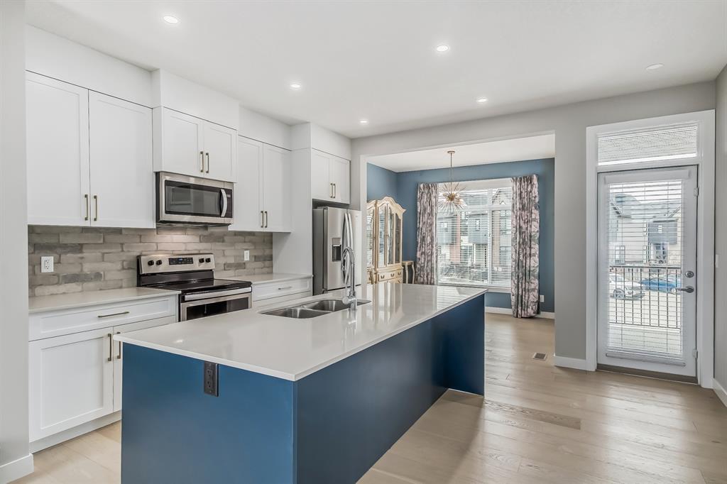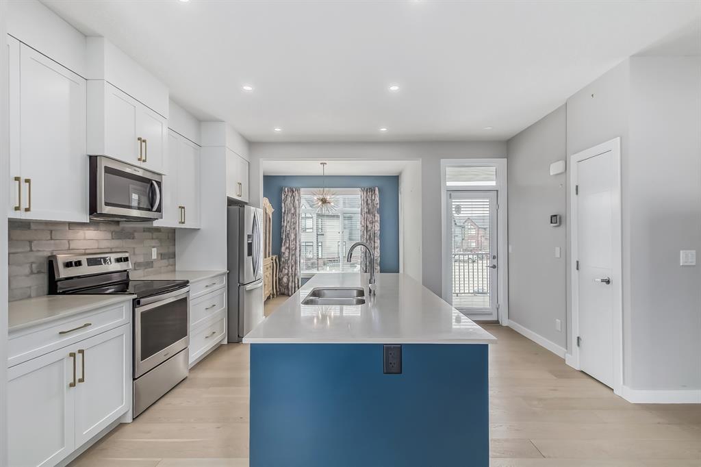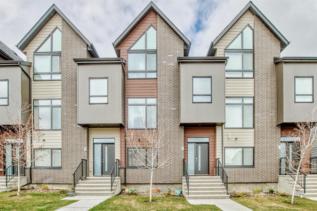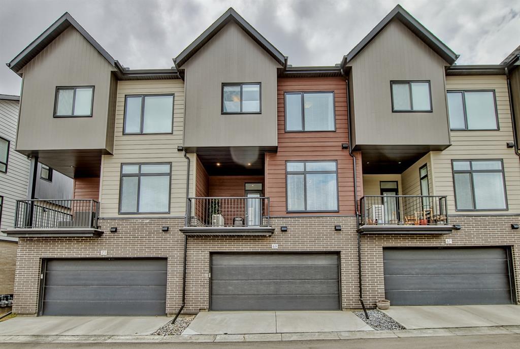 A Beautiful Former show home with a Stylish contemporary living awaits in this beautifully upgraded home here in the upscale townhome community of ARRIVE SAGE in Sage Meadows. This truly gorgeous 3 storey condo enjoys vinyl plank & laminate flooring, total of 3 bedrooms & 2.5 baths, sleek designer kitchen & heated 2 car garage. Drenched in natural light, you'll love the open concept design of the 2nd level living area centered around the fully-loaded kitchen with 2-tone cabinetry & quartz countertops, subway tile backsplash & Samsung stainless steel appliances including gas stove. The living room is bathed in warm natural light through the Southeast-facing windows & next to the dining room is a French door leading out onto the covered balcony complete with gas line for your BBQ. On your way up to the 3rd level is a comfy window seat where you can sit back & relax with your coffee or a good book. The master bedroom is a glorious space with dramatic vaulted ceilings & expanse of windows, walk-in closet with barn door & ensuite with oversized shower & quartz-topped double vanities. A 2nd full bath - also with quartz counters, is shared by the 2nd & 3rd bedrooms...both with great closet space. On the ground floor is the flex room which will make a super home office plus access into the heated double garage. Additional features include the upper level laundry with Whirlpool washer & dryer, LED lighting, tankless water system, upgraded underlay, 1¼ inch quartz counters in the kitchen & bathrooms & attractive brick/cement fibre siding exterior. Monthly condo fees include grass cutting & snow removal. Prime location with walking distance to the winding trails of the Symons Valley Nature Reserve, just minutes to shopping at major retail centers (Sage Hill Crossing, Sage Hill Quarter, Creekside & Beacon Hill) & easy access to Symons Valley Road, Deerfoot & Stoney Trail. (id:22211)