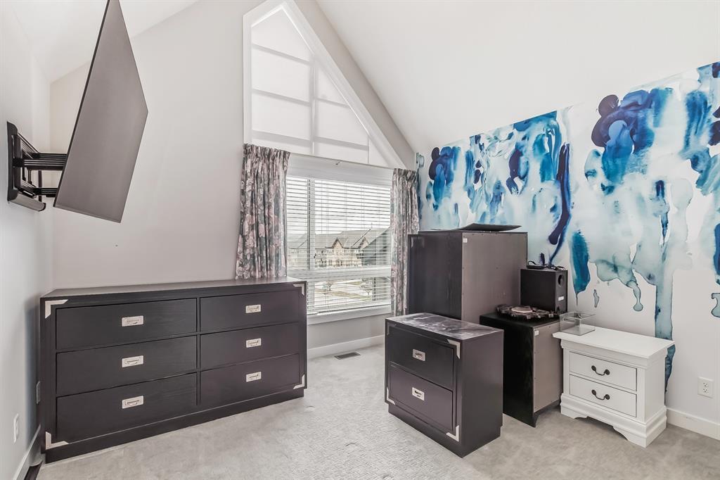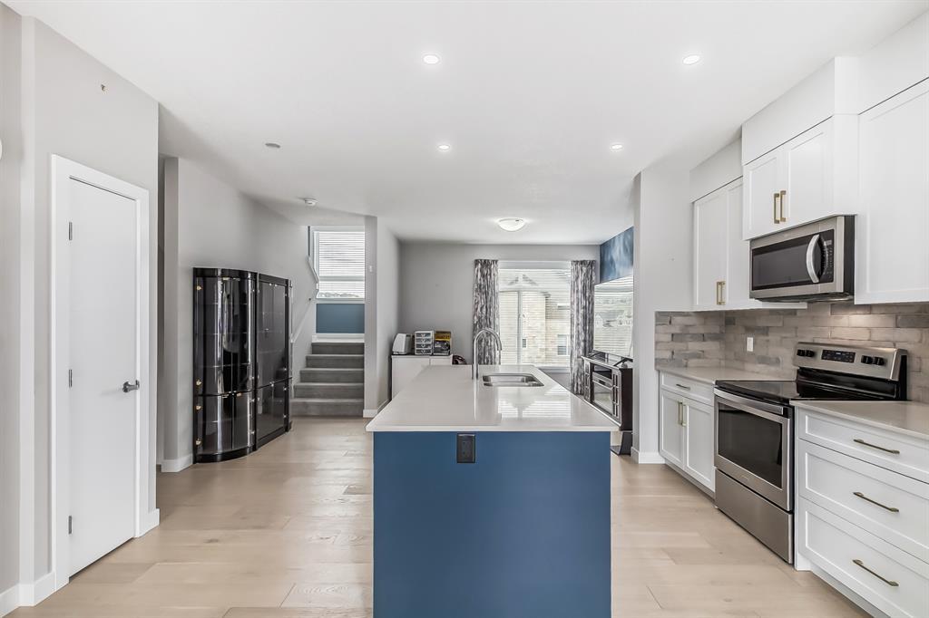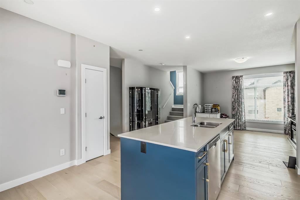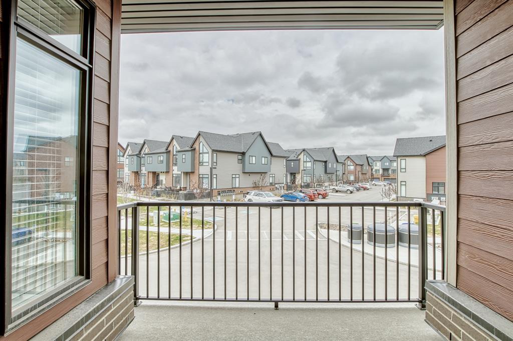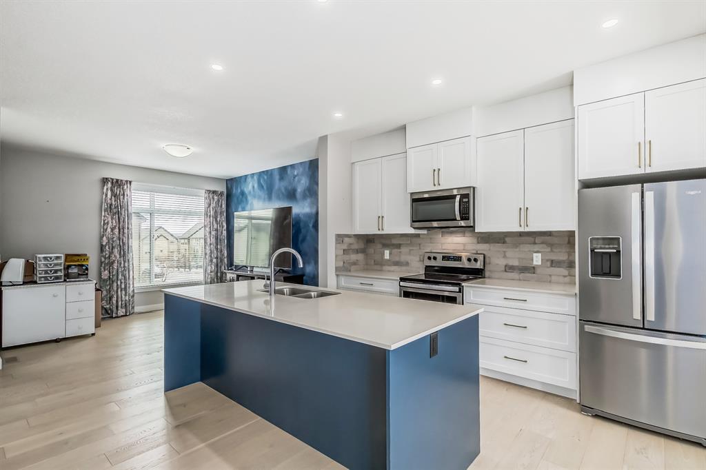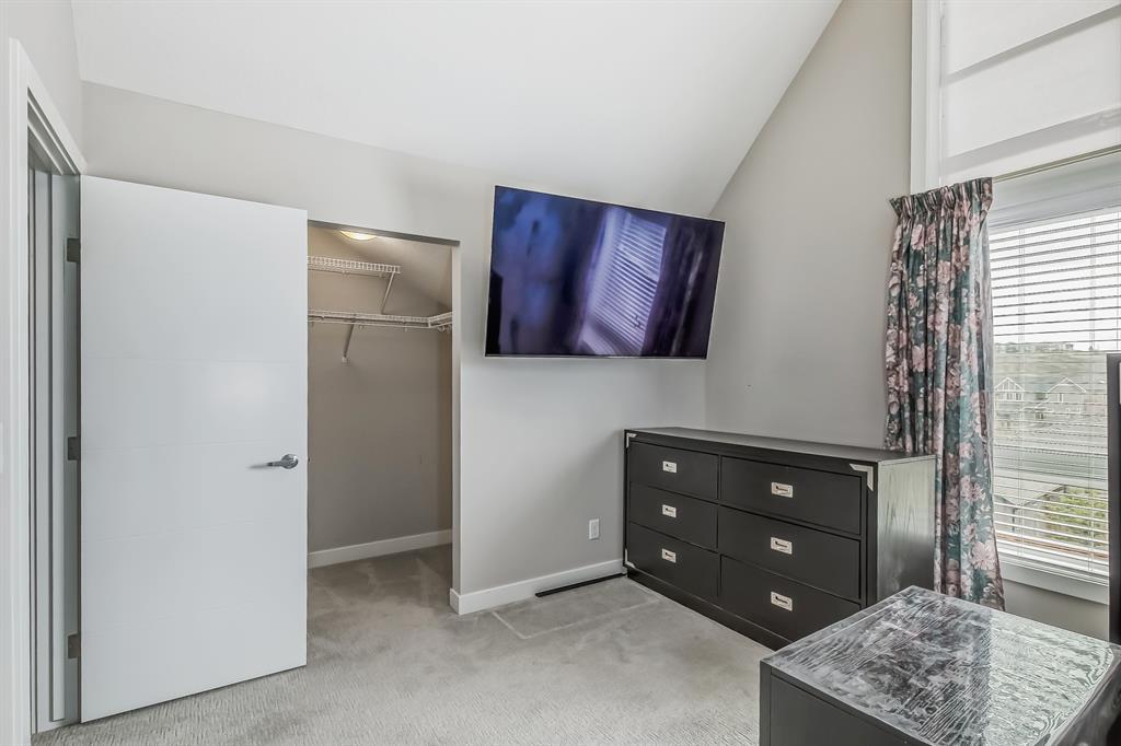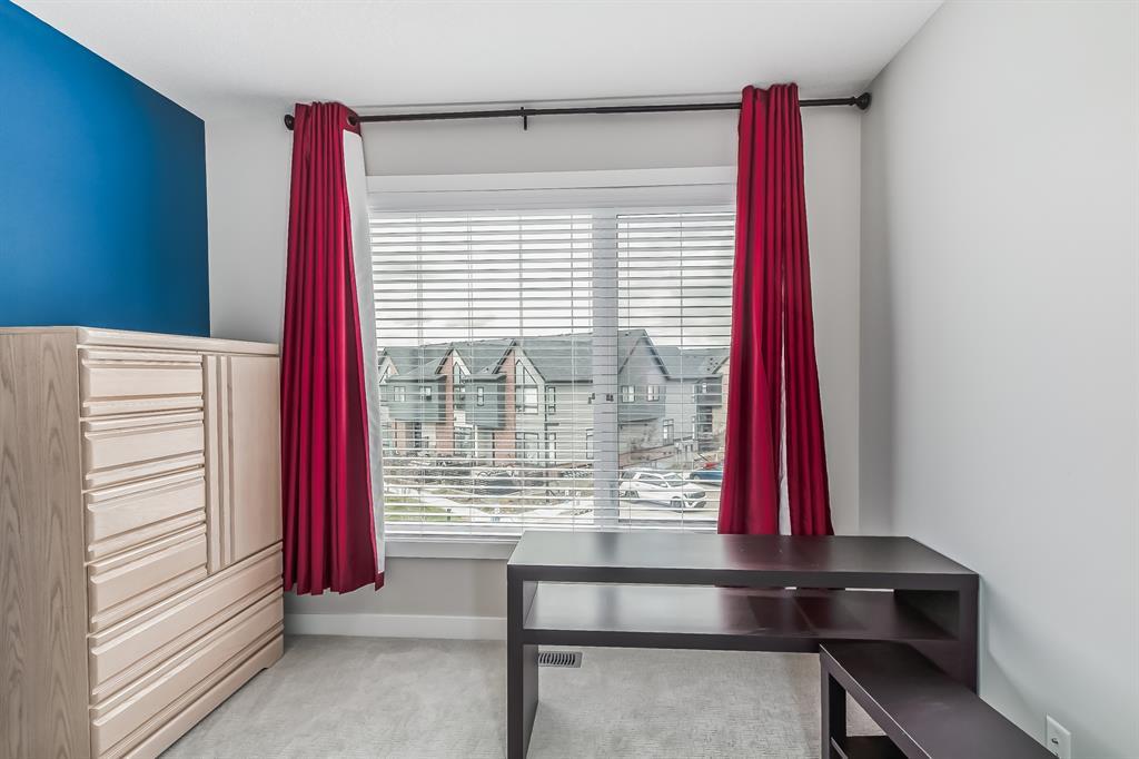 A Beautiful Former show home with a Stylish contemporary living awaits in this beautifully upgraded home here in the upscale townhome community of ARRIVE SAGE in Sage Meadows. This truly gorgeous 3 storey condo enjoys vinyl plank & laminate flooring, total of 3 bedrooms & 2.5 baths, sleek designer kitchen & heated 2 car garage. Drenched in natural light, you'll love the open concept design of the 2nd level living area centered around the fully-loaded kitchen with 2-tone cabinetry & quartz countertops, subway tile backsplash & Samsung stainless steel appliances including gas stove. The living room is bathed in warm natural light through the Southeast-facing windows & next to the dining room is a French door leading out onto the covered balcony complete with gas line for your BBQ. On your way up to the 3rd level is a comfy window seat where you can sit back & relax with your coffee or a good book. The master bedroom is a glorious space with dramatic vaulted ceilings & expanse of windows, walk-in closet with barn door & ensuite with oversized shower & quartz-topped double vanities. A 2nd full bath - also with quartz counters, is shared by the 2nd & 3rd bedrooms...both with great closet space. On the ground floor is the flex room which will make a super home office plus access into the heated double garage. Additional features include the upper level laundry with Whirlpool washer & dryer, LED lighting, tankless water system, upgraded underlay, 1¼ inch quartz counters in the kitchen & bathrooms & attractive brick/cement fibre siding exterior. Monthly condo fees include grass cutting & snow removal. Prime location with walking distance to the winding trails of the Symons Valley Nature Reserve, just minutes to shopping at major retail centers (Sage Hill Crossing, Sage Hill Quarter, Creekside & Beacon Hill) & easy access to Symons Valley Road, Deerfoot & Stoney Trail. (id:22211)