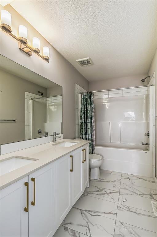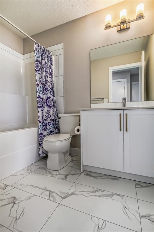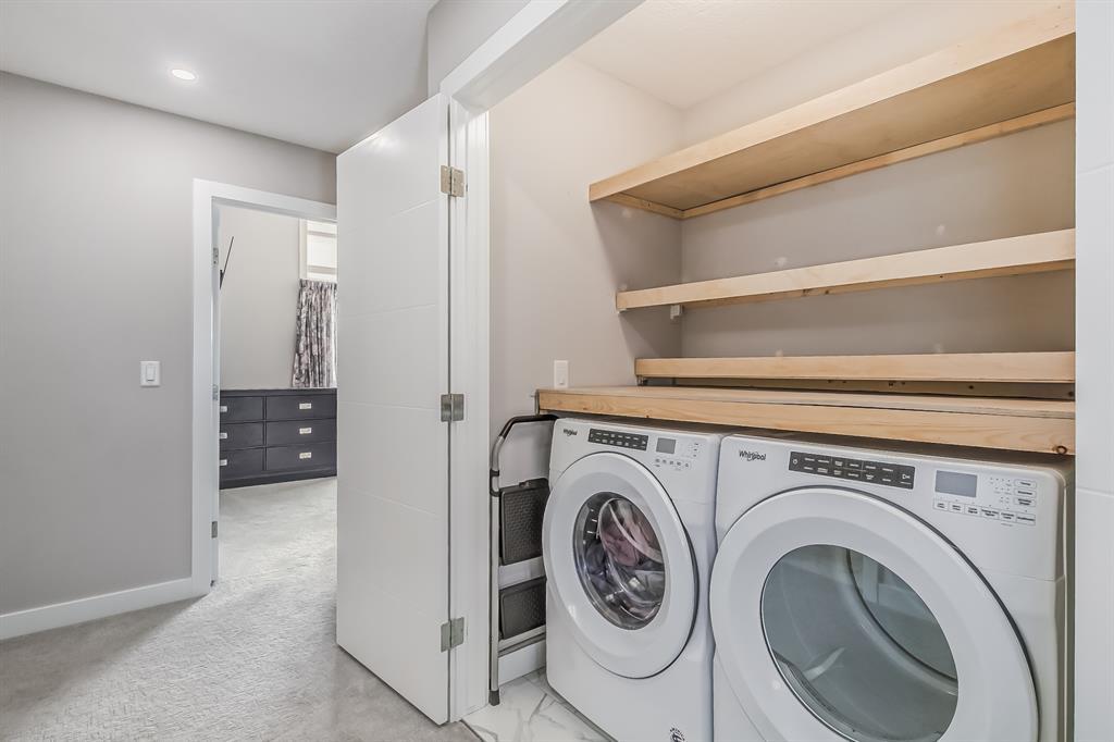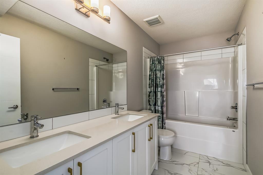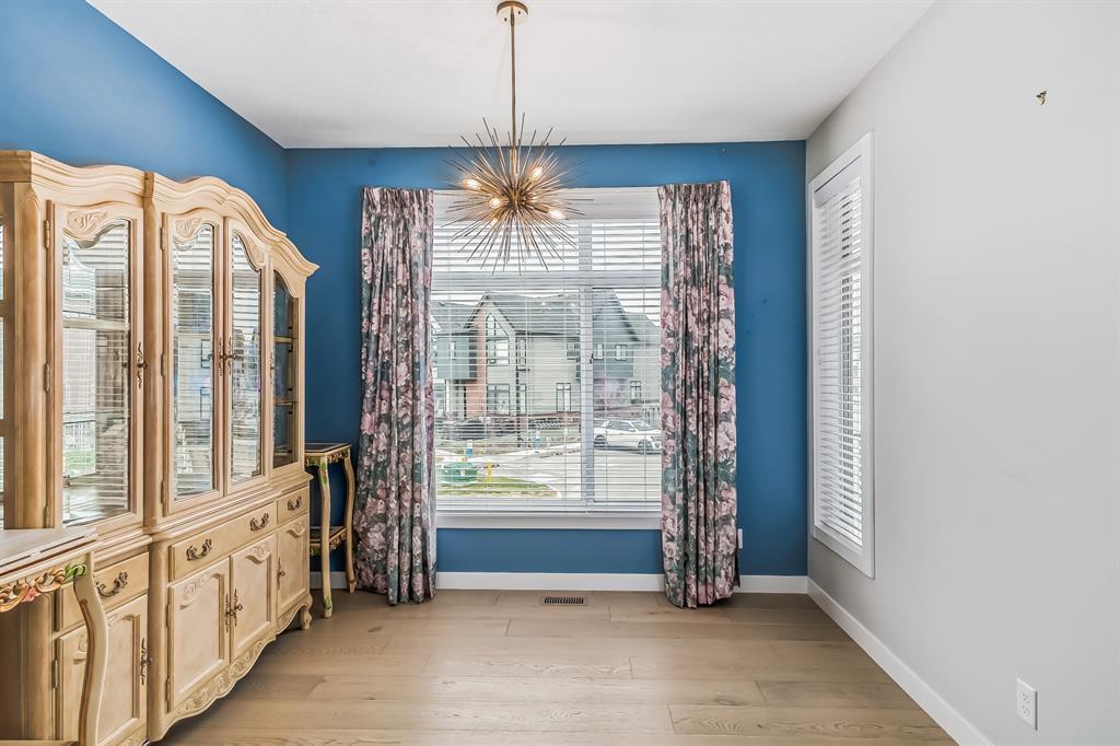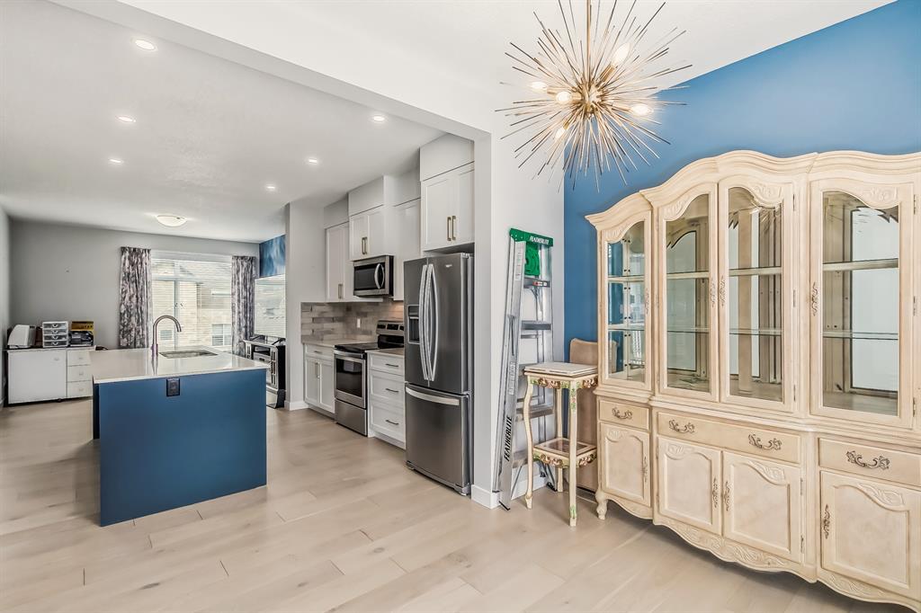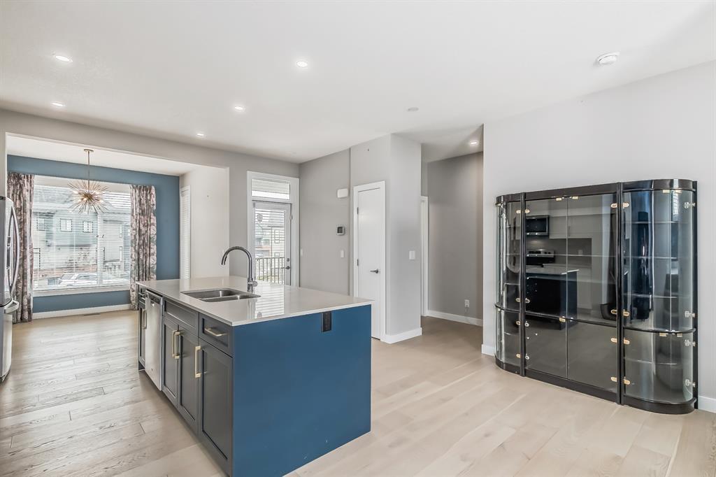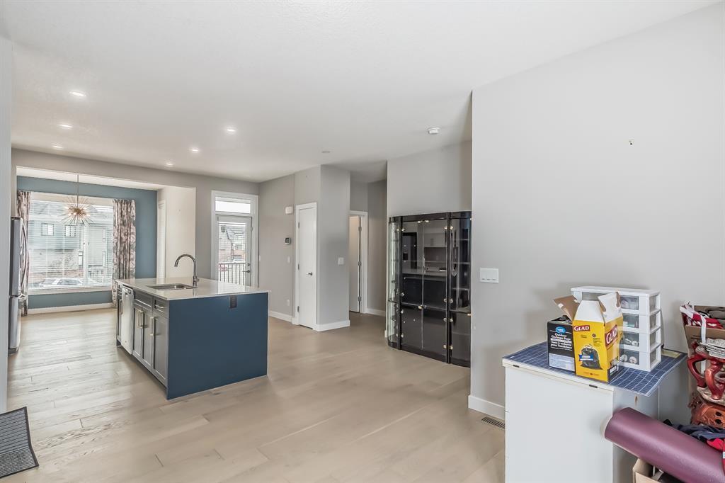A Beautiful Former show home with a Stylish contemporary living awaits in this beautifully upgraded home here in the upscale townhome community of ARRIVE SAGE in Sage Meadows. This truly gorgeous 3 storey condo enjoys vinyl plank & laminate flooring, total of 3 bedrooms & 2.5 baths, sleek designer kitchen & heated 2 car garage. Drenched in natural light, you'll love the open concept design of the 2nd level living area centered around the fully-loaded kitchen with 2-tone cabinetry & quartz countertops, subway tile backsplash & Samsung stainless steel appliances including gas stove. The living room is bathed in warm natural light through the Southeast-facing windows & next to the dining room is a French door leading out onto the covered balcony complete with gas line for your BBQ. On your way up to the 3rd level is a comfy window seat where you can sit back & relax with your coffee or a good book. The master bedroom is a glorious space with dramatic vaulted ceilings & expanse of windows, walk-in closet with barn door & ensuite with oversized shower & quartz-topped double vanities. A 2nd full bath - also with quartz counters, is shared by the 2nd & 3rd bedrooms...both with great closet space. On the ground floor is the flex room which will make a super home office plus access into the heated double garage. Additional features include the upper level laundry with Whirlpool washer & dryer, LED lighting, tankless water system, upgraded underlay, 1¼ inch quartz counters in the kitchen & bathrooms & attractive brick/cement fibre siding exterior. Monthly condo fees include grass cutting & snow removal. Prime location with walking distance to the winding trails of the Symons Valley Nature Reserve, just minutes to shopping at major retail centers (Sage Hill Crossing, Sage Hill Quarter, Creekside & Beacon Hill) & easy access to Symons Valley Road, Deerfoot & Stoney Trail. (id:22211)