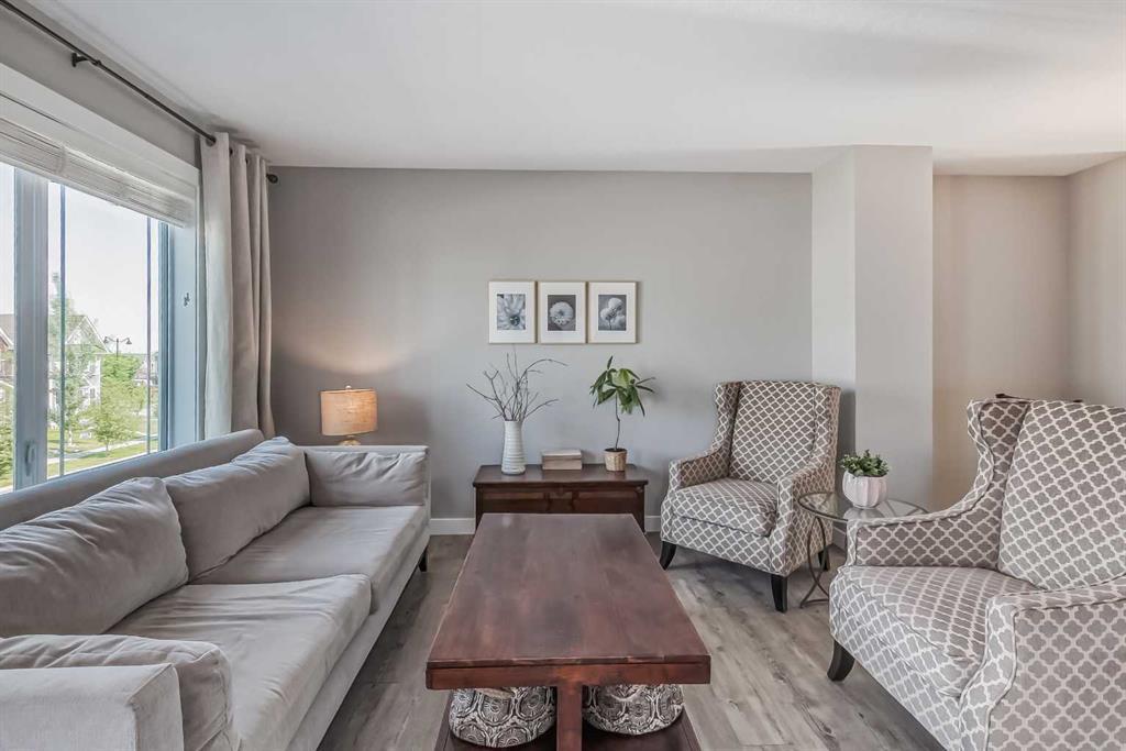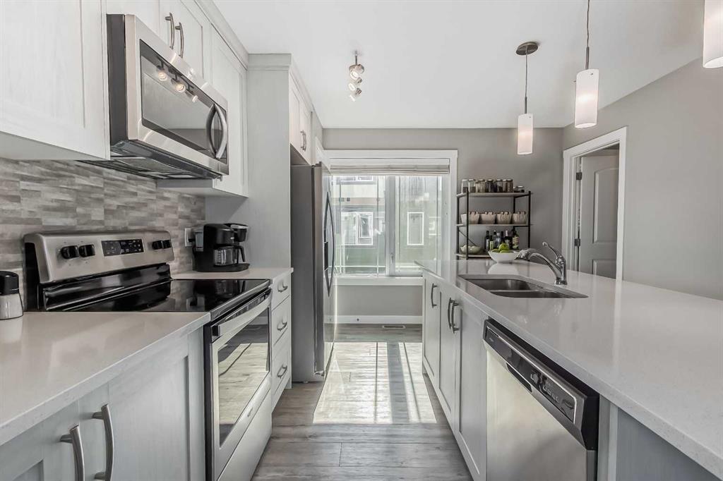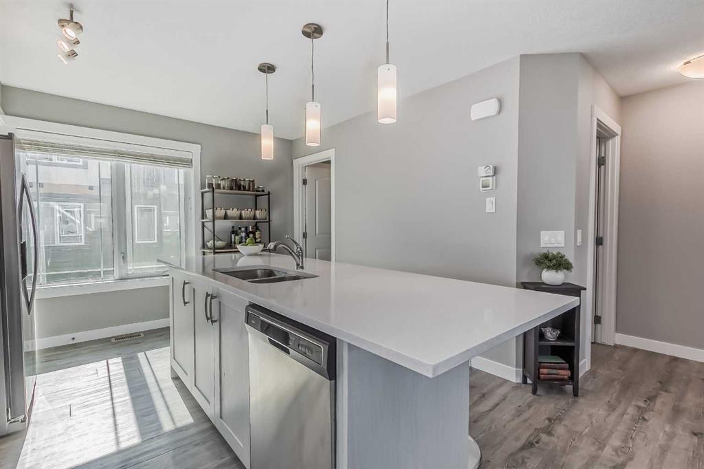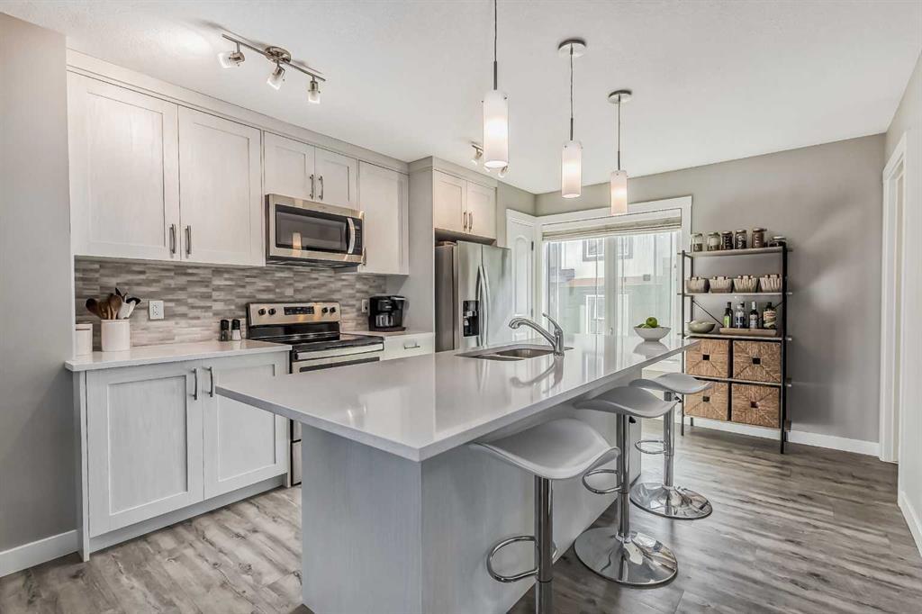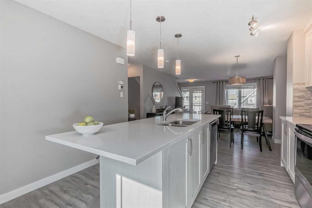 Welcome to this immaculate 3 bedroom townhouse with an attached double garage in a prime Auburn Bay location! As you enter on the ground level you have a great home office space or possibly a TV area or a great space for the kids. Head upstairs to the living room, dining room and kitchen level and you have an amazing kitchen with quartz countertops, stainless steel appliances, vinyl flooring through the whole level, tiled backsplash, stylish lighting, pantry, laundry area with storage beside the kitchen and there is a dining area and living room adjacent to the kitchen and you have access to the upper west facing balcony and the main floor is finished off with a half bathroom for guests. Upstairs you have 3 bedrooms and the primary bedroom has a walk in closet and an ensuite bathroom with a linen closet, 2 additional bedrooms and another full bathroom! Other awesome features of this home are the insulated and drywalled double garage, convenient location just steps from Auburn Station, Blackbird pub, Coop and all the shops and stores. Close proximity as well to the lake, hospital, YMCA, theatre, transit, playgrounds and so much more! This is a well cared for home that is sure to impress! (id:22211)