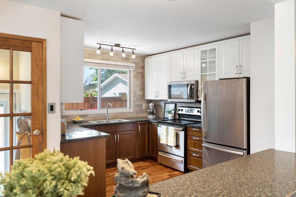 Welcome to this lovingly maintained bi-level home that offers a perfect blend of comfort and functionality. With its well-designed layout and desirable features, this property is sure to exceed your expectations.Boasting a total of 5 bedrooms, including 3 bedrooms on the main level and 2 additional bedrooms in the fully finished basement, there is plenty of space for a growing family or accommodating guests. The basement provides flexibility and privacy for various living arrangements.With 2.5 bathrooms, including the completely renovated and upgraded 4-piece main level bathroom and the ensuite bath, you'll enjoy modern finishes and a spa-like atmosphere. The renovations were completed just last year, ensuring a fresh and contemporary aesthetic.The oversized double garage is a dream come true for any handyman or car enthusiast. Equipped with a convenient workbench built-in, it provides ample space for projects and storage.Step outside and experience the beauty of low-maintenance landscaping surrounded by mature trees, offering both shade and privacy. You'll appreciate the tranquility and serenity of the surroundings. Enjoy the picturesque views of COP and the nearby Bowmont Park, which has incredible pathways for outdoor enthusiasts. Don't forget the stunning Bow River running through the park, offering a peaceful escape from the hustle and bustle of daily life.Additional features include a separate private side entrance, perfect for a home office or large family.The keyless entry adds convenience and security to your everyday life.To top it off, this home comes with newer stainless steel appliances, providing a sleek and modern touch to the well-appointed kitchen.Don't miss the opportunity to own this well-kept bi-level home in a highly desirable location. Schedule your showing today and prepare to be impressed! (id:22211)