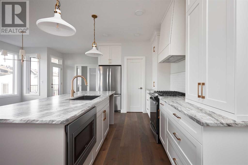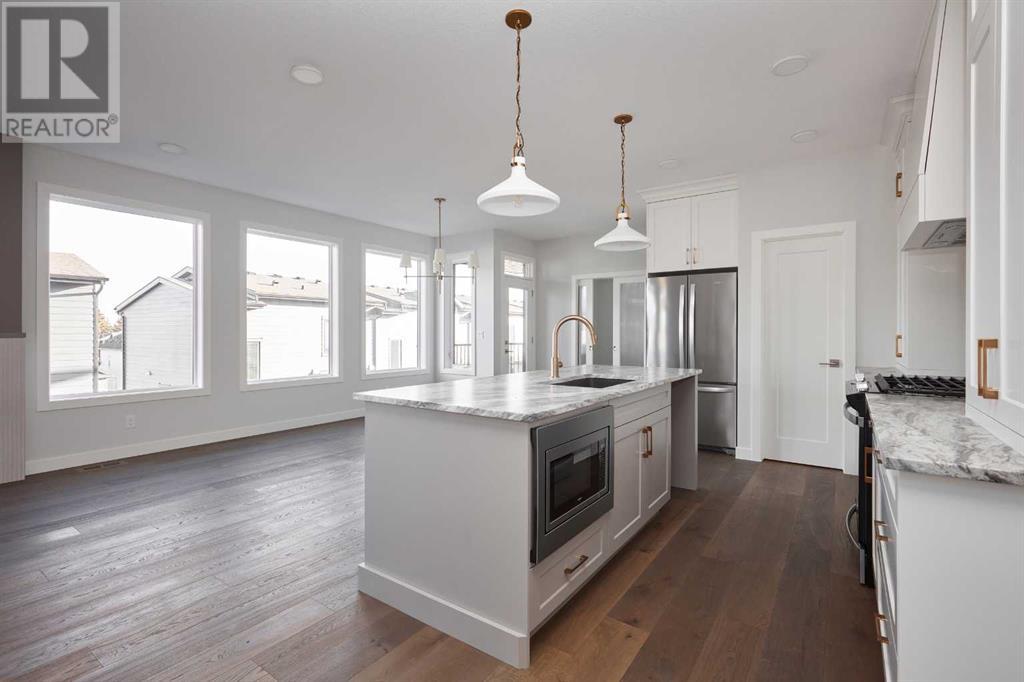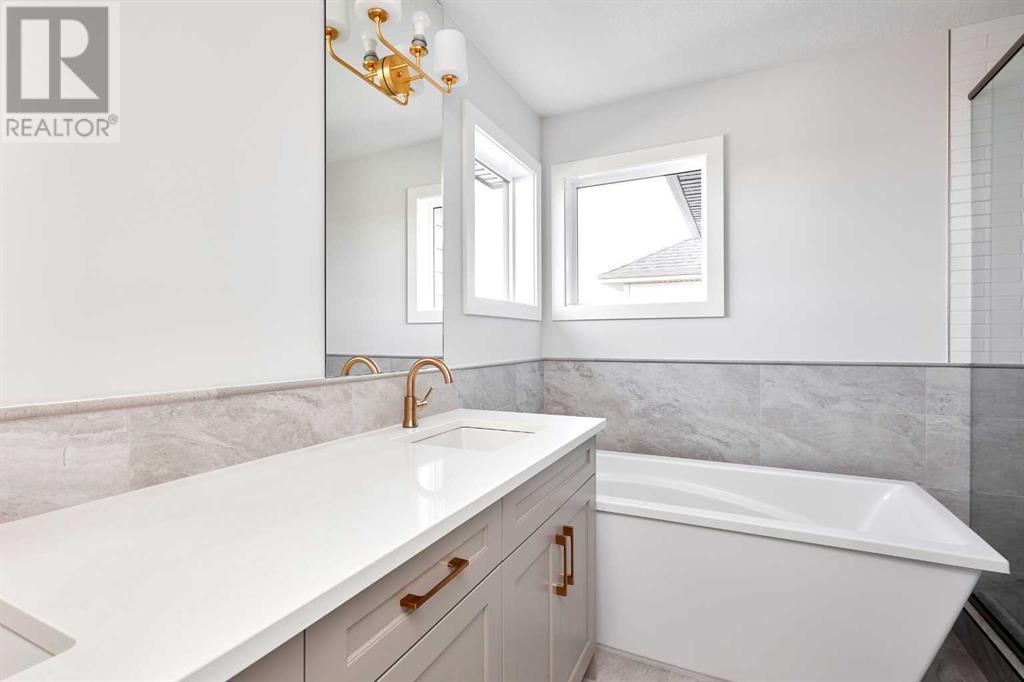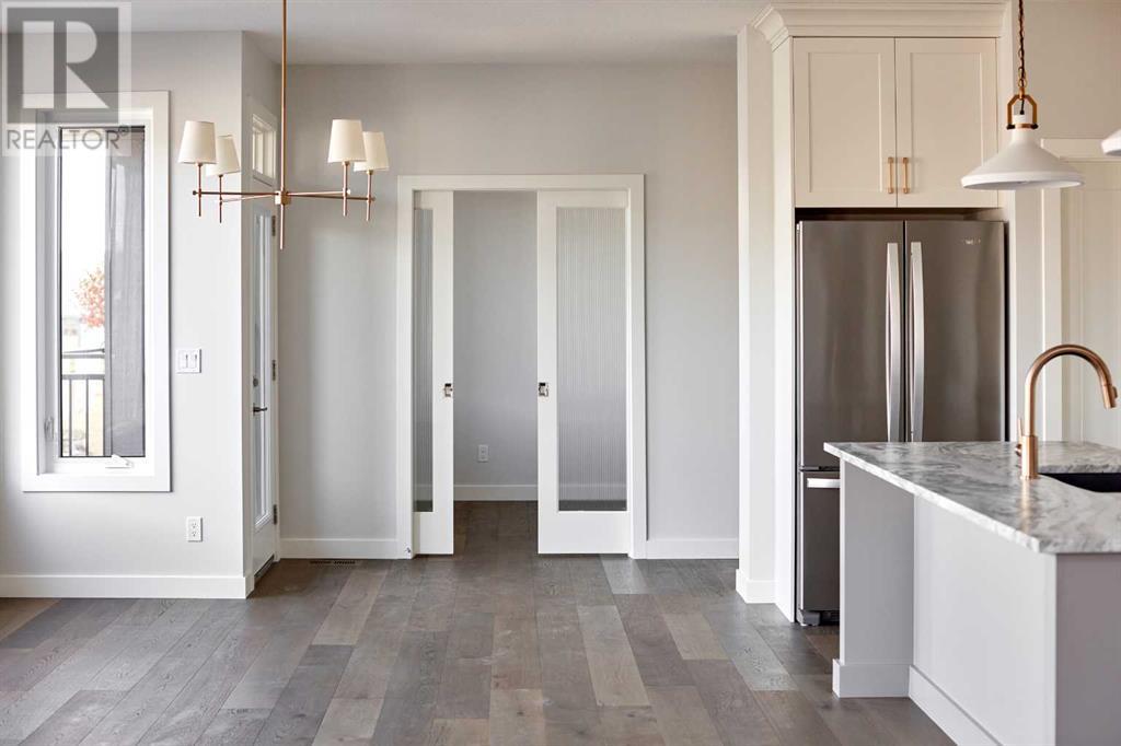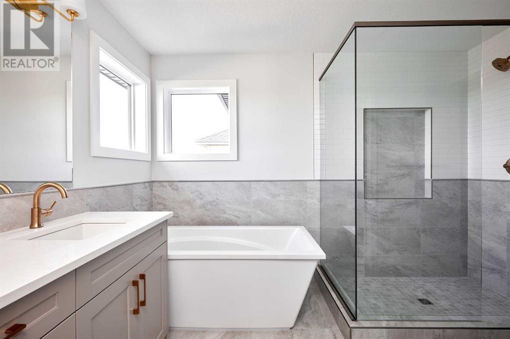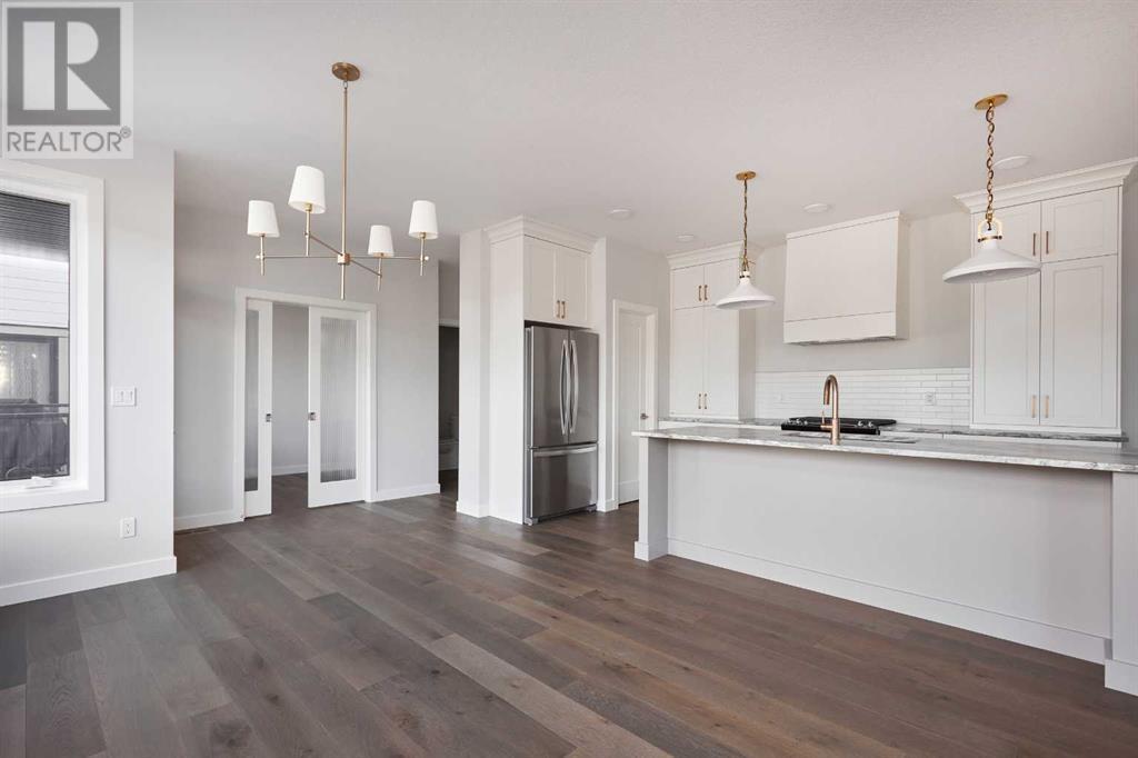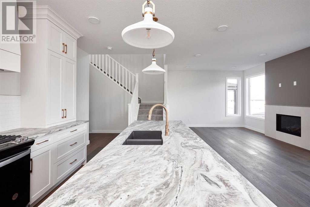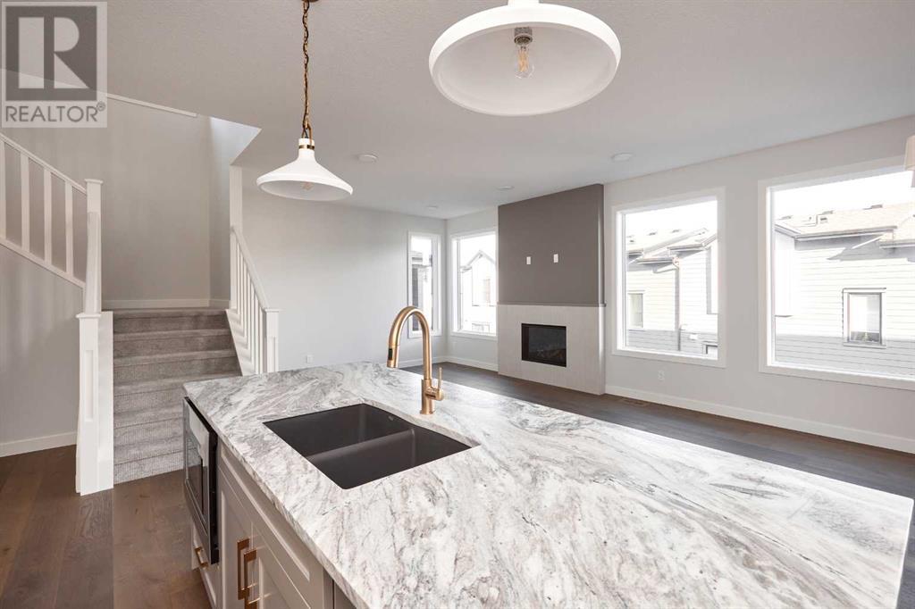 Welcome to 710 Shawnee Terrace in the award winning community of Shawnee Park. From the moment you arrive you will appreciate the attention detail. Experience modern elegance and supreme comfort in this new, quick-possession single-family home. As you approach, the triple-car garage and inviting exposed aggregate driveway set the stage for the splendor within. Privately located on a quiet cul-de-sac and across from green space, this majestic home is 2,353 sq ft , accompanied by 672 sq ft in the walk-out basement. Step inside the warm & inviting front entrance where main floor features impress with 9 ft ceilings, engineered hardwood flooring, tiled fireplace in the family room, separate office/flex room, powder room and a custom gourmet kitchen featuring floor-to-ceiling two-tone cabinetry with soft-close doors, stainless-steel appliances, including a gas range, granite sink and quartz countertops. The great room, filled with natural light, invites relaxation and entertainment, blending indoors with outdoors through expansive windows. The luxury unfolds on the second floor with three generous bedrooms, a 3pc bathroom, and a large bonus room adorned with a custom beamed ceiling. A spacious upper laundry room adds practicality. Retreat to the primary suite, an oasis of tranquility. An oversized walk-in closet fulfills storage dreams, while the 5pc en suite is a sanctuary of relaxation. Dual sinks, a large tiled shower, and a freestanding tub create an ambiance of luxury. The 46’ wide walk-out lot boasts professionally landscaped front and backyard areas for beauty and ease. Rest assured, your investment is safeguarded by a new home warranty from Cardel Homes and Alberta New Home Warranty. Shawnee Park, an award-winning neighborhood, offers walking access to Fish Creek Park and abundant green spaces. Seamless public transit options, including the nearby LRT, enhance convenience. Exceptional schools, established amenities, and the lifestyle you deserve. Your future begi ns in Shawnee Park – schedule your exclusive home tour today. (id:22211)